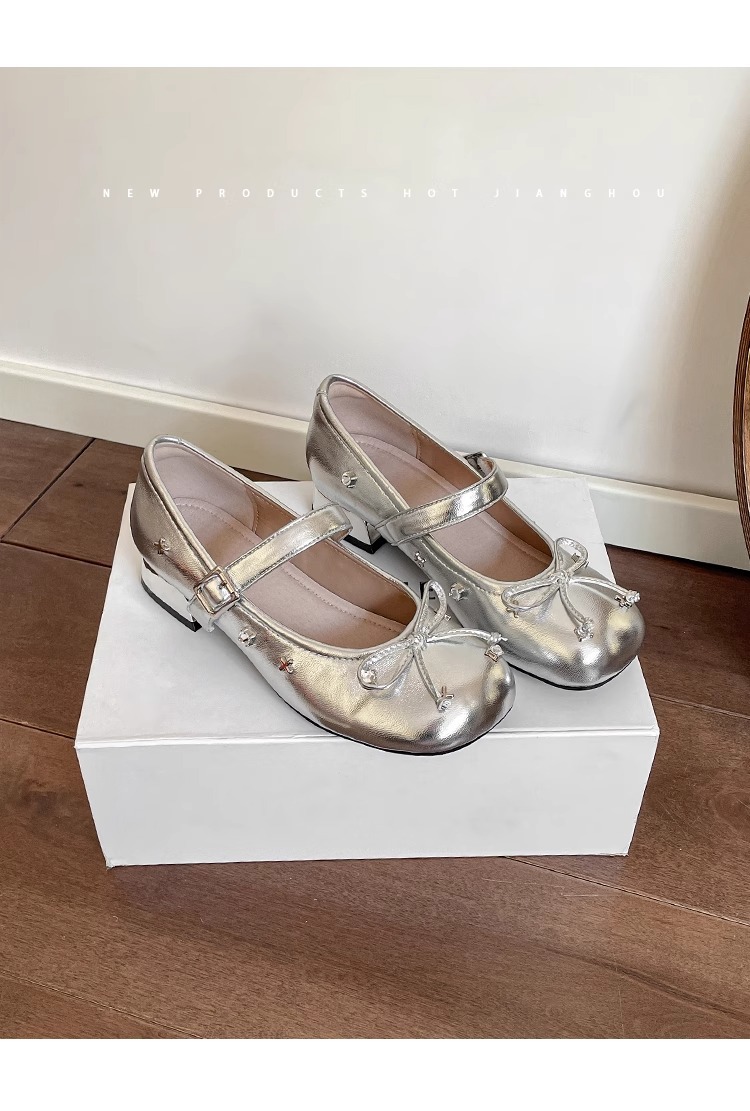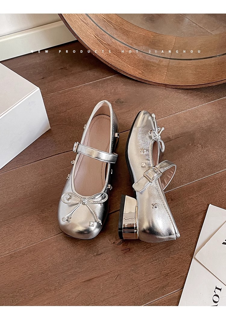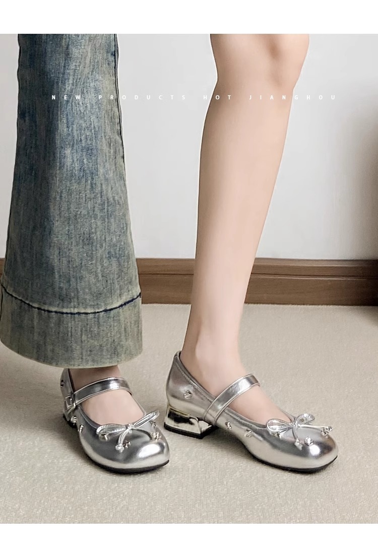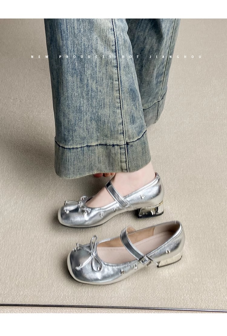 프렌치 메리제인 하이힐, 실버 부잣집 딸, 부드러운 두꺼운 굽의 싱글 슈즈, 2025년 봄 편안한 신부 들러리 슈즈