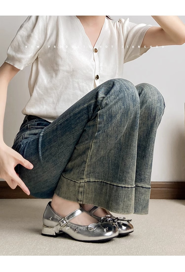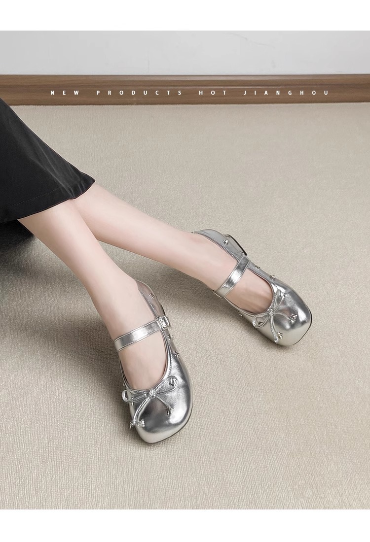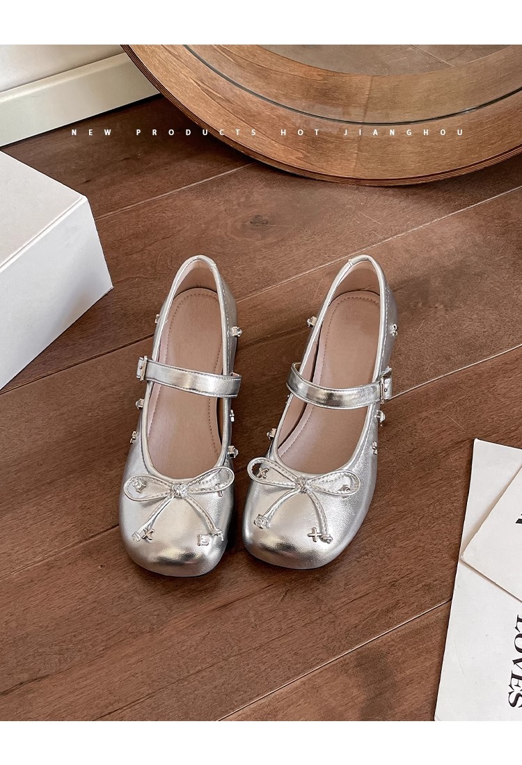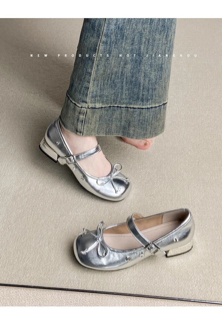 프렌치 메리제인 하이힐, 실버 부잣집 딸, 부드러운 두꺼운 굽의 싱글 슈즈, 2025년 봄 편안한 신부 들러리 슈즈