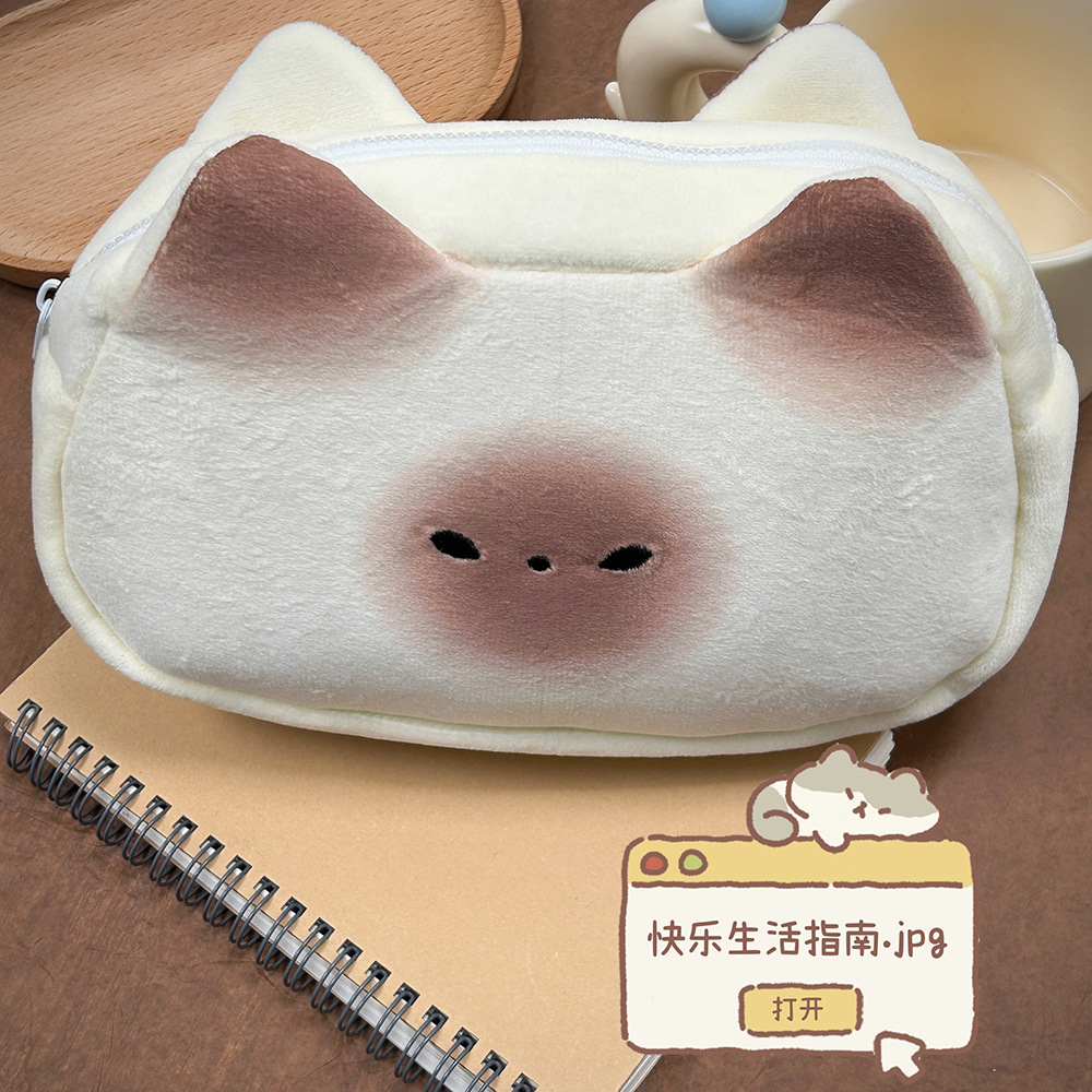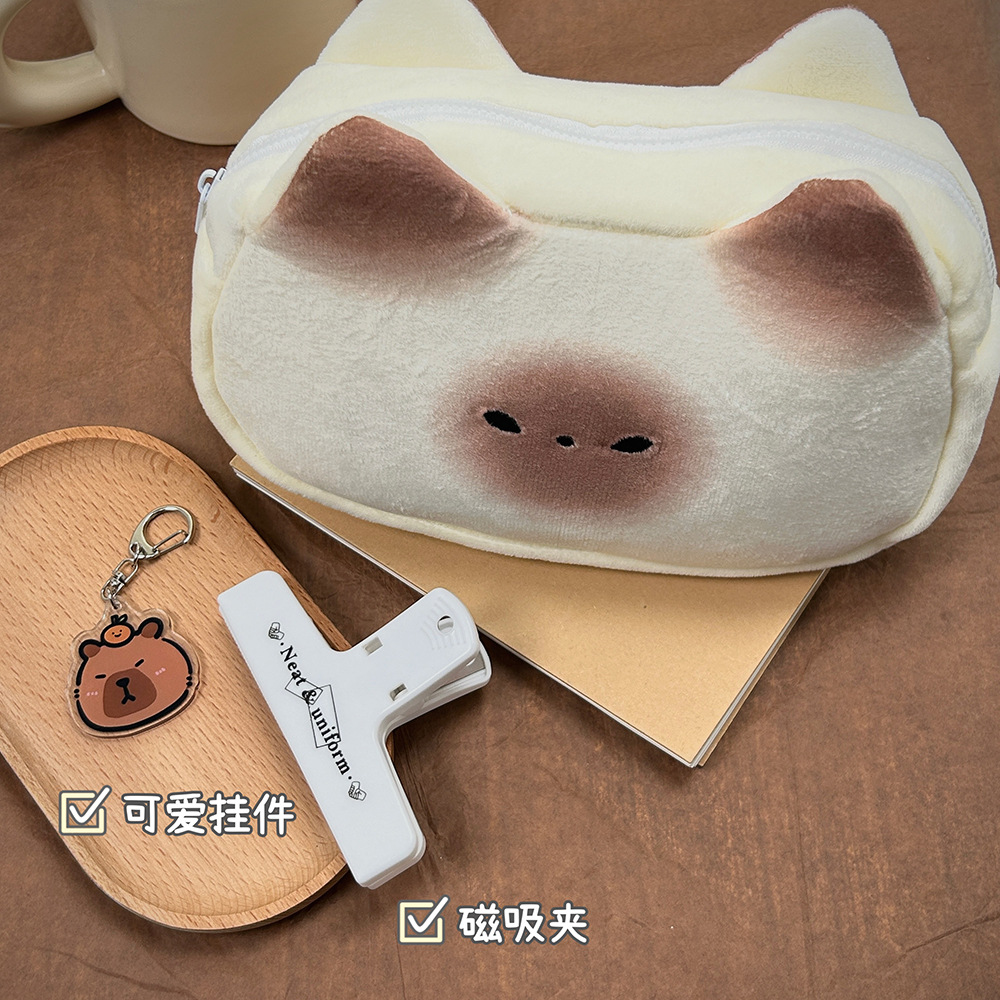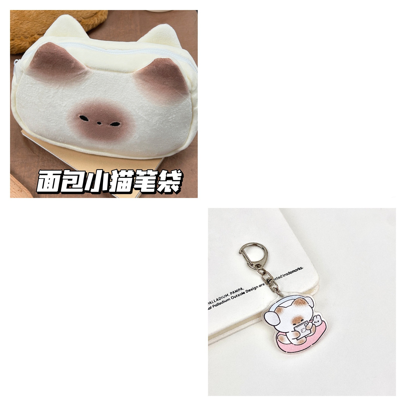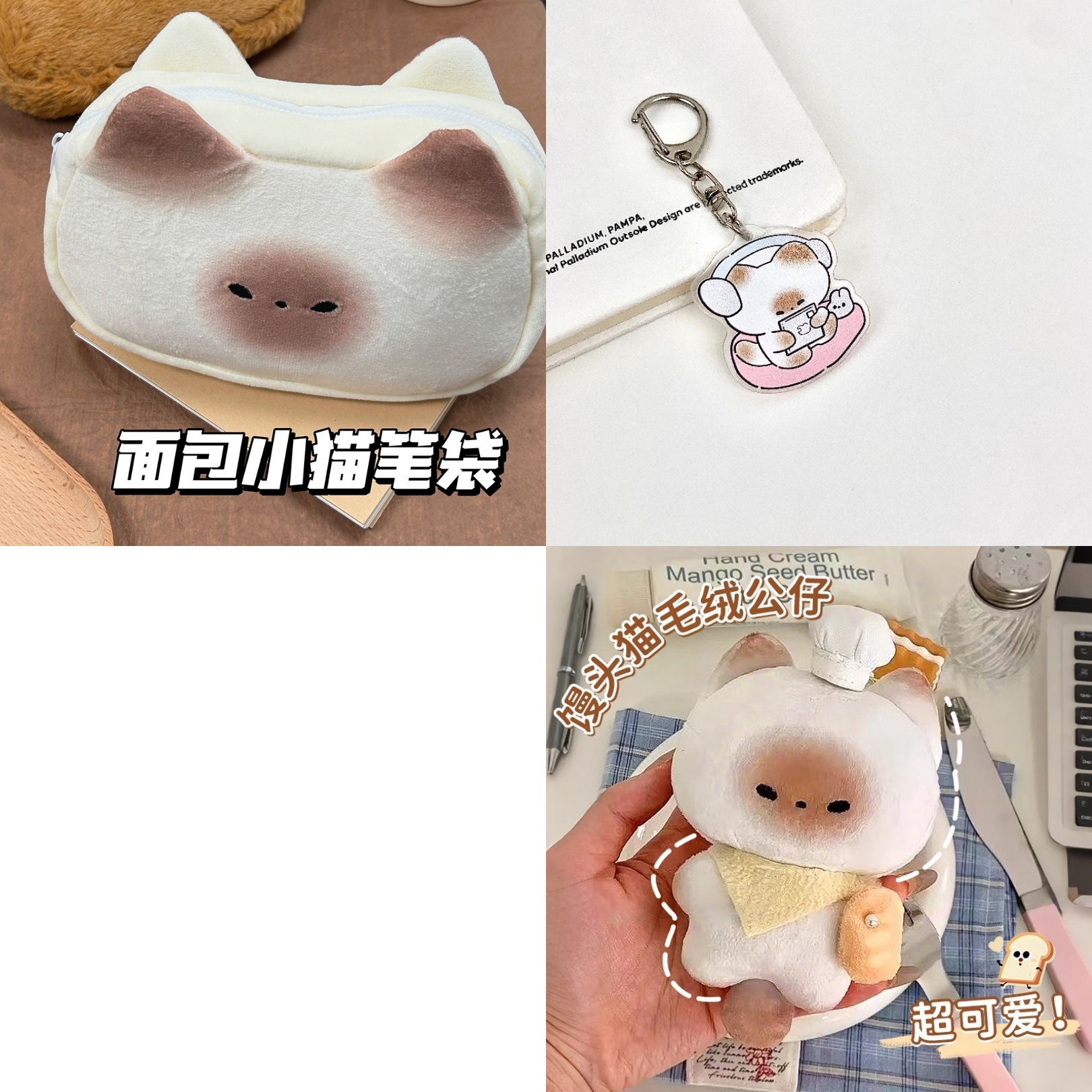 • 프렌치 토스트 펜 가방 + 펜던트 + 샴 고양이 인형 펜던트