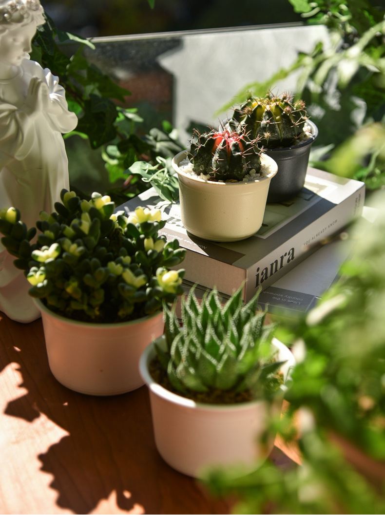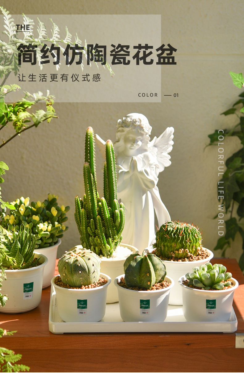 새로운 공장 직접 공급 고급 친환경 수지 화분 두꺼운 모조 세라믹 데스크탑 녹색 식물 플라스틱 발코니 작은 화분