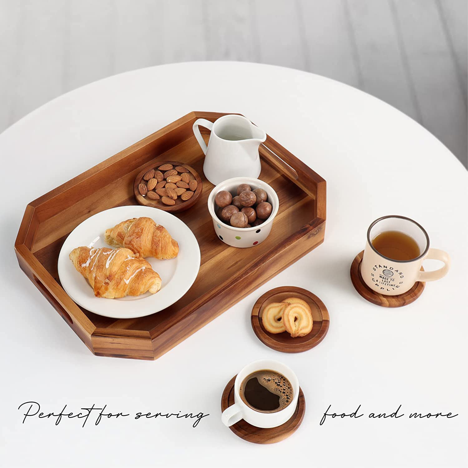 나무 트레이 손잡이, 단단한 나무 코스터 트레이, 서빙 접시, 경사진 가장자리 차 트레이, 크리에이티브 애프터눈 티 트레이가 포함된 아침 식사
