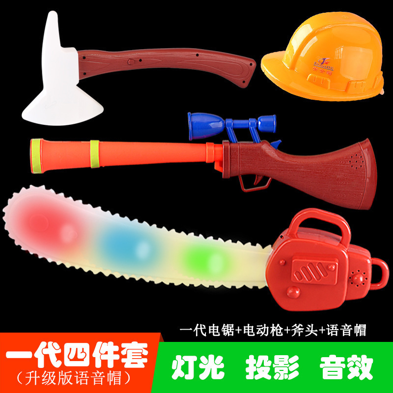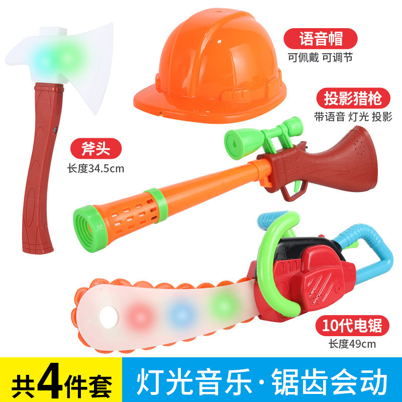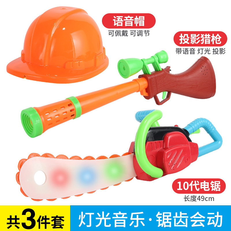 대머리 강력한 전기 톱 장난감 나무 절단 도구 톱 벌목 장비 전기 프로젝션 총 세트 3 세 어린이 장난감