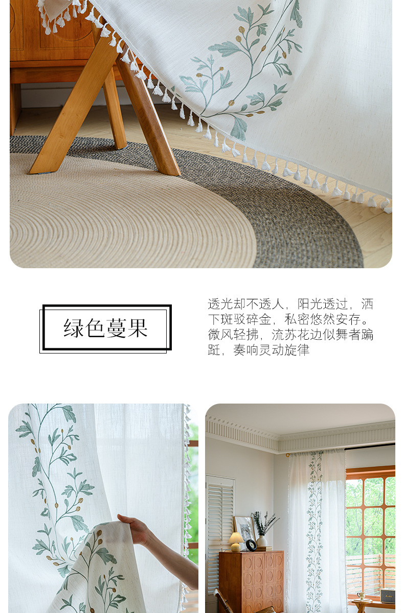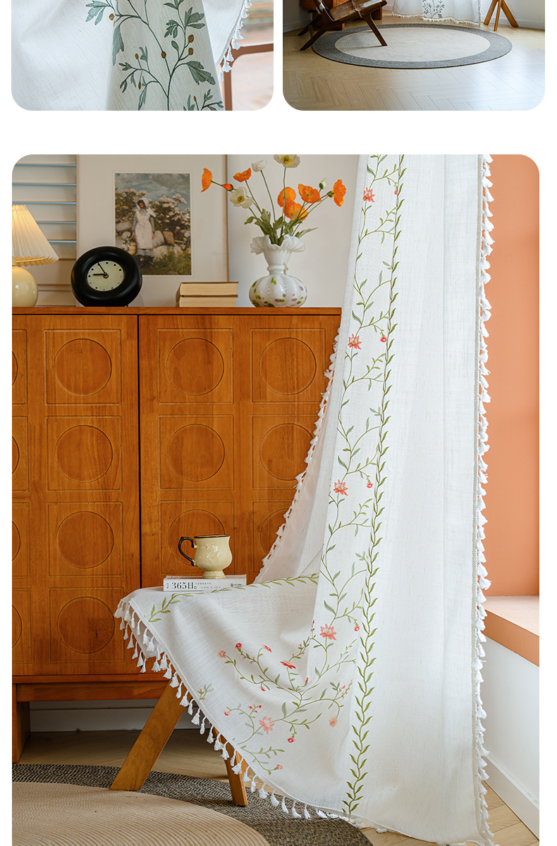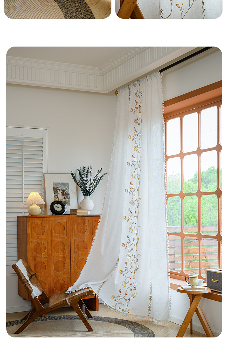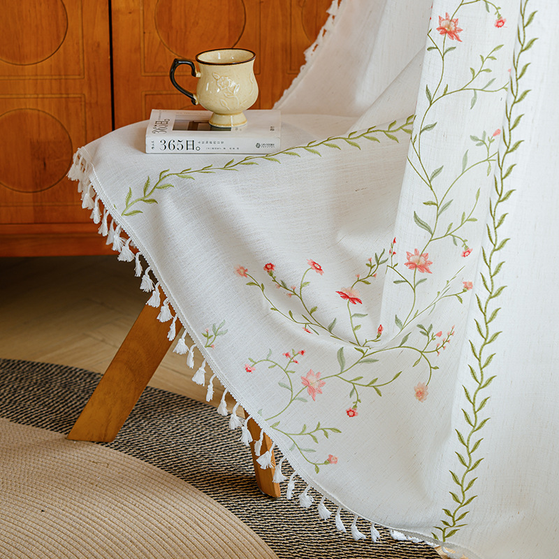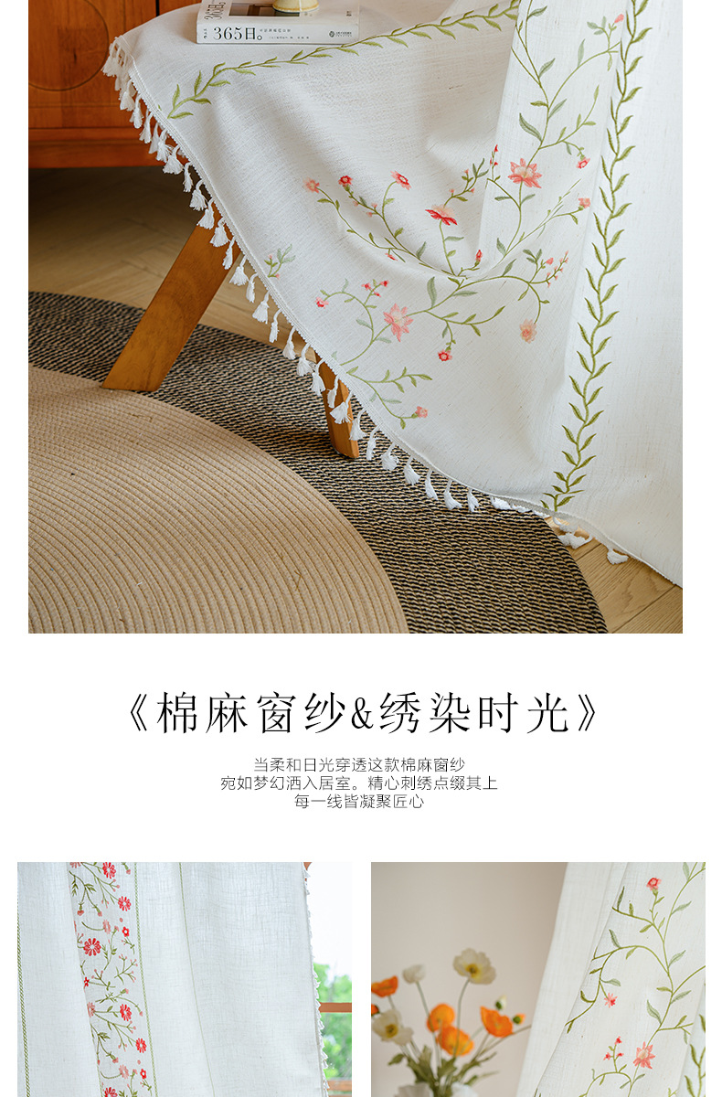 작은 신선한 면 및 린넨 커튼, 자수, 고급 짧은 커튼, 주방, 침실, 거실 칸막이, 짧은 커튼, 발코니 창 커튼