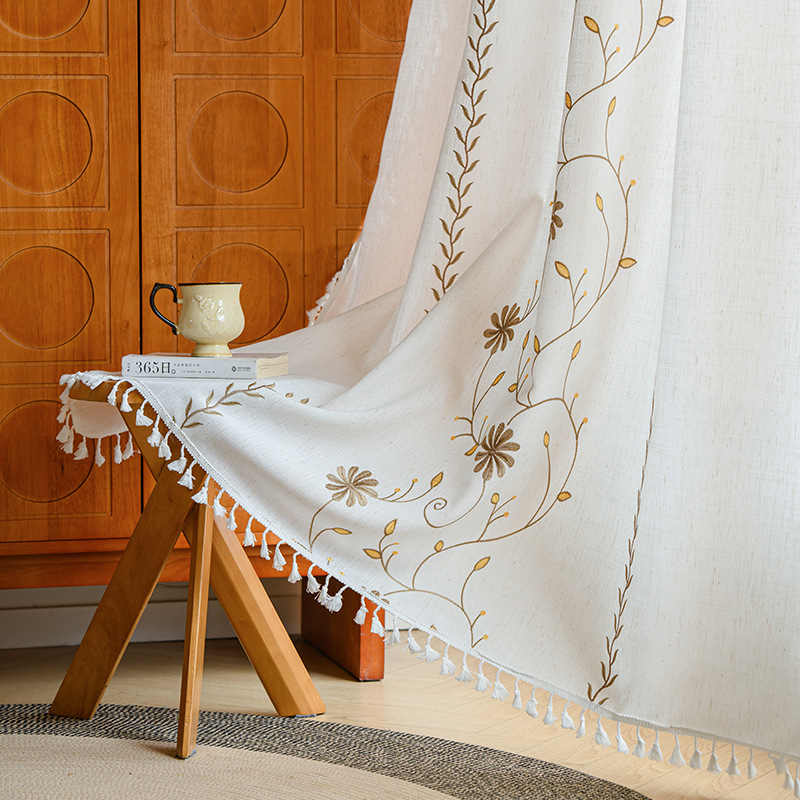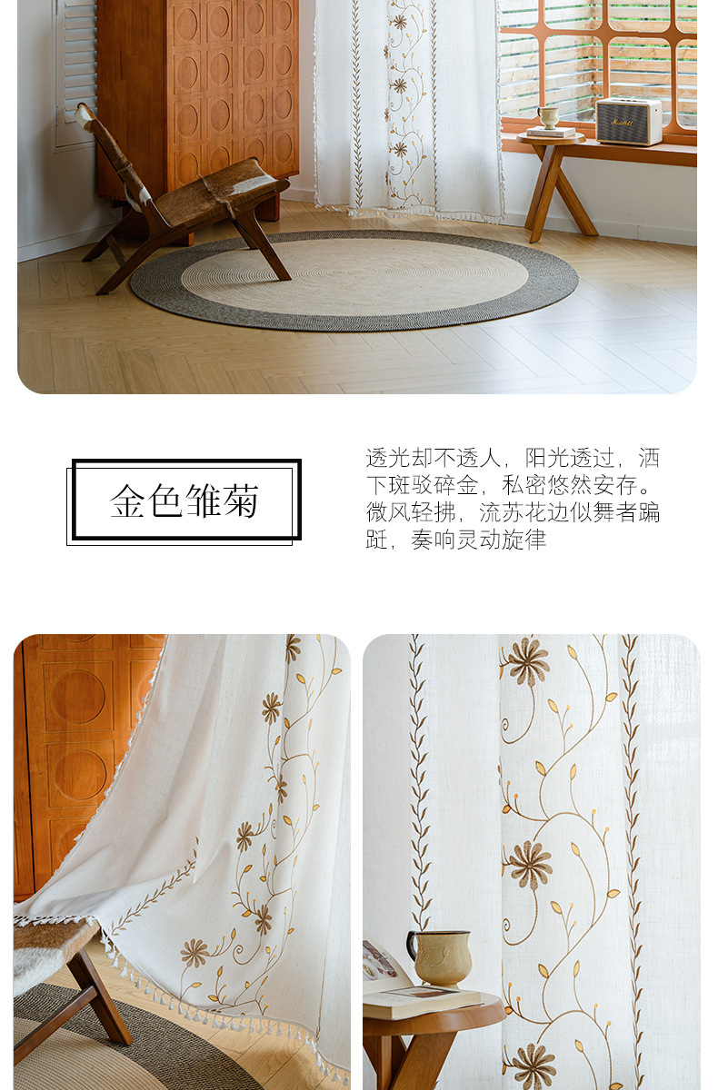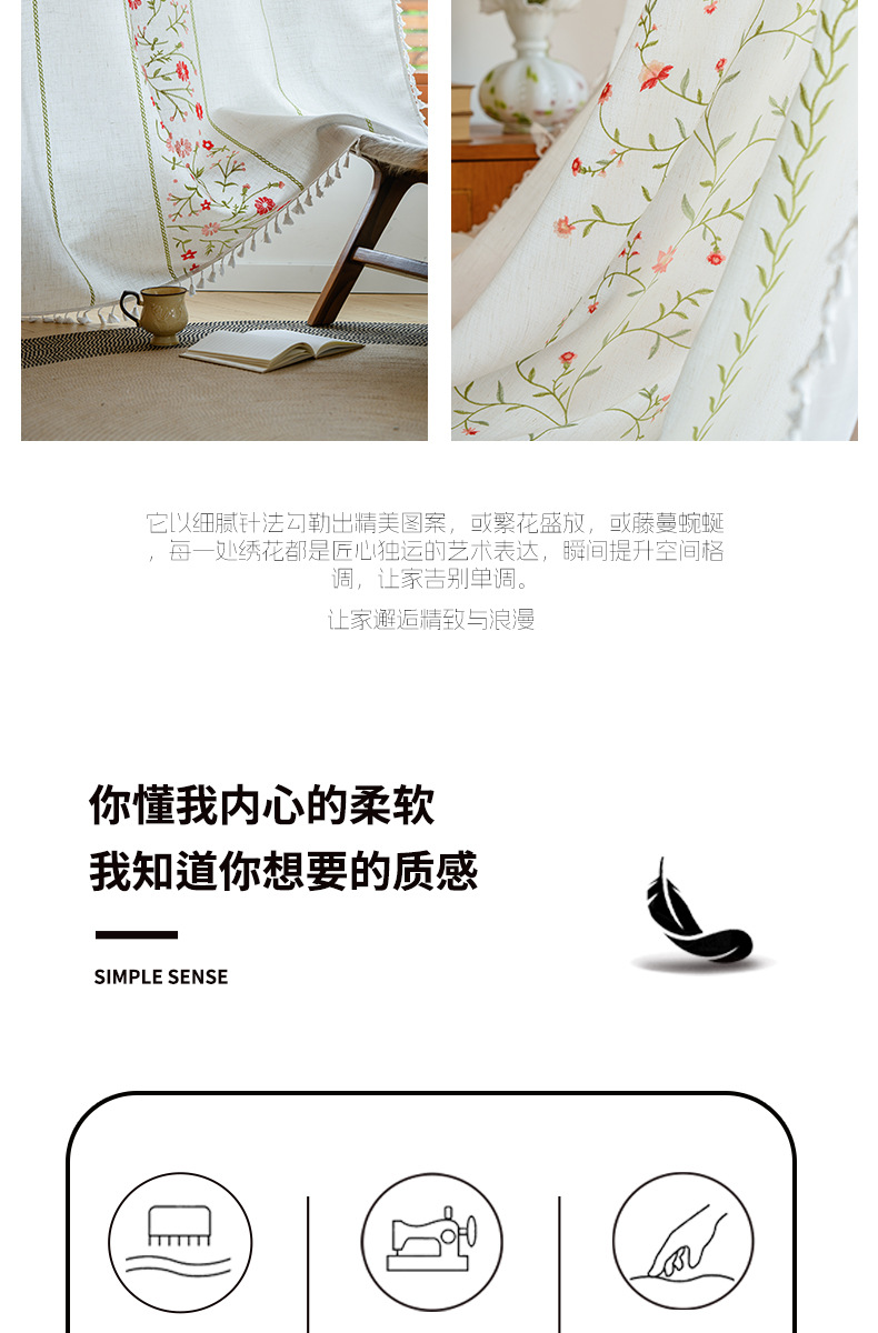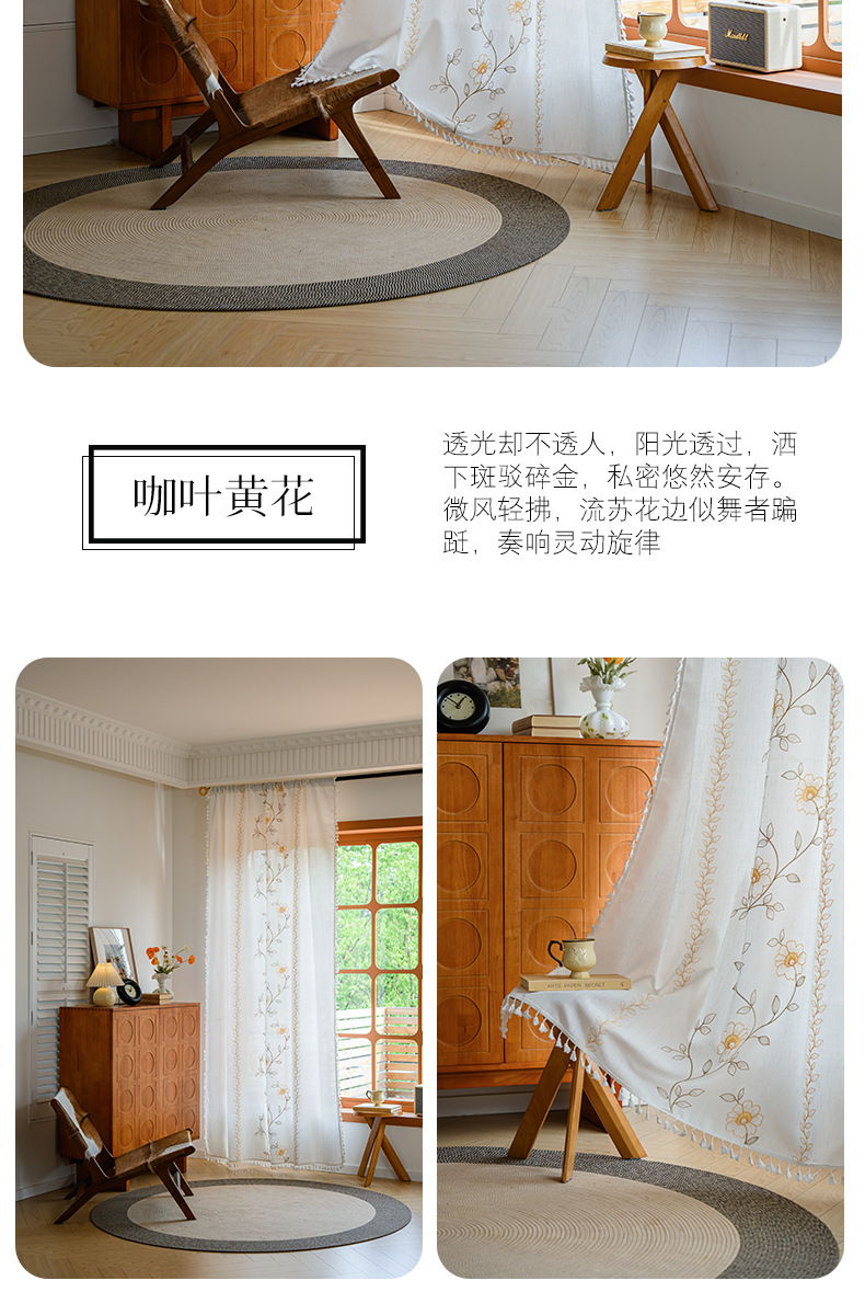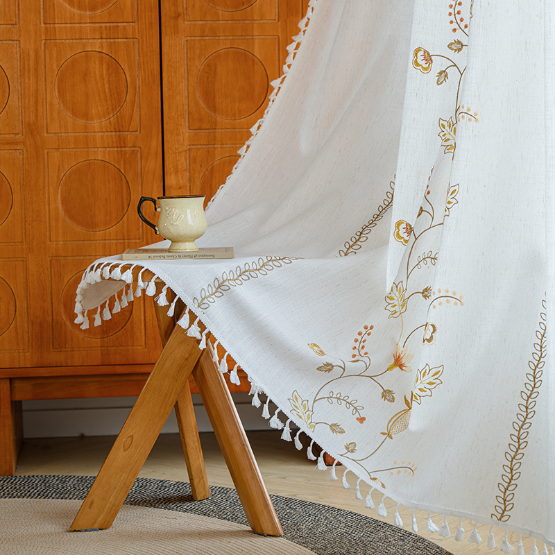 작은 신선한 면 및 린넨 커튼, 자수, 고급 짧은 커튼, 주방, 침실, 거실 칸막이, 짧은 커튼, 발코니 창 커튼