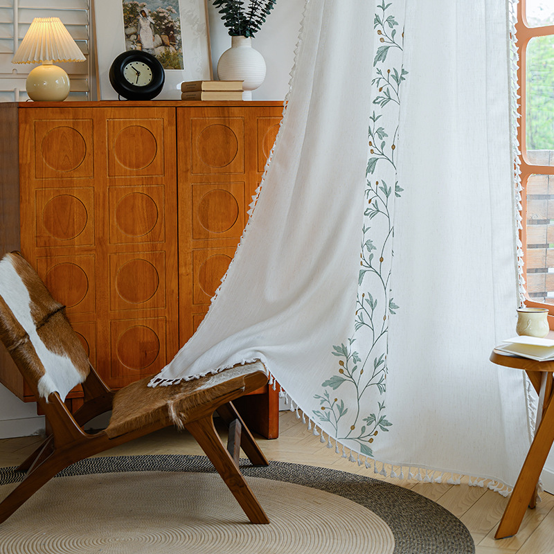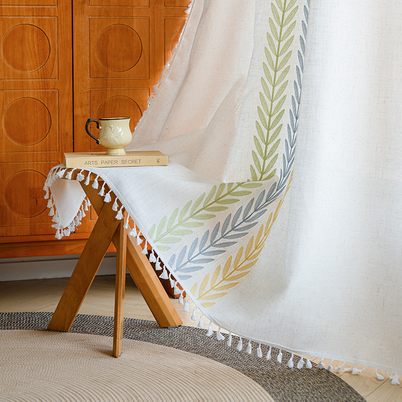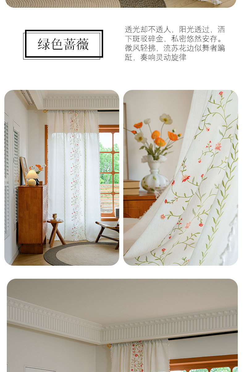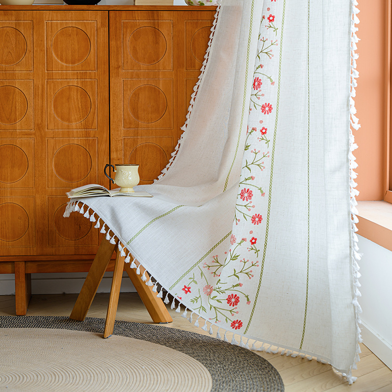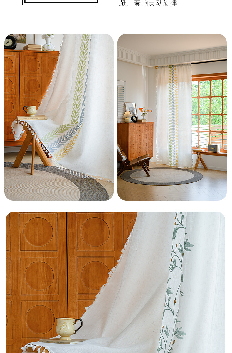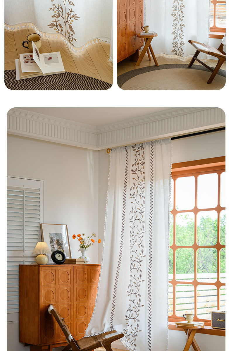작은 신선한 면 및 린넨 커튼, 자수, 고급 짧은 커튼, 주방, 침실, 거실 칸막이, 짧은 커튼, 발코니 창 커튼