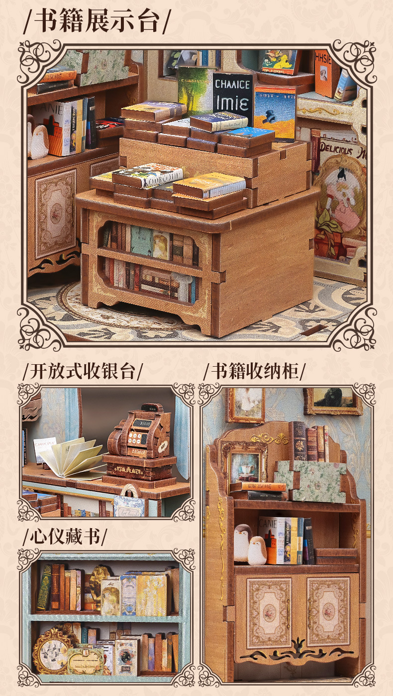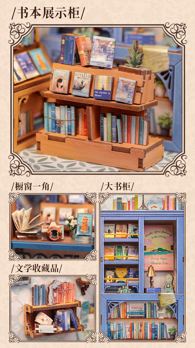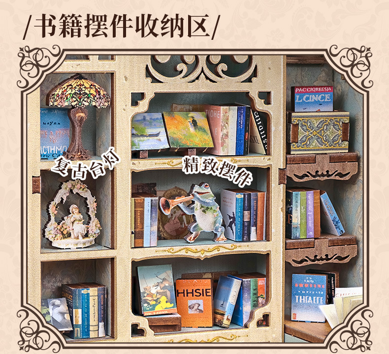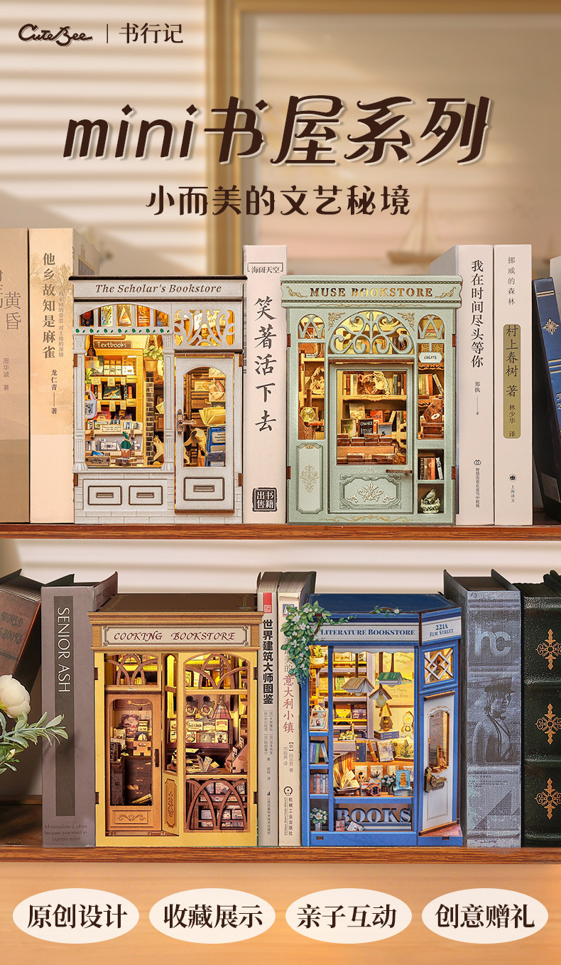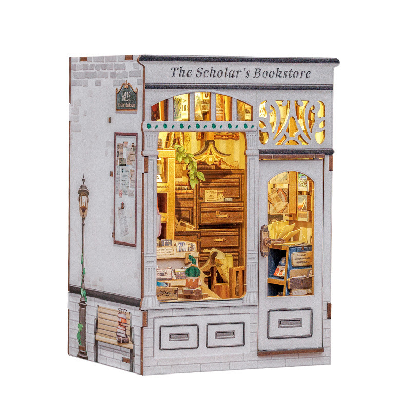큐트비 북엔드 DIY 미니 하우스 미니어처 수제 서점 조립 미니어처 모델 블록 퍼즐 선물 도매