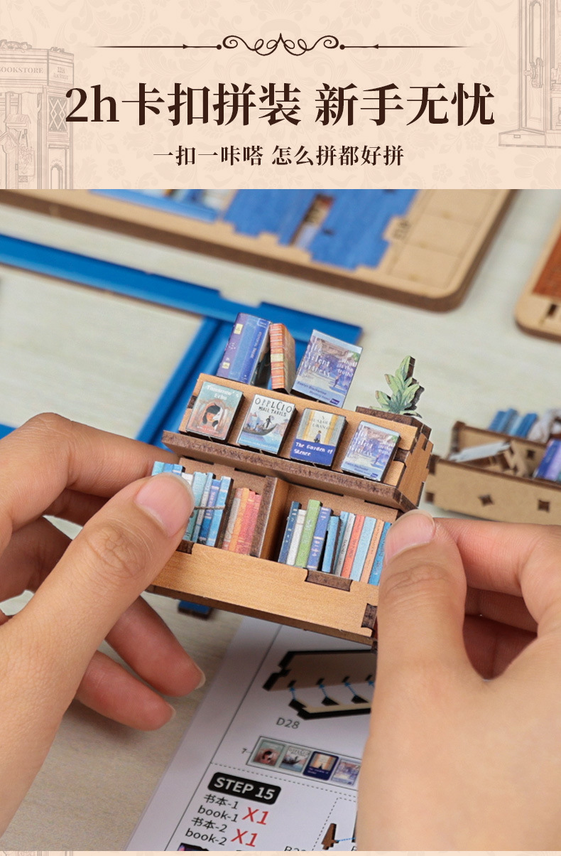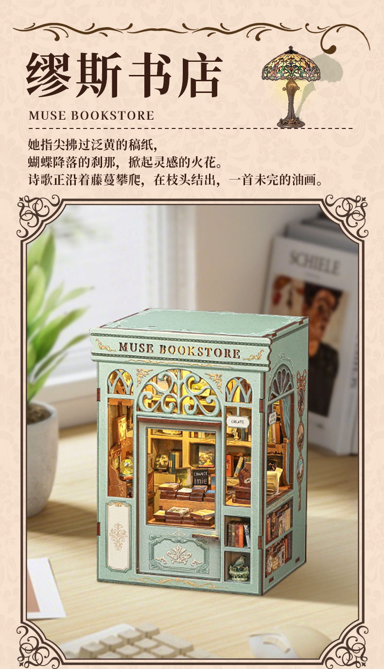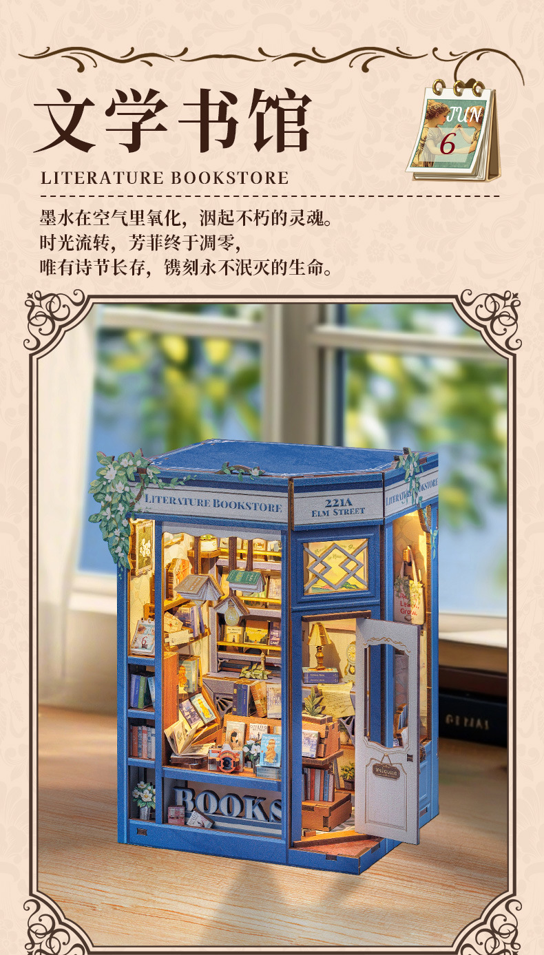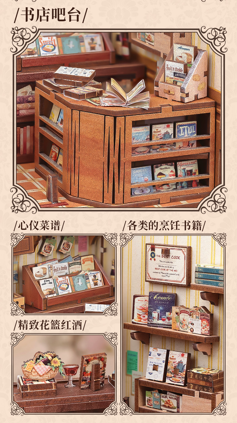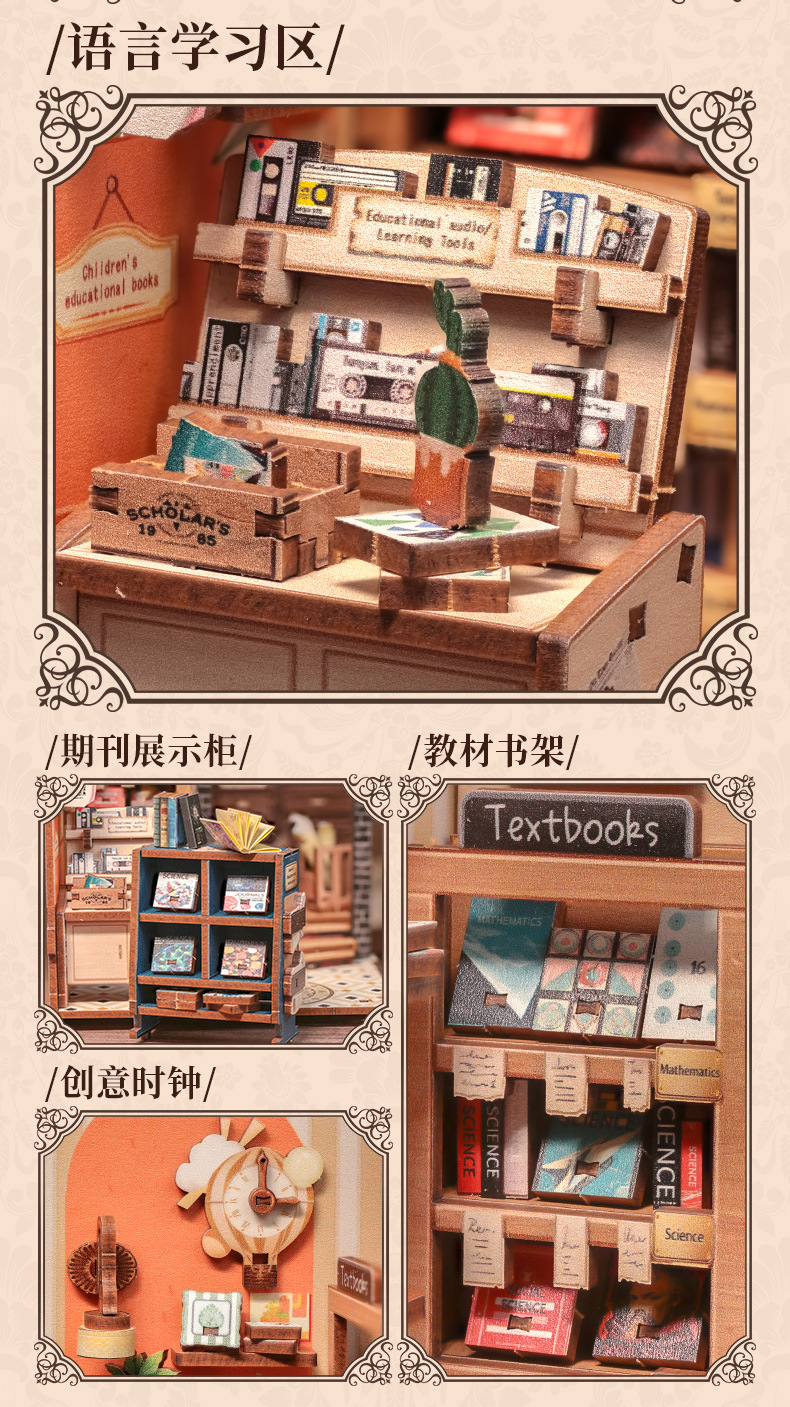 큐트비 북엔드 DIY 미니 하우스 미니어처 수제 서점 조립 미니어처 모델 블록 퍼즐 선물 도매
