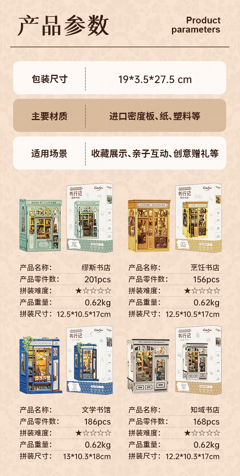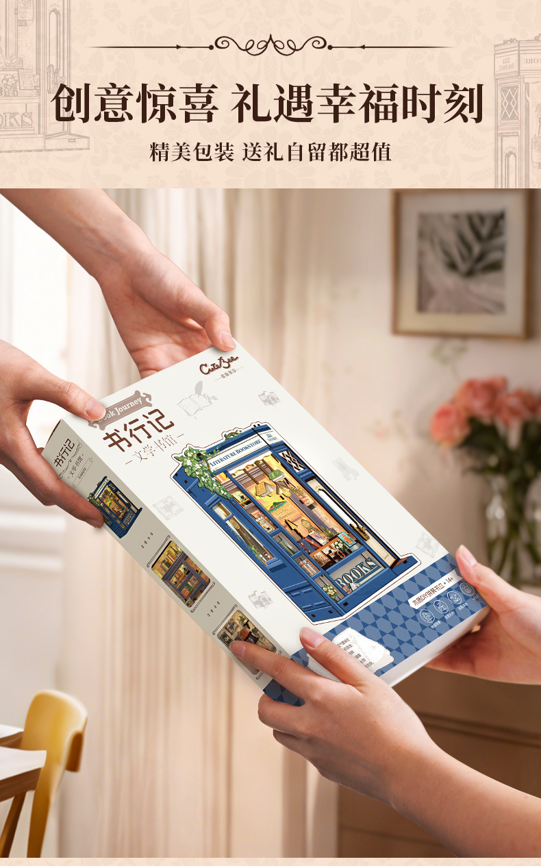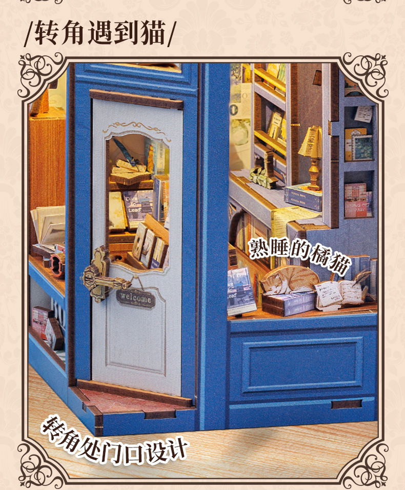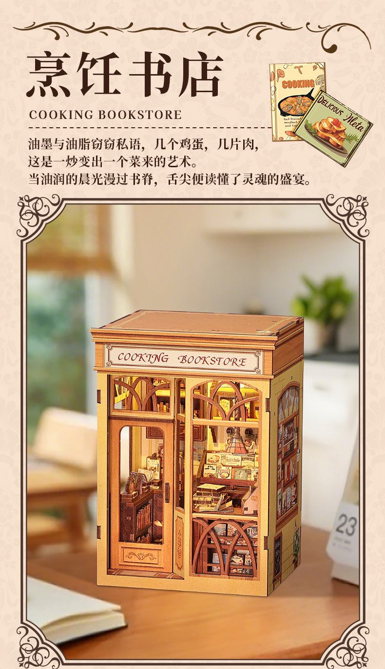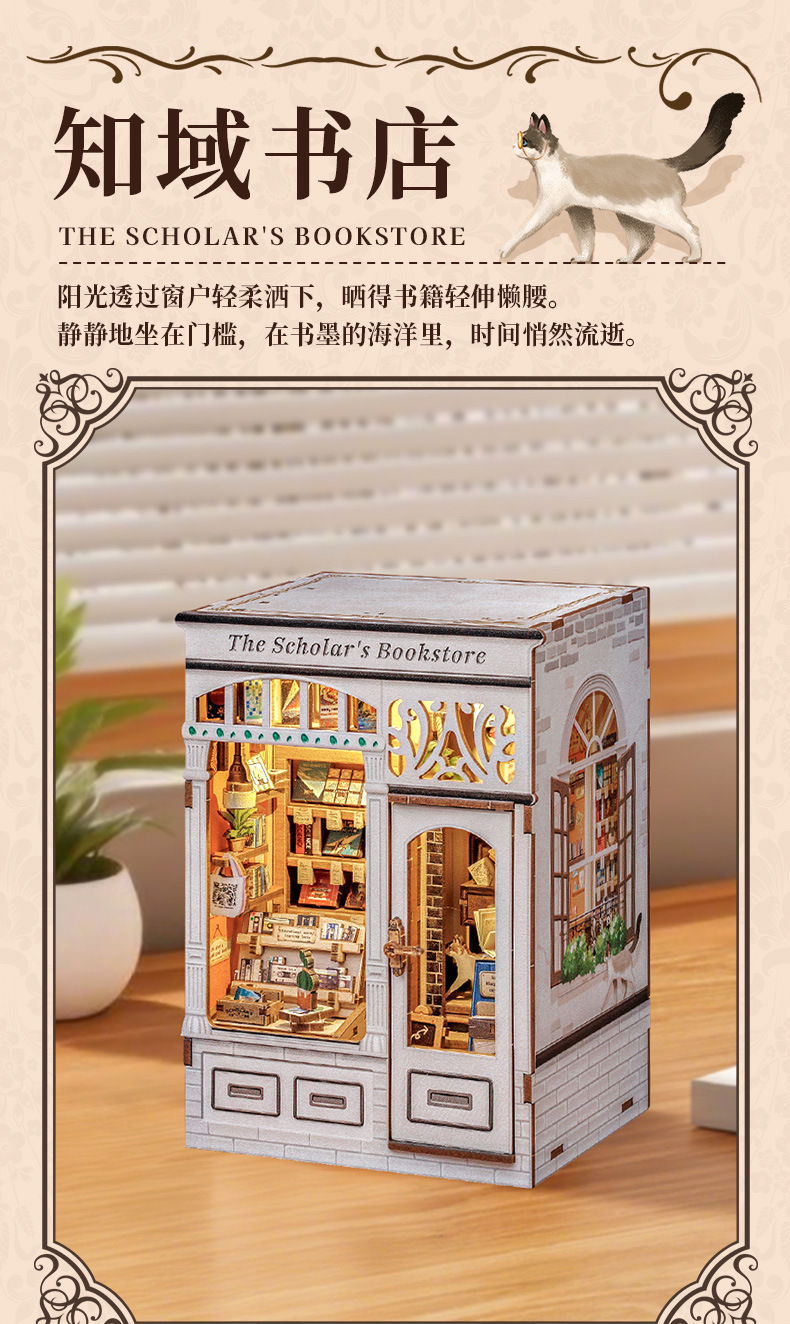 큐트비 북엔드 DIY 미니 하우스 미니어처 수제 서점 조립 미니어처 모델 블록 퍼즐 선물 도매