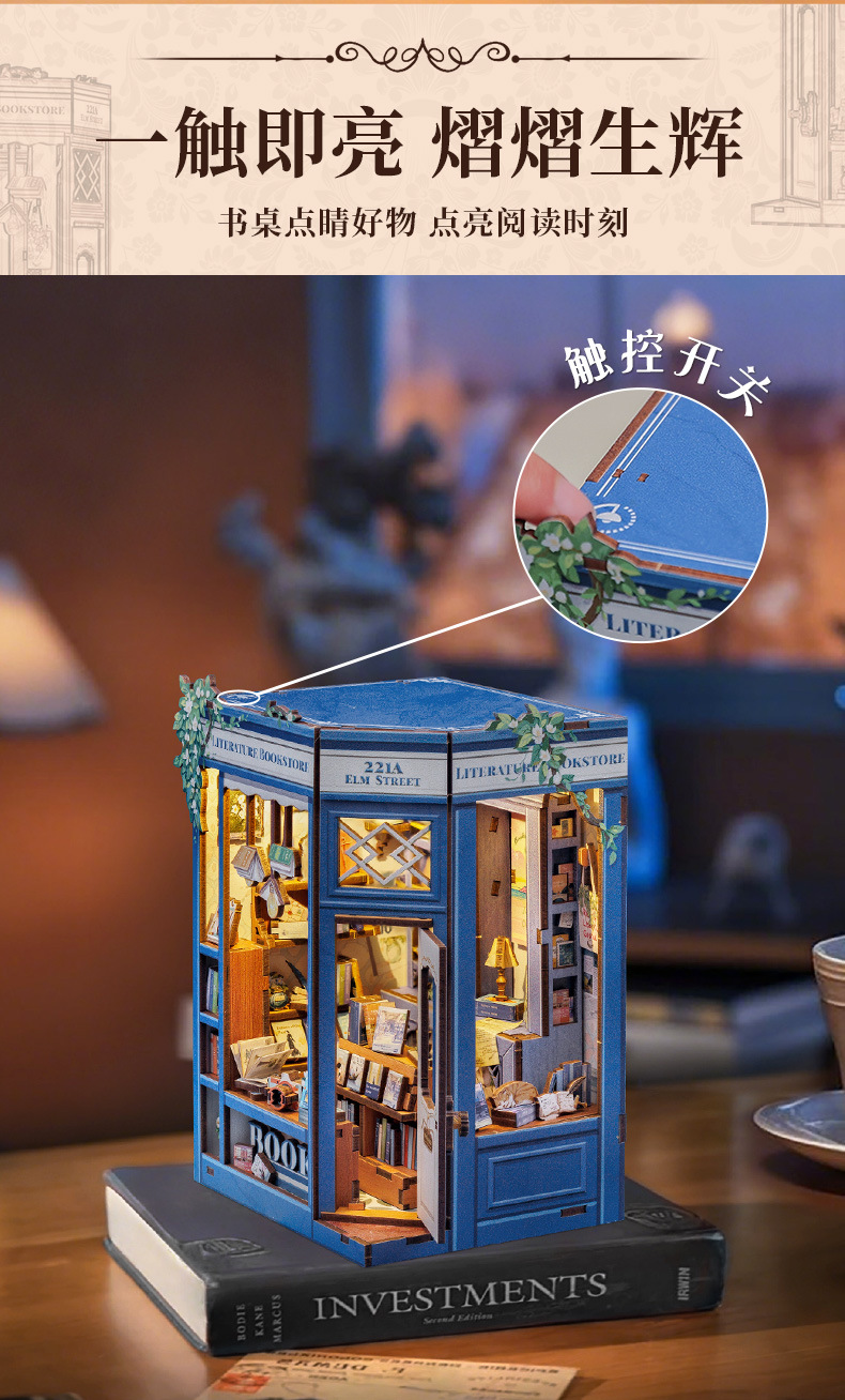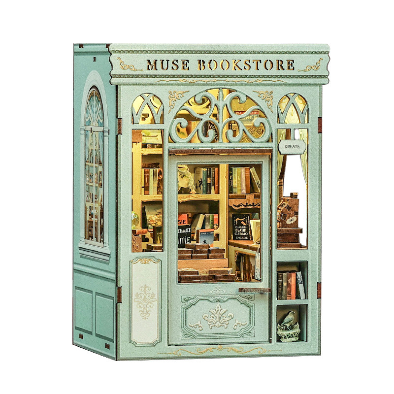 큐트비 북엔드 DIY 미니 하우스 미니어처 수제 서점 조립 미니어처 모델 블록 퍼즐 선물 도매스토어 가기