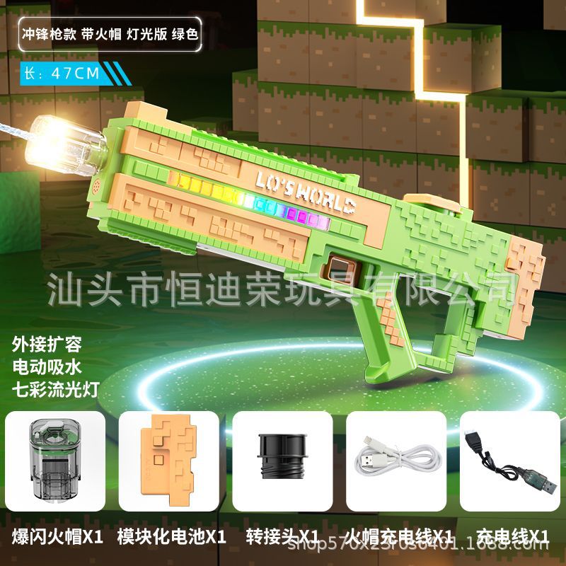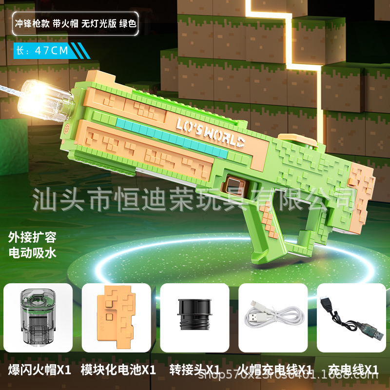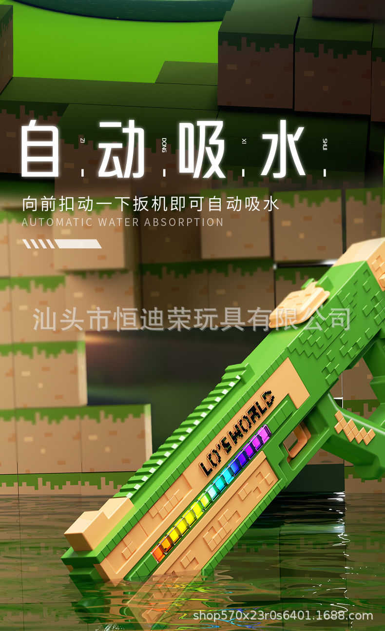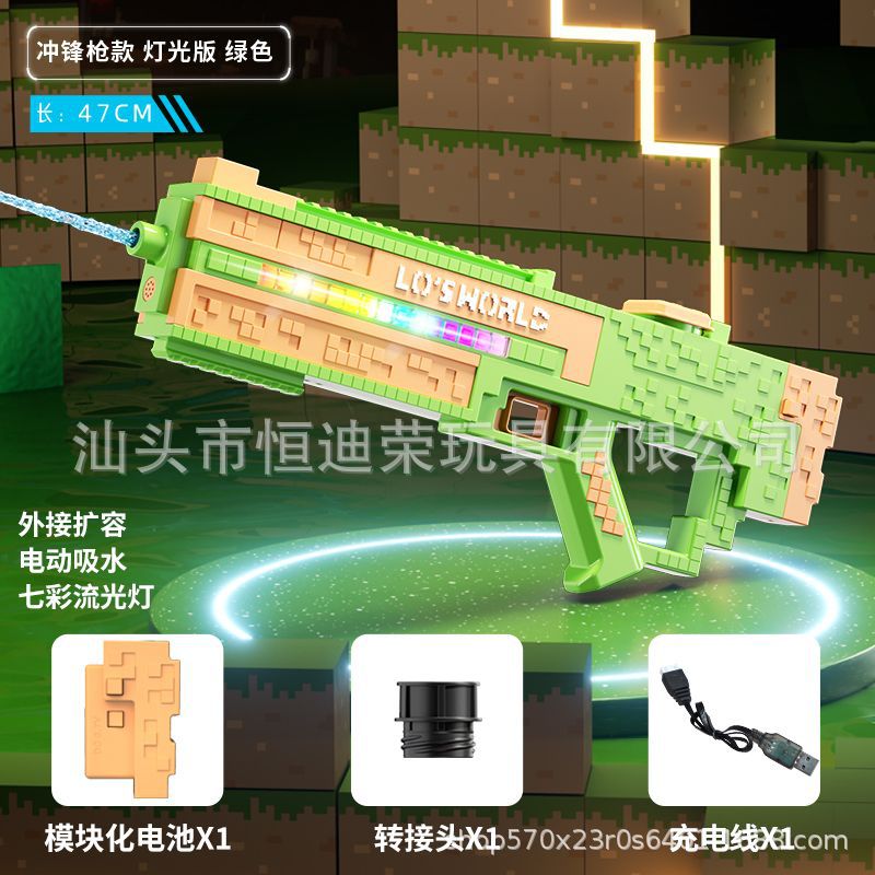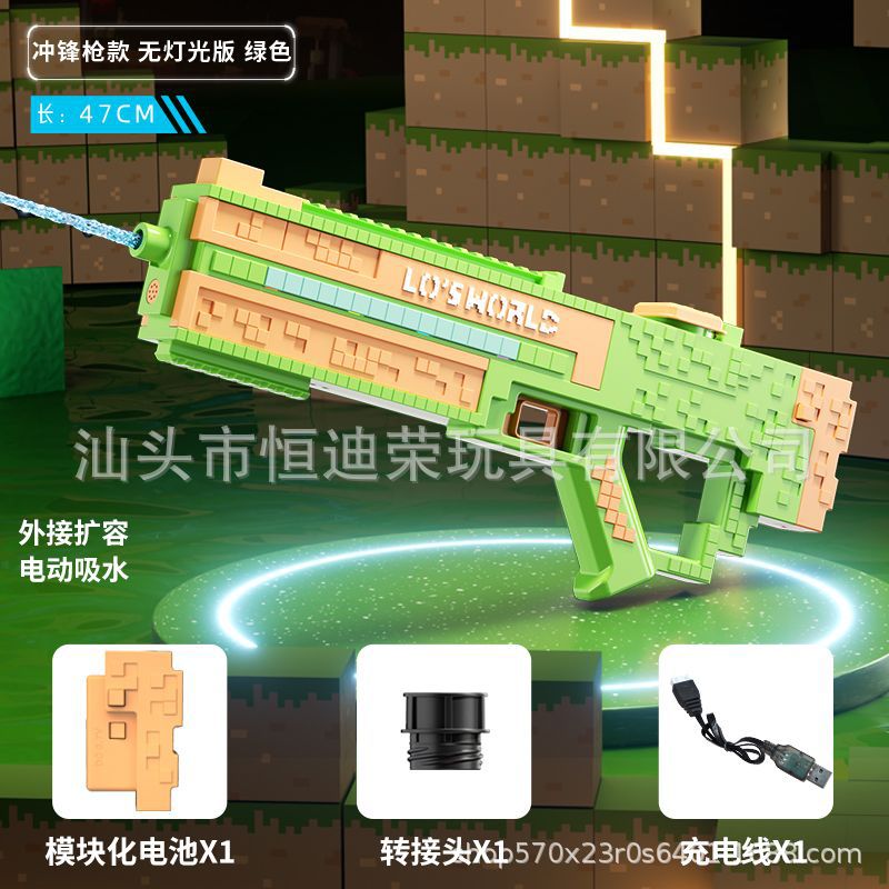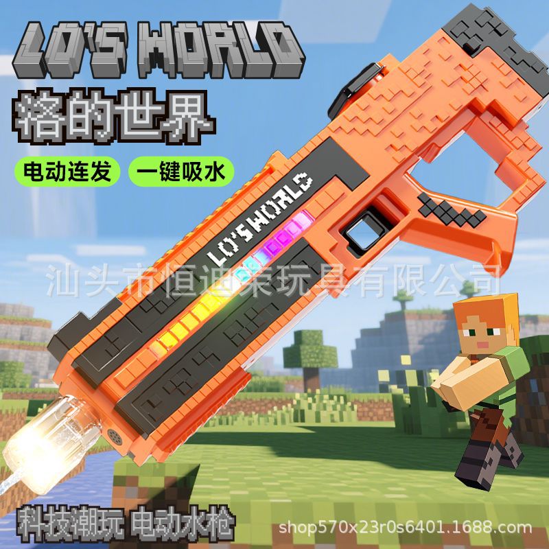 픽셀 스타일 마인 크래프트 펄스 물총 전기 연속 자동 물 흡입 어린이 물 싸움 물 장난감스토어 가기