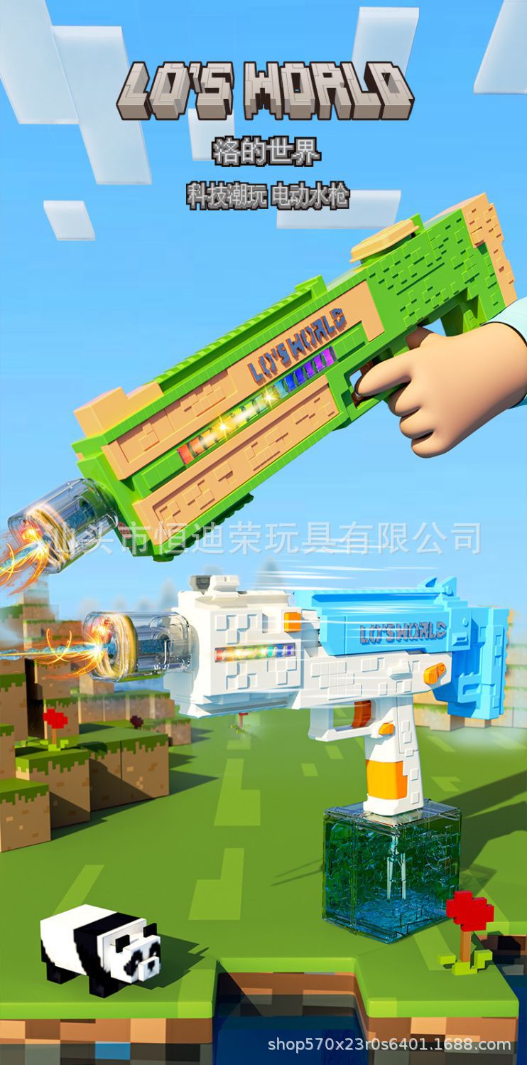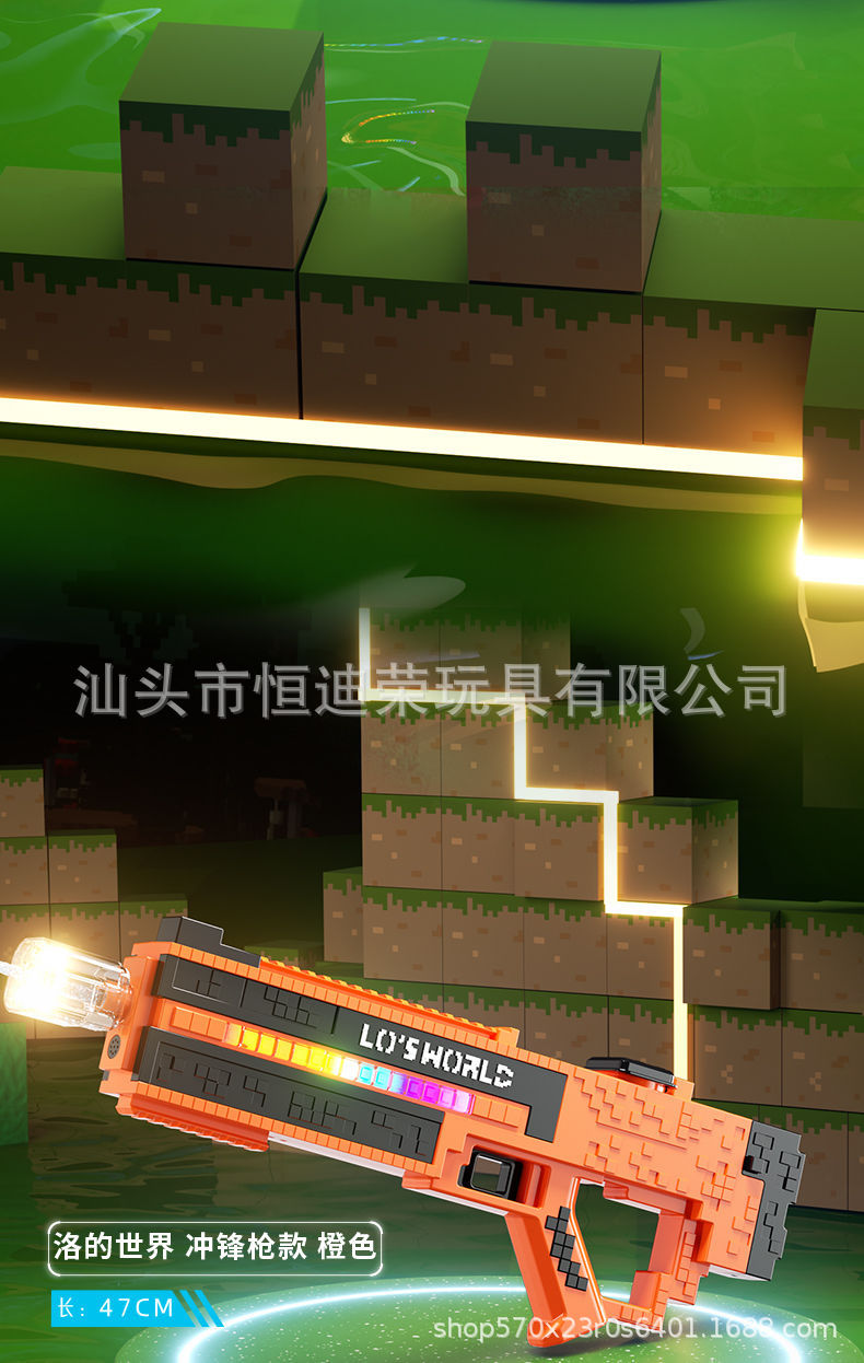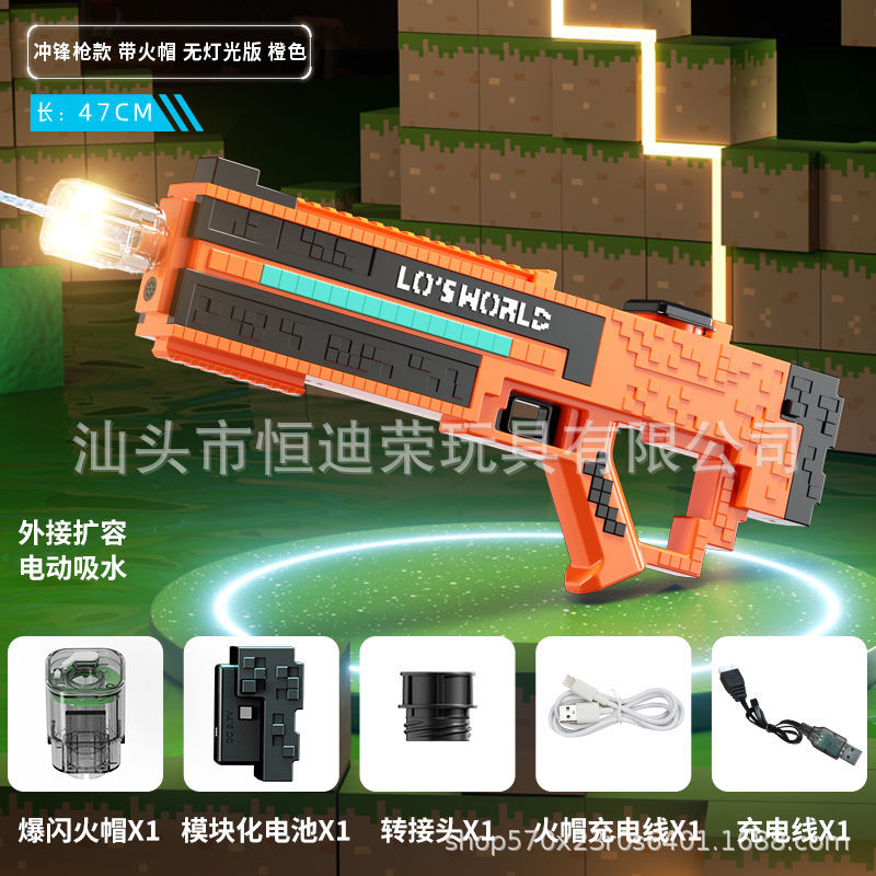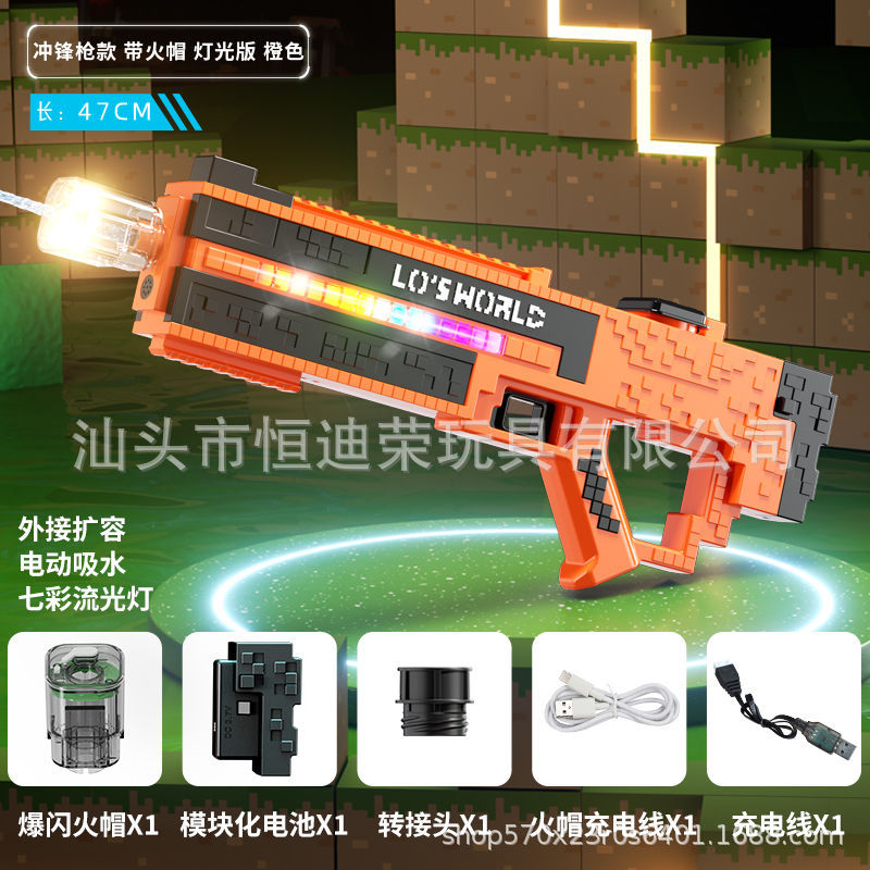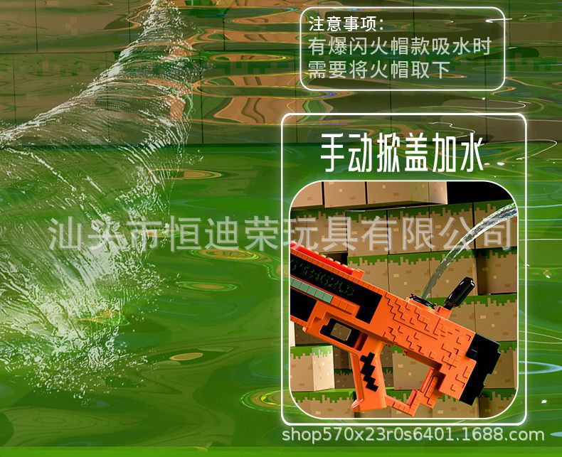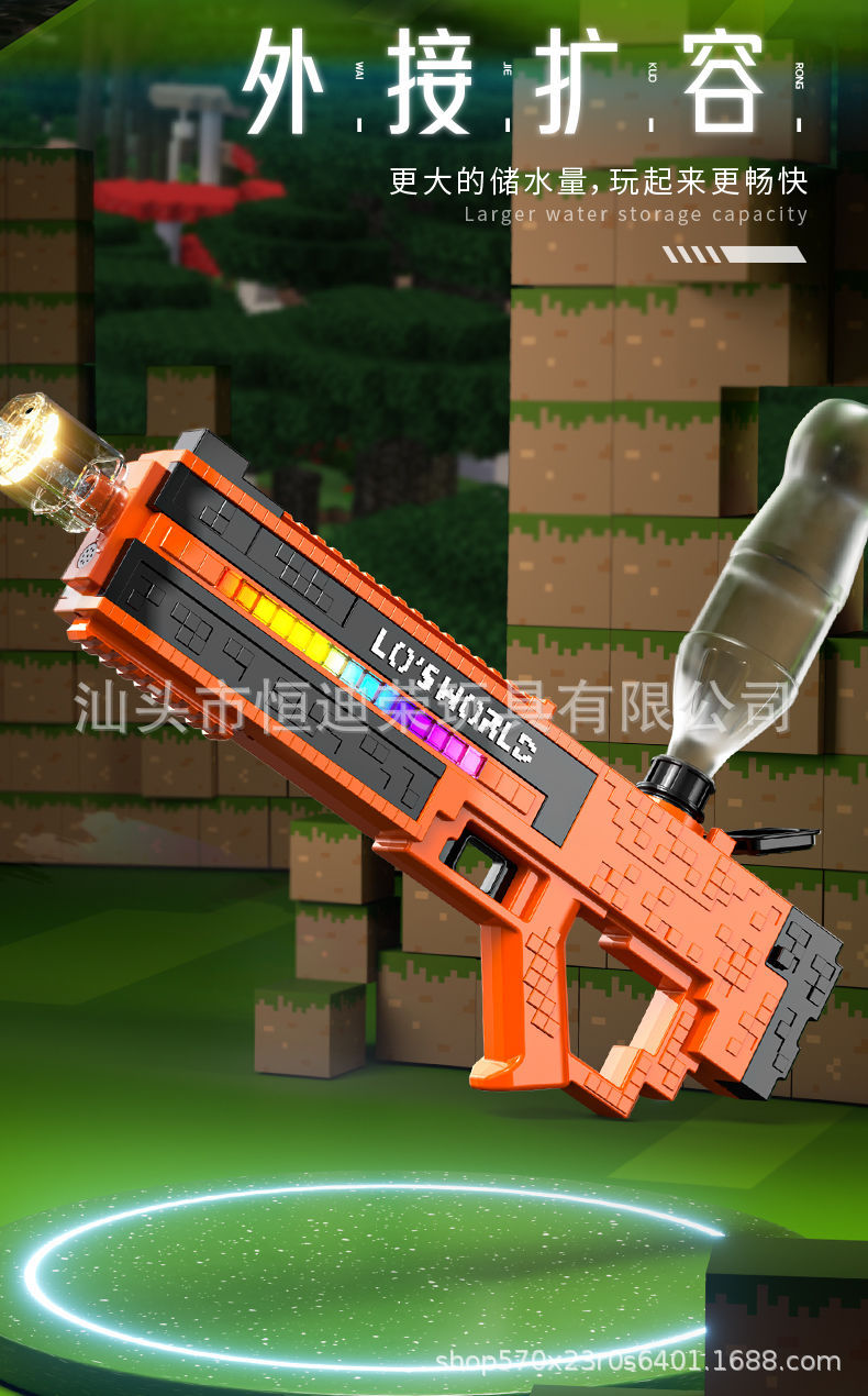 픽셀 스타일 마인 크래프트 펄스 물총 전기 연속 자동 물 흡입 어린이 물 싸움 물 장난감스토어 가기
