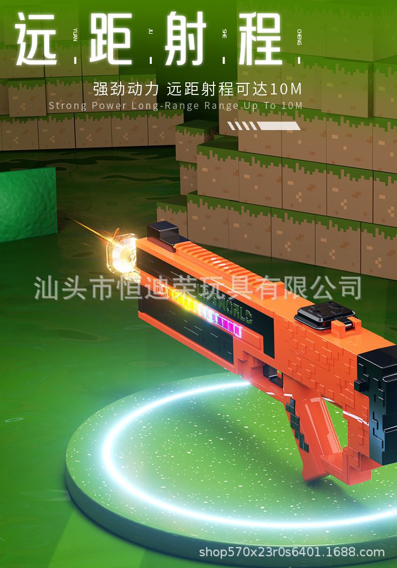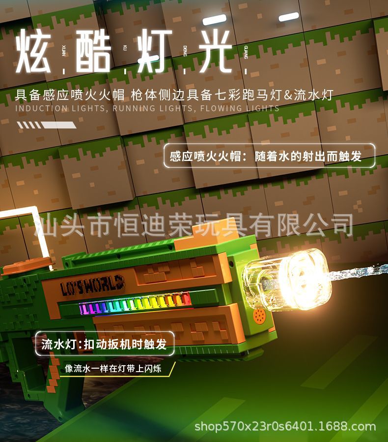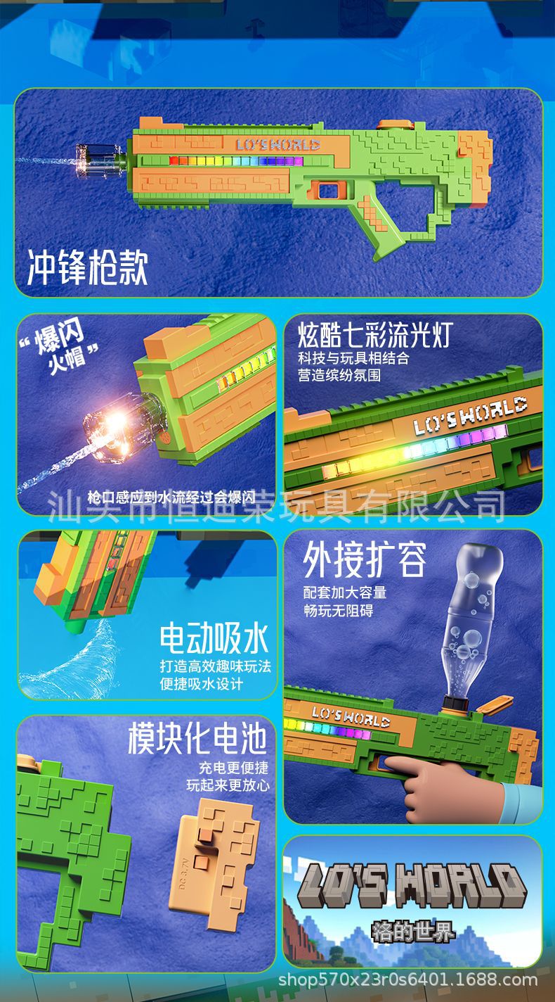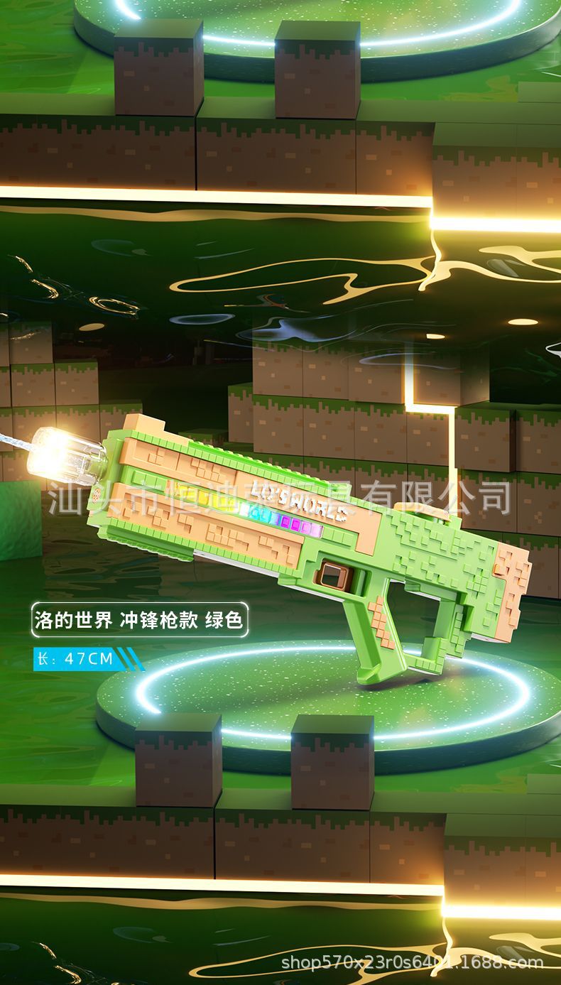픽셀 스타일 마인 크래프트 펄스 물총 전기 연속 자동 물 흡입 어린이 물 싸움 물 장난감스토어 가기