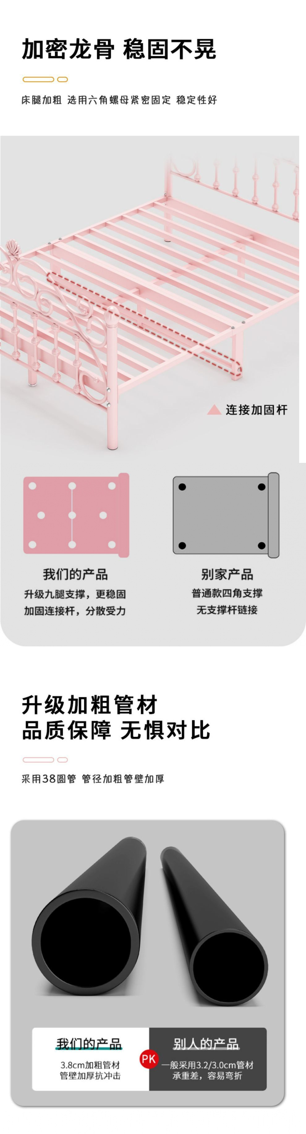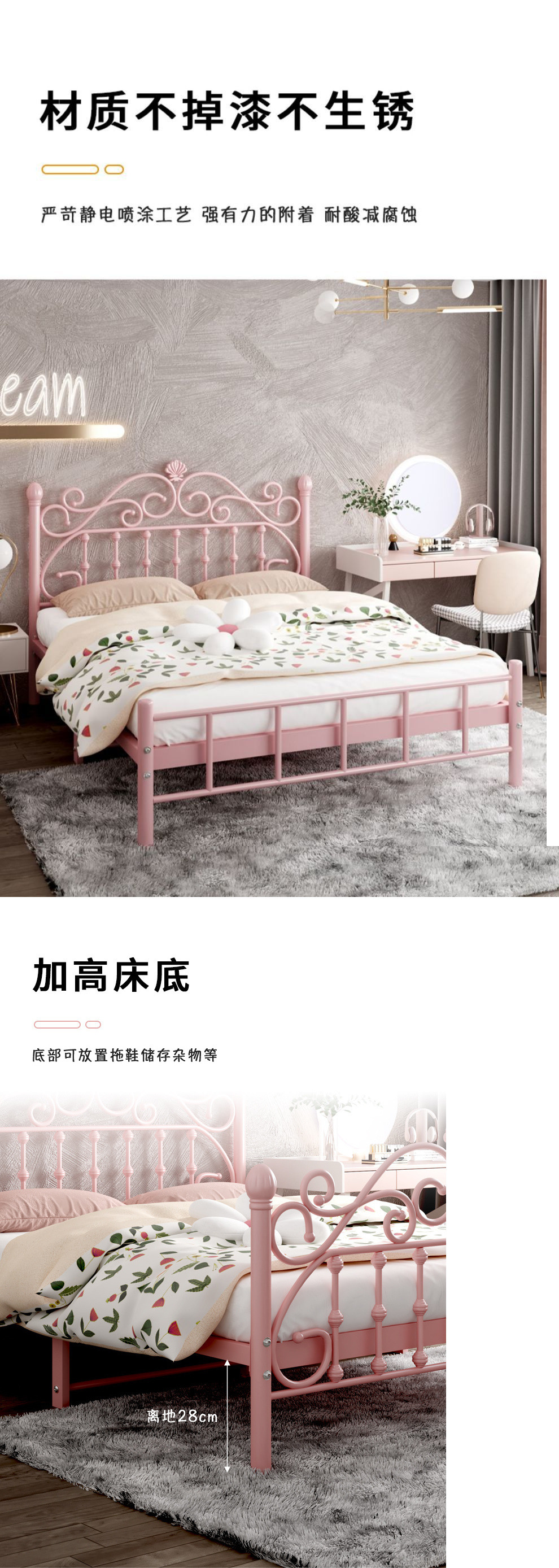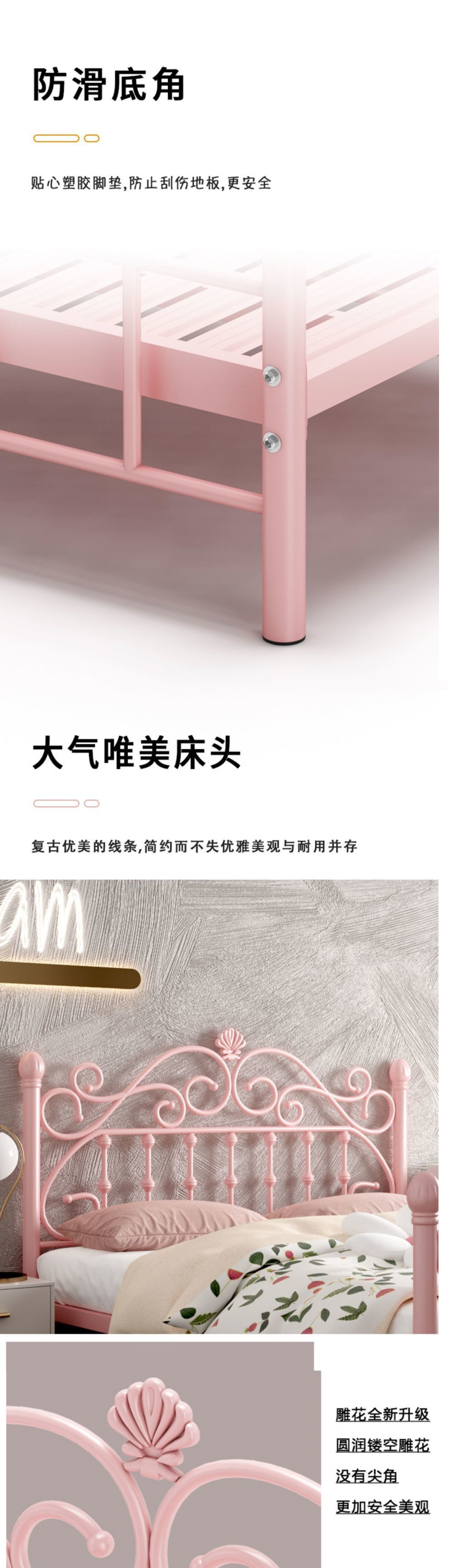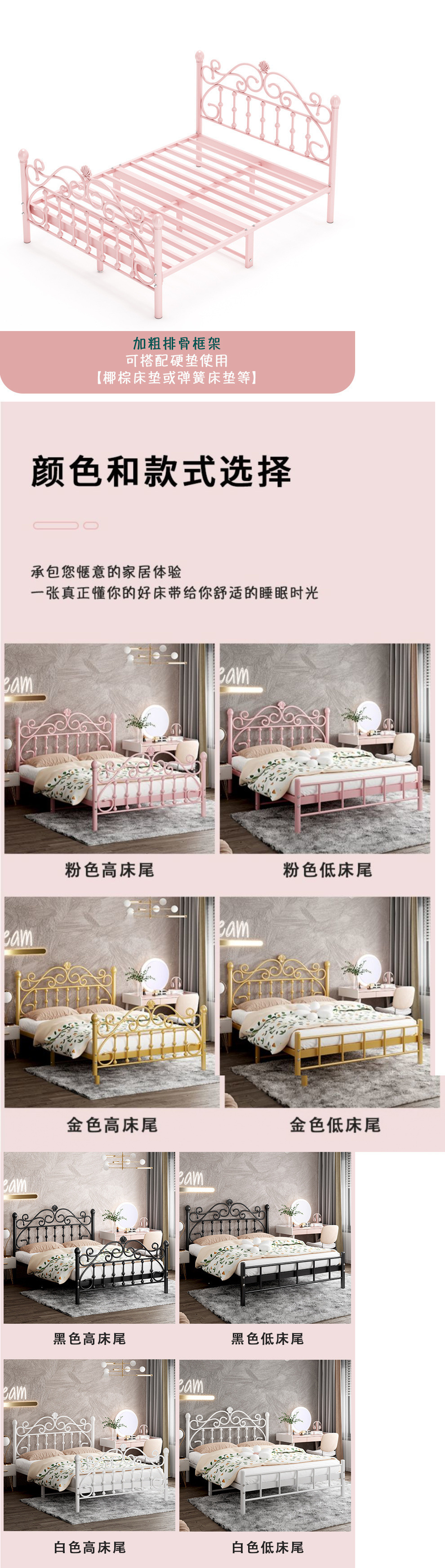 철제 침대 두꺼워지고 강화된 심플 모던 공주 침대 인터넷 연예인 1.8m 더블 침대 북유럽 싱글 1m 철제 프레임 침대스토어 가기