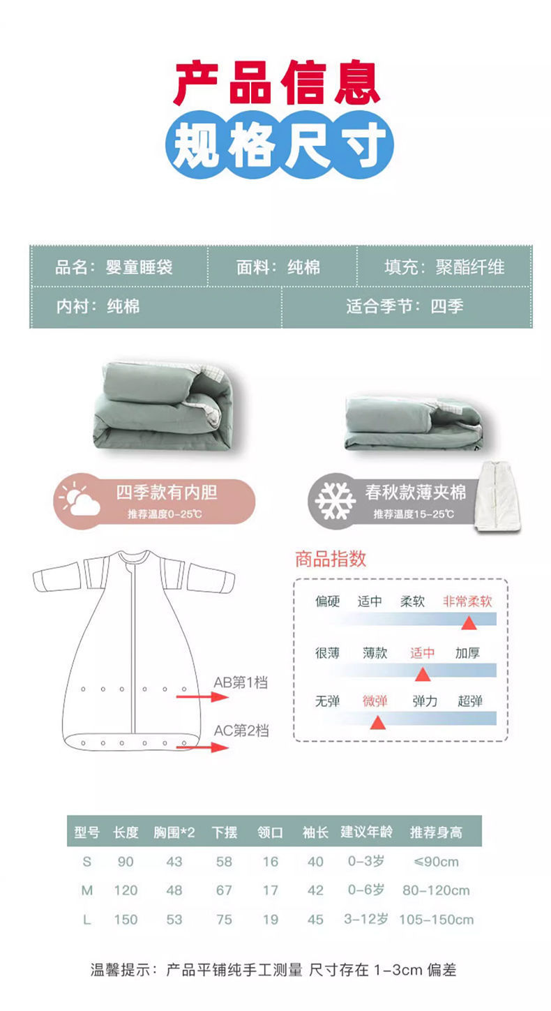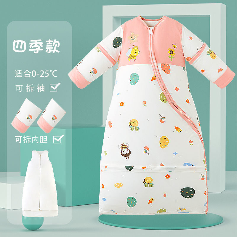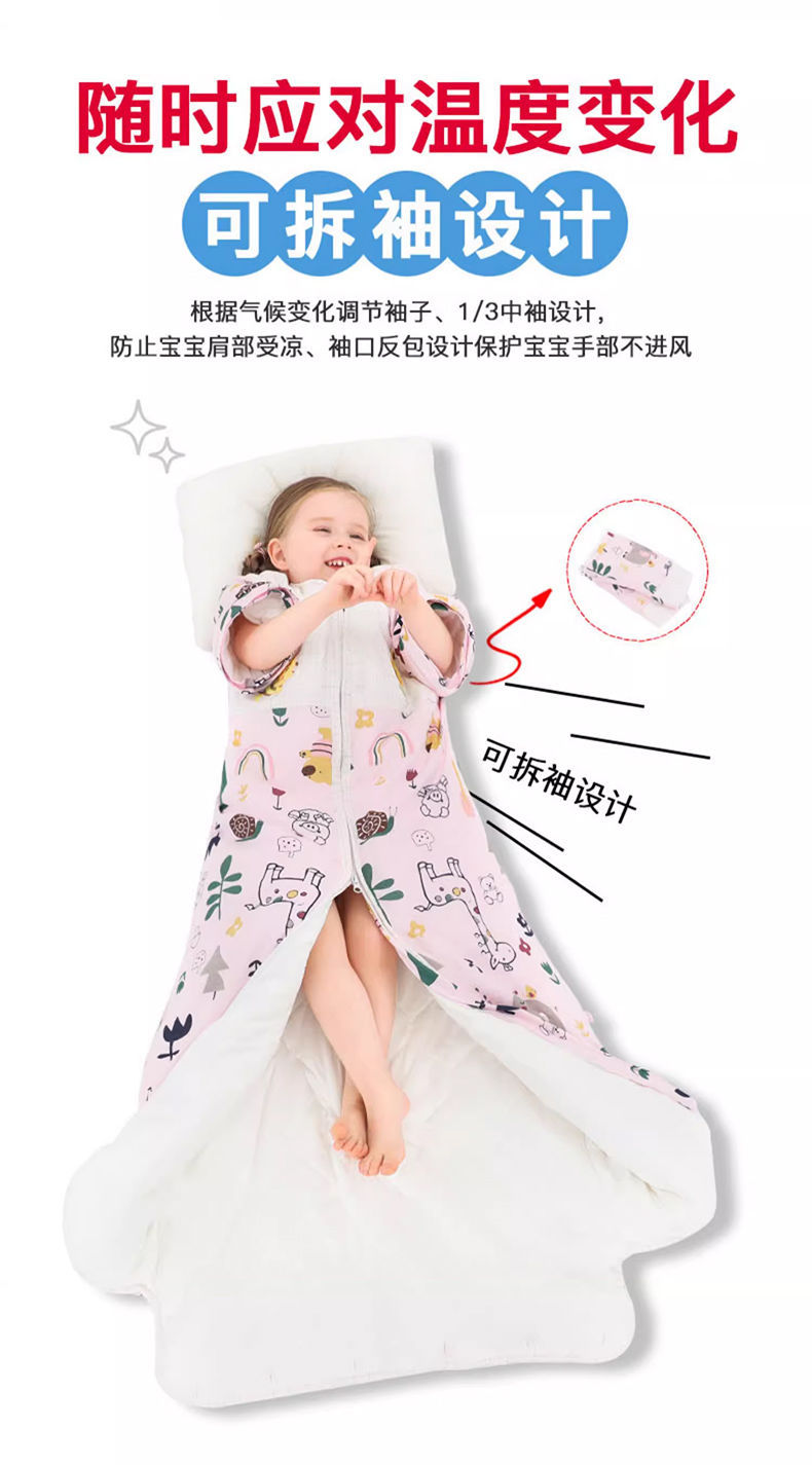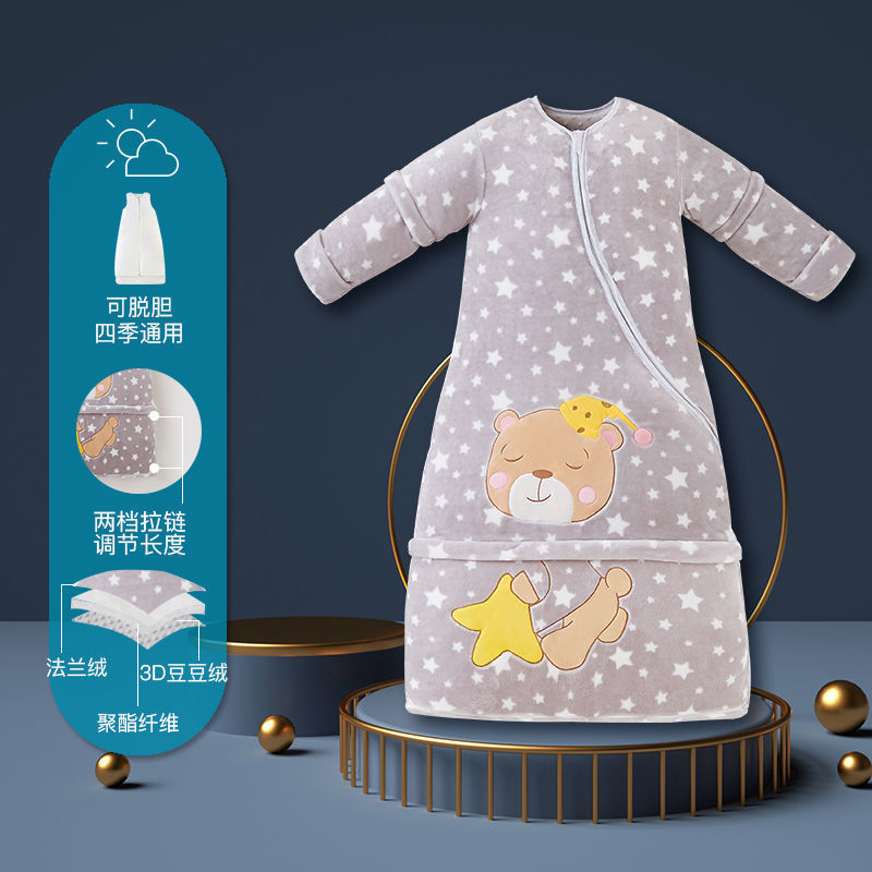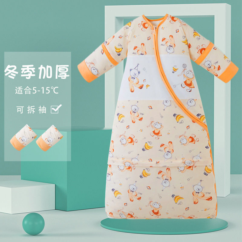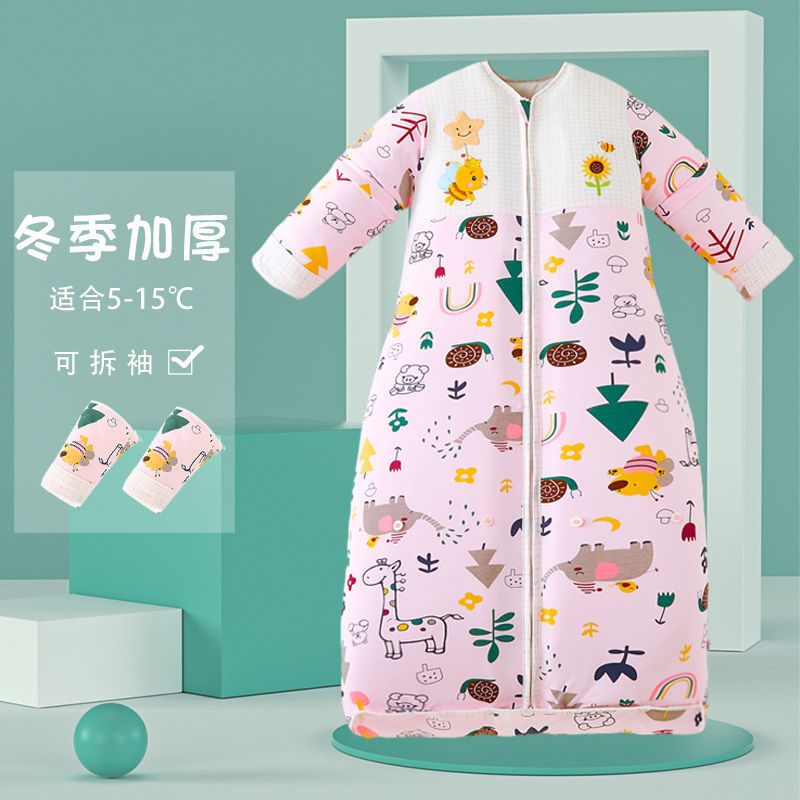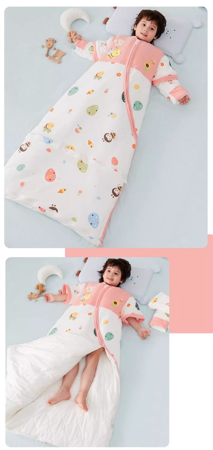 3-6세 어린이를 위한 아기 침낭, 가을 겨울 두꺼워지고 탈착 가능한 아기 폴리에스터 면 봄, 가을 사계절 발차기 방지 아티팩트