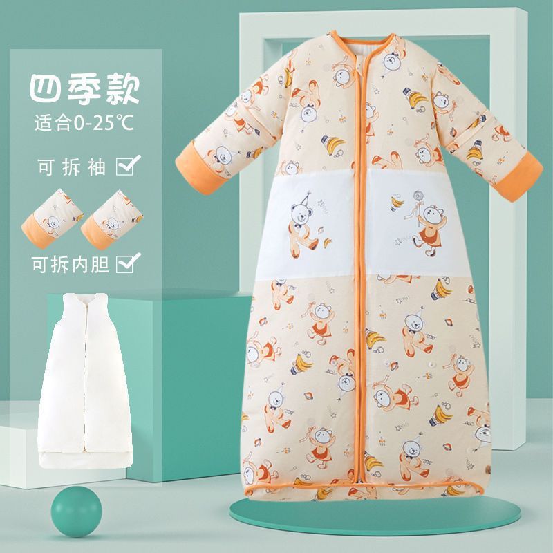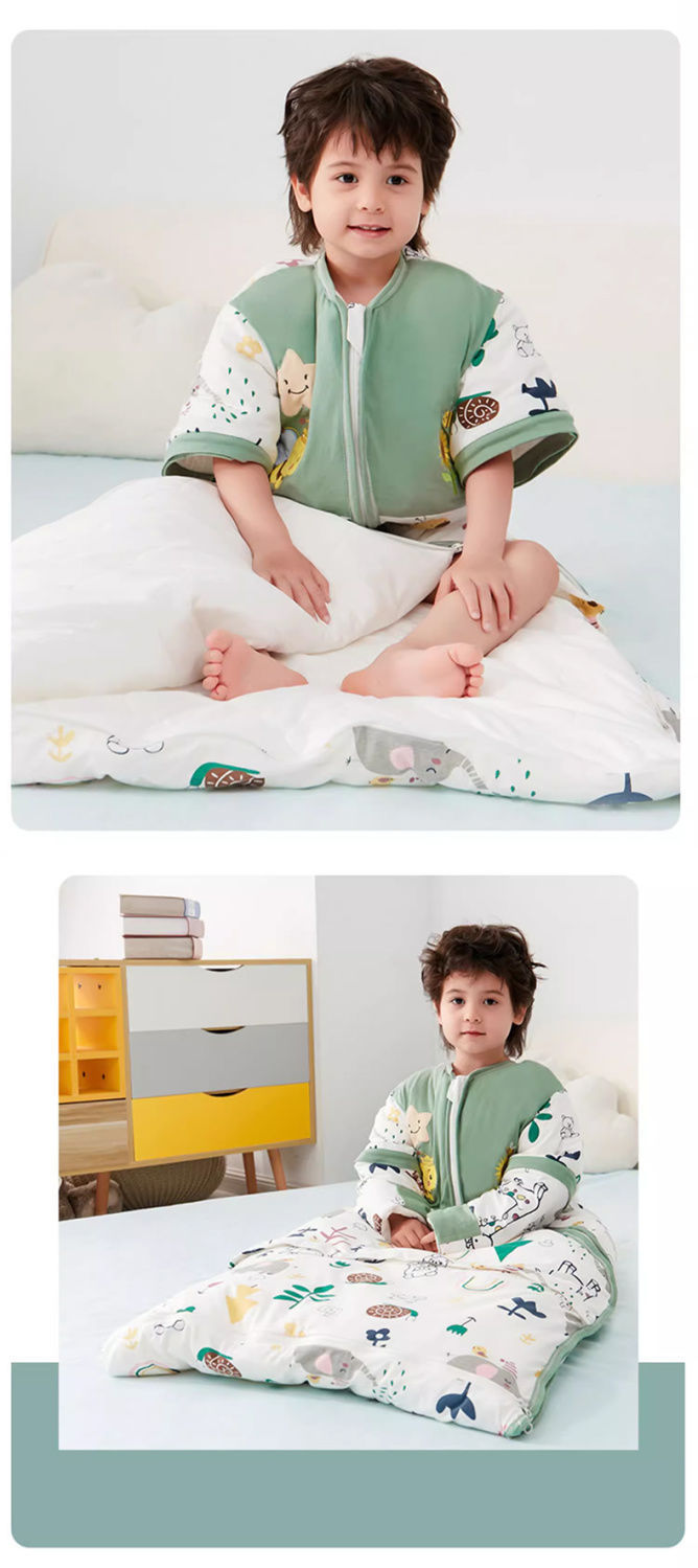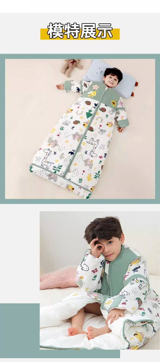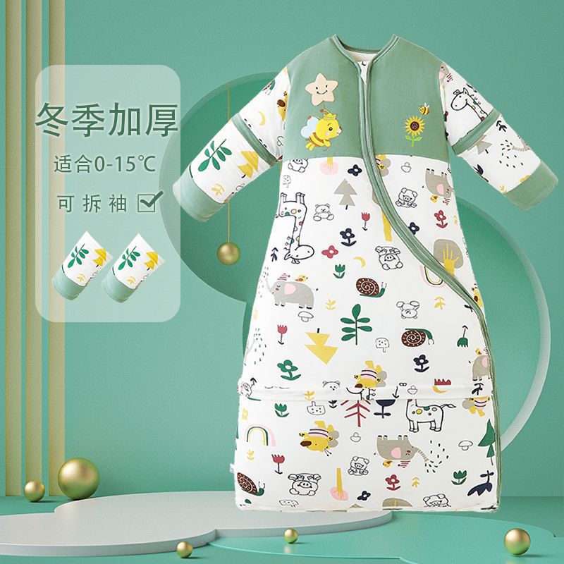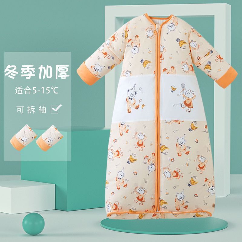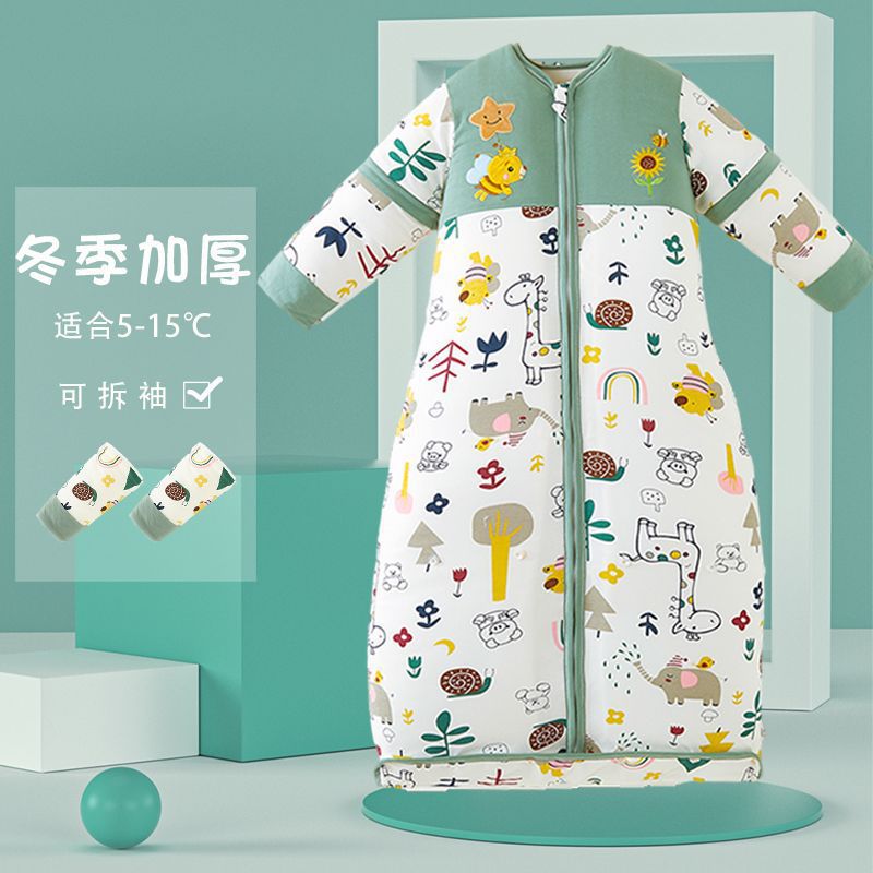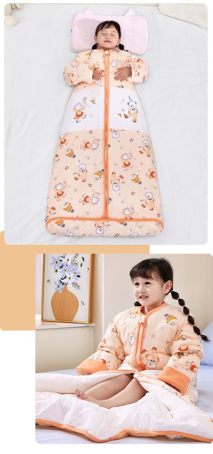 3-6세 어린이를 위한 아기 침낭, 가을 겨울 두꺼워지고 탈착 가능한 아기 폴리에스터 면 봄, 가을 사계절 발차기 방지 아티팩트스토어 가기