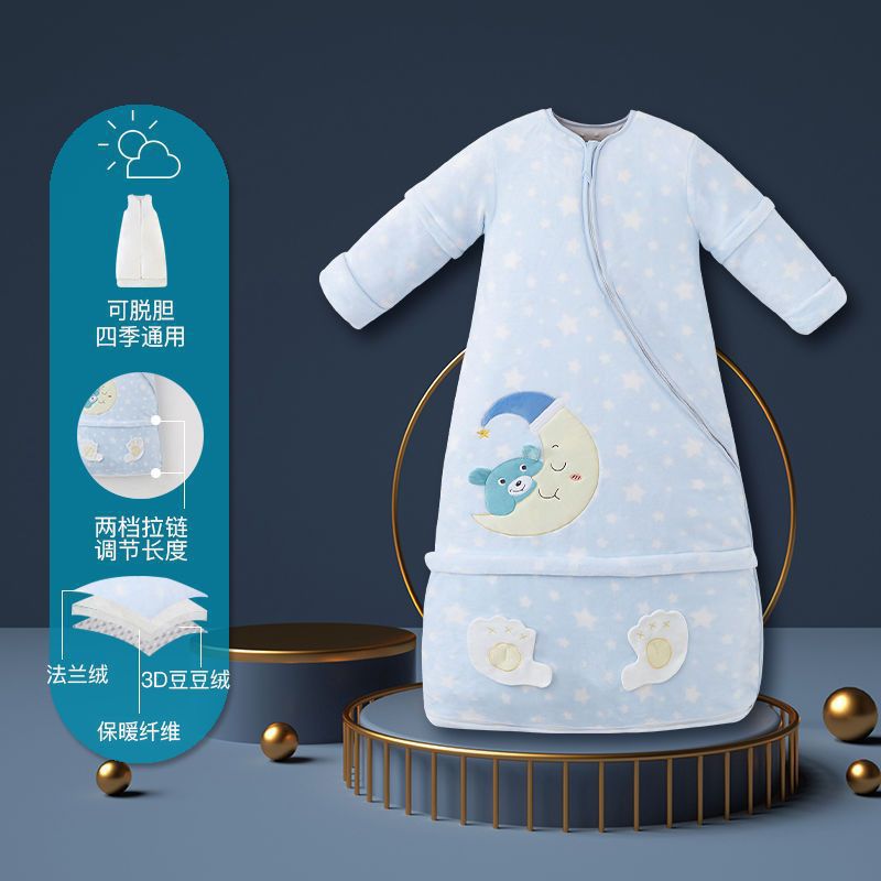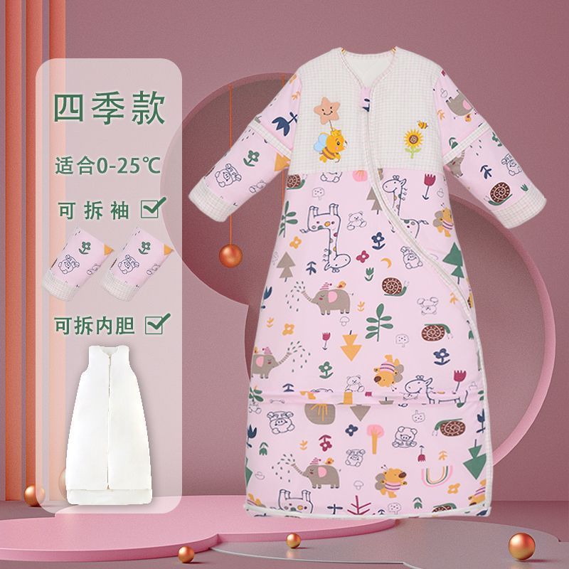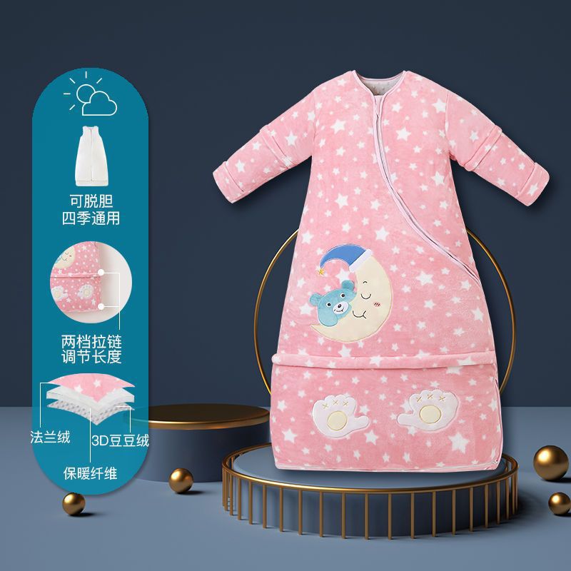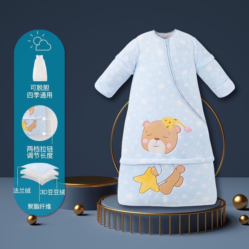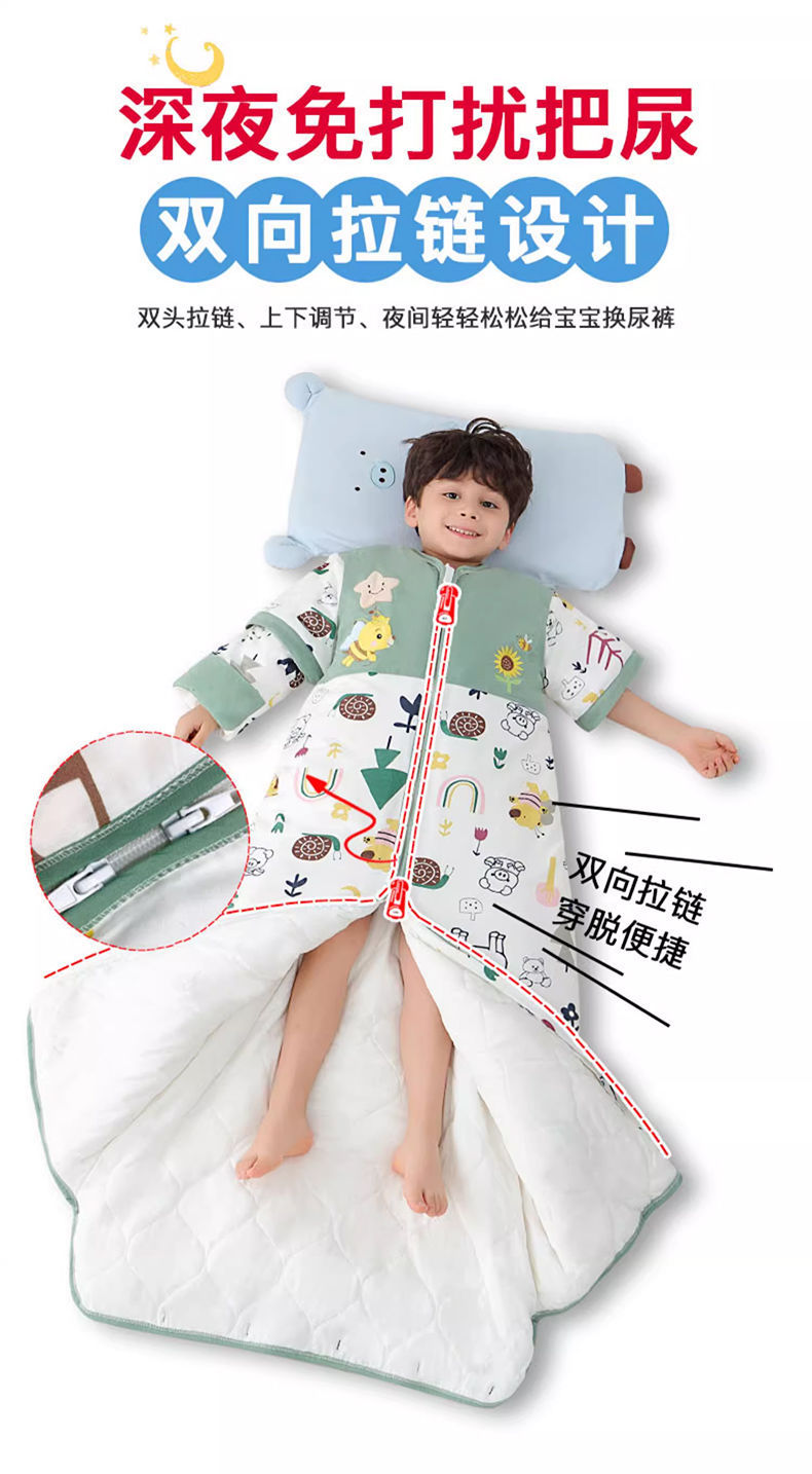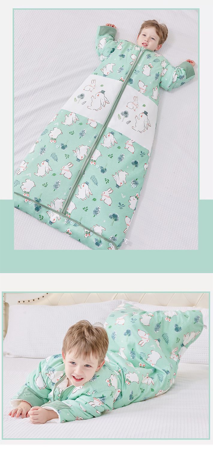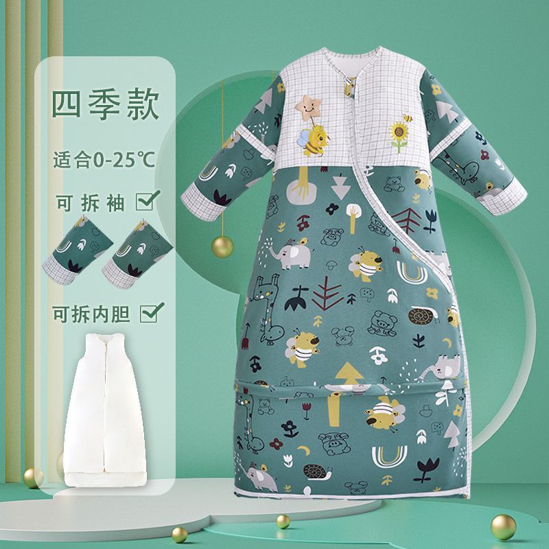 3-6세 어린이를 위한 아기 침낭, 가을 겨울 두꺼워지고 탈착 가능한 아기 폴리에스터 면 봄, 가을 사계절 발차기 방지 아티팩트스토어 가기