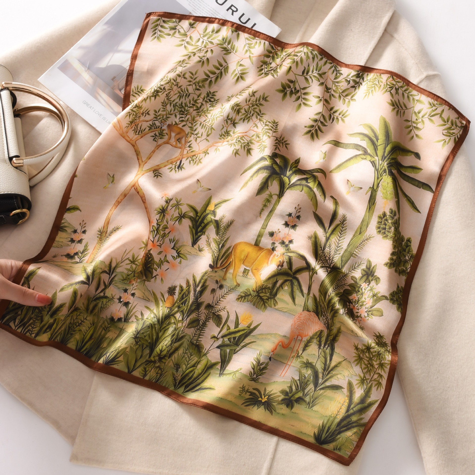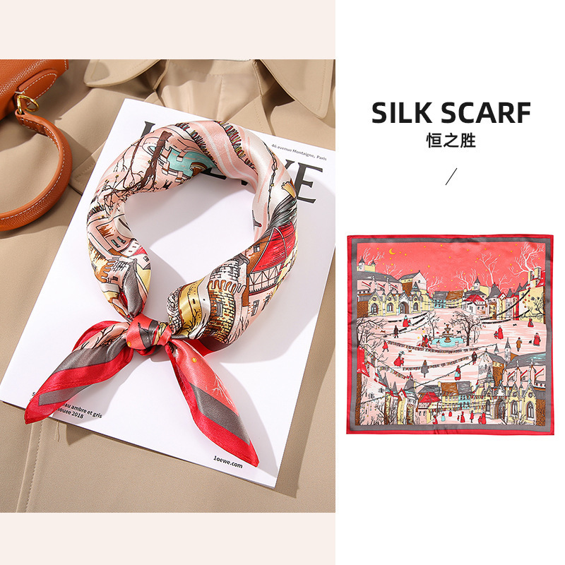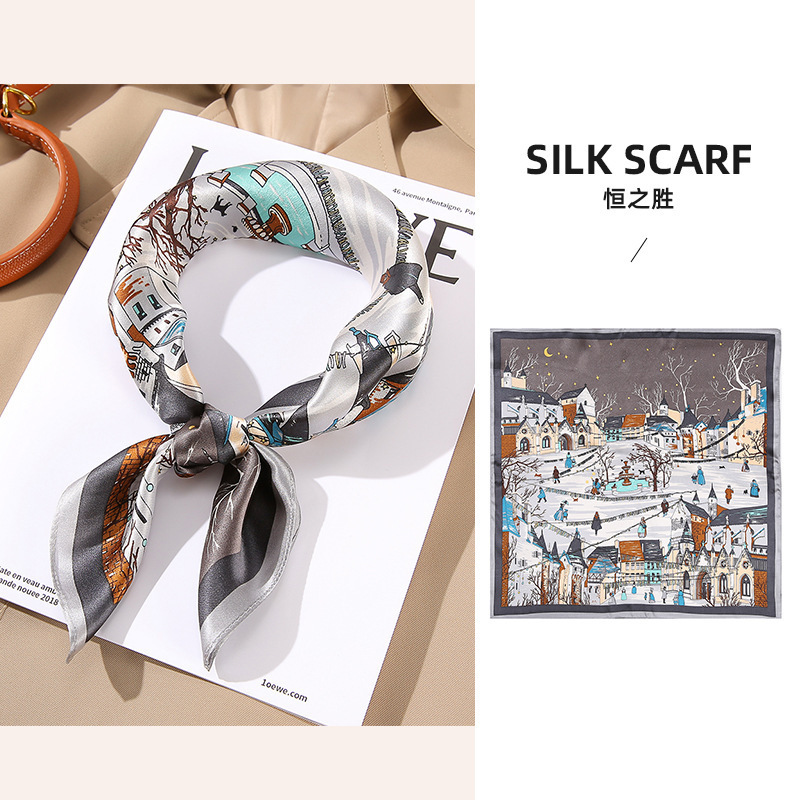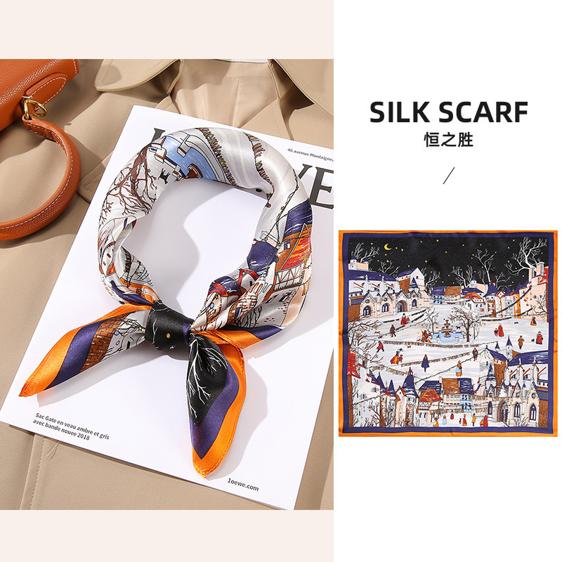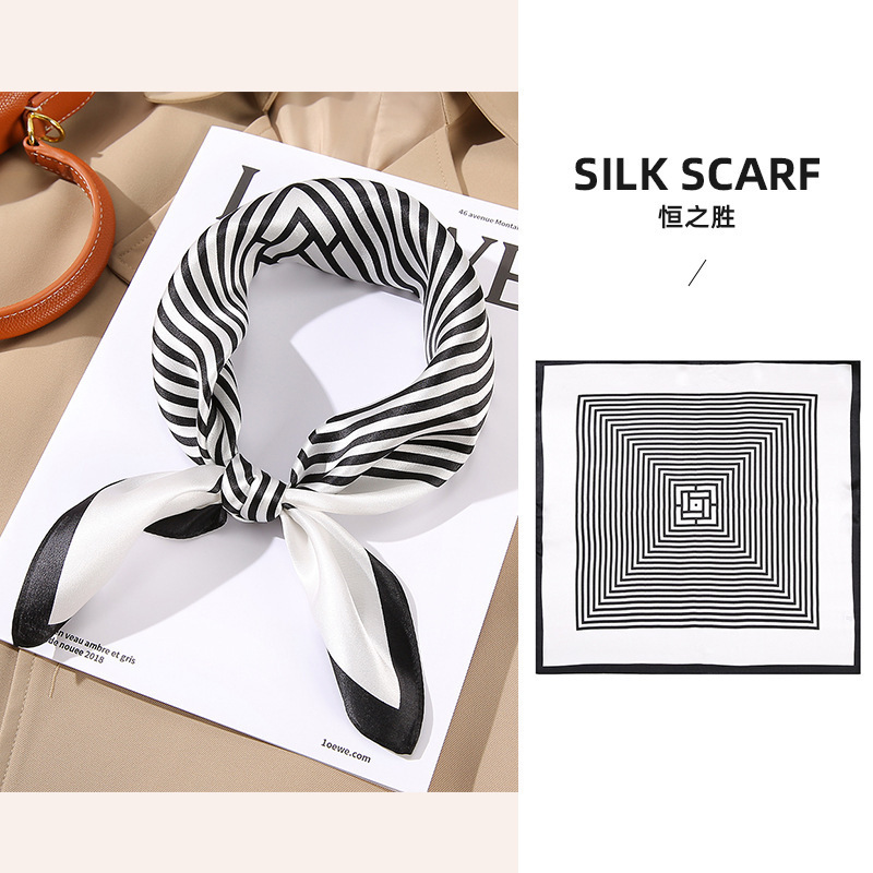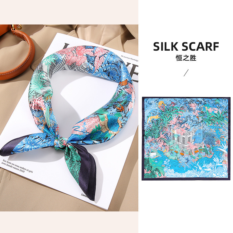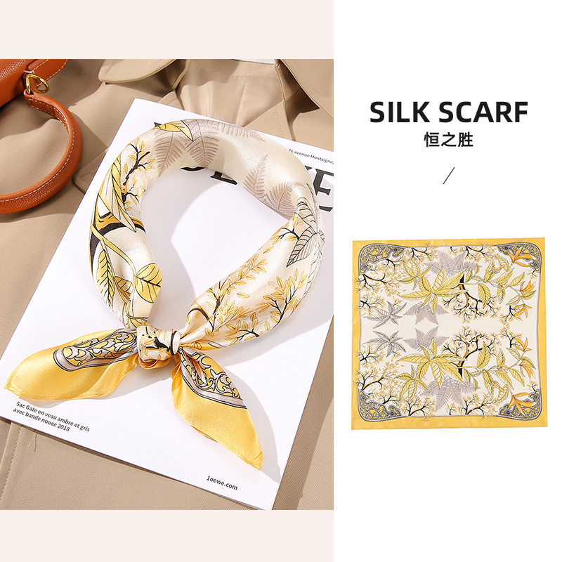 봄과 여름 실크 머리띠 여성 실크 작은 사각형 스카프 리본 53cm 세련된 머리 묶기 뽕나무 실크 스카프 터번스토어 가기