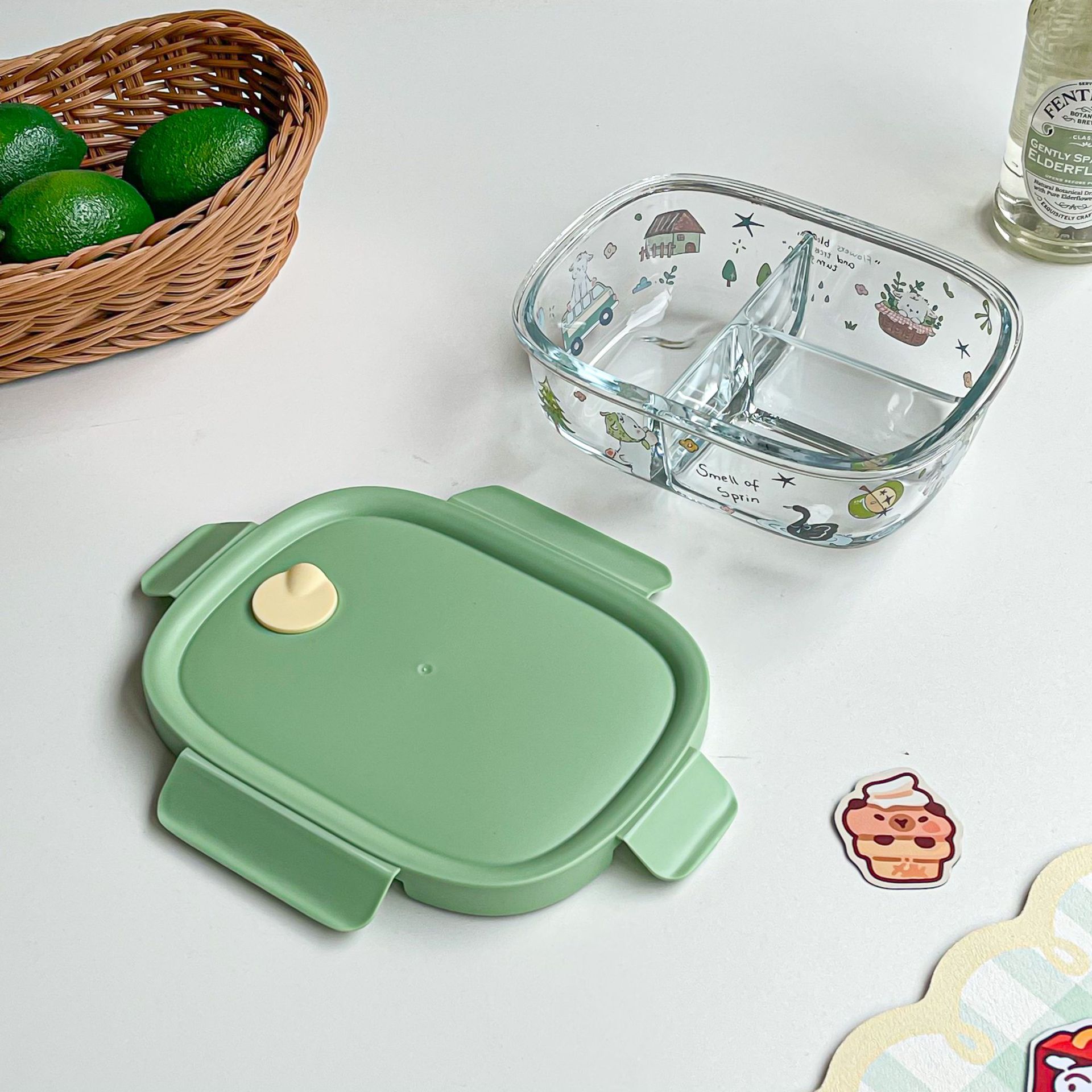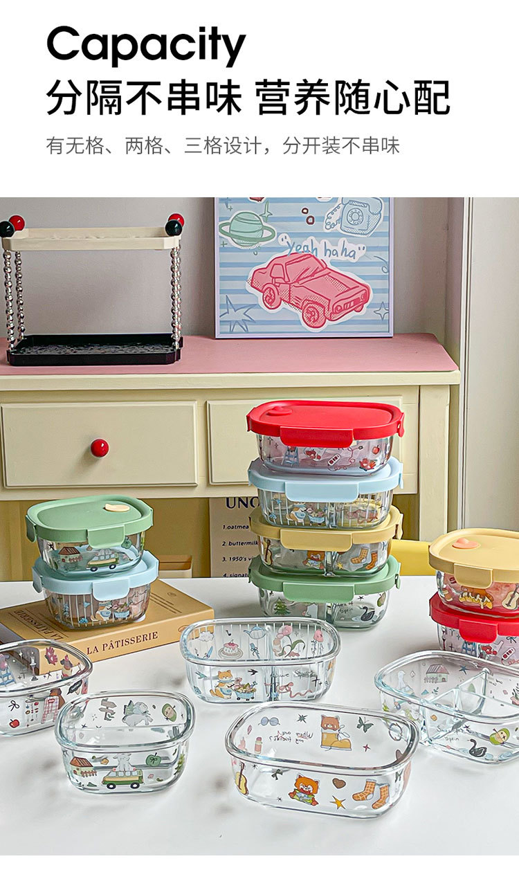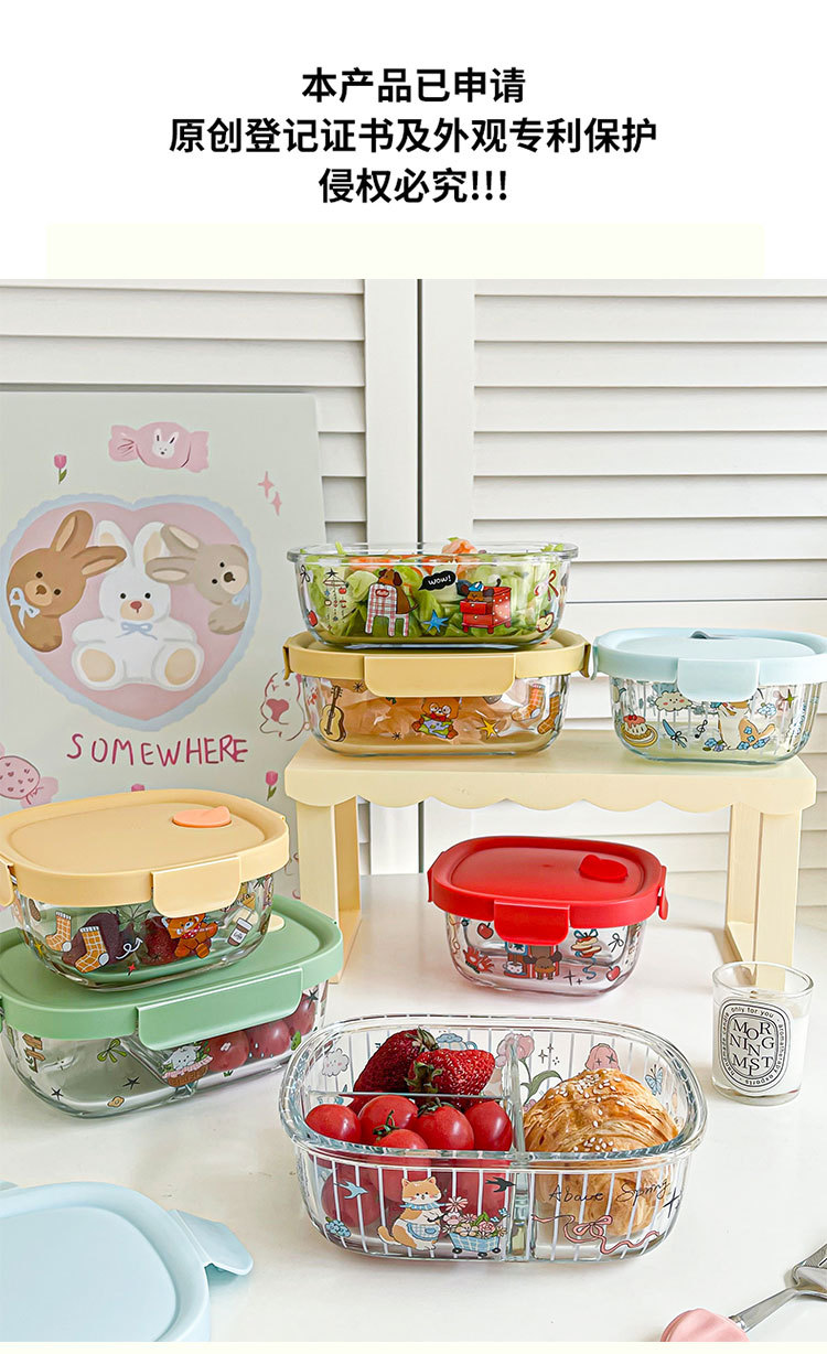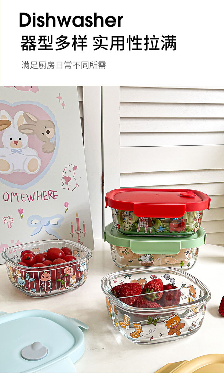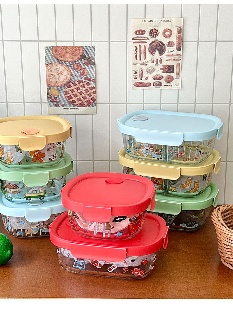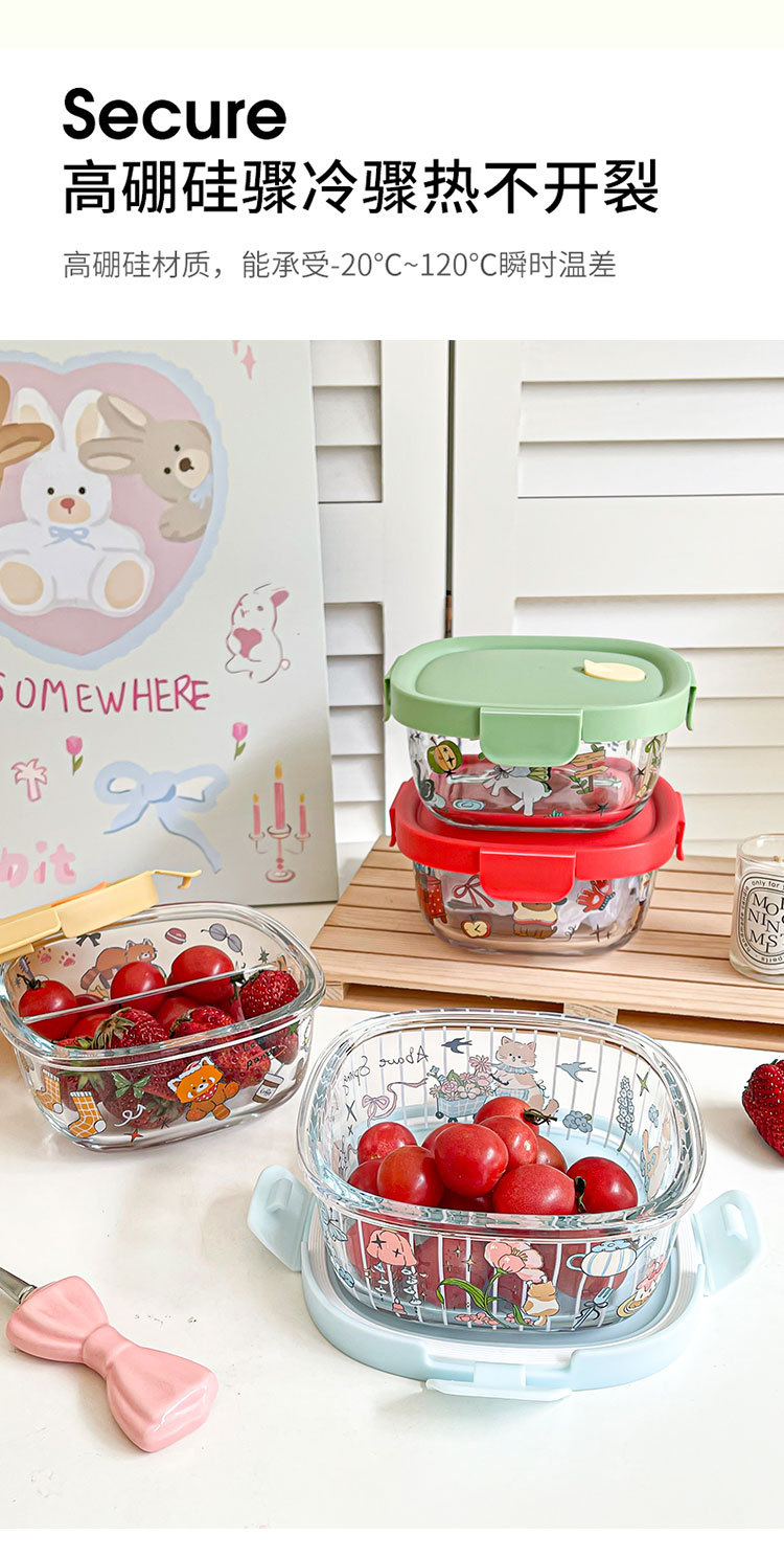 봄 메신저 도시락 시리즈 유리 도시락 학생 직장인 과일 크리스퍼 밀봉 분리 도시락스토어 가기