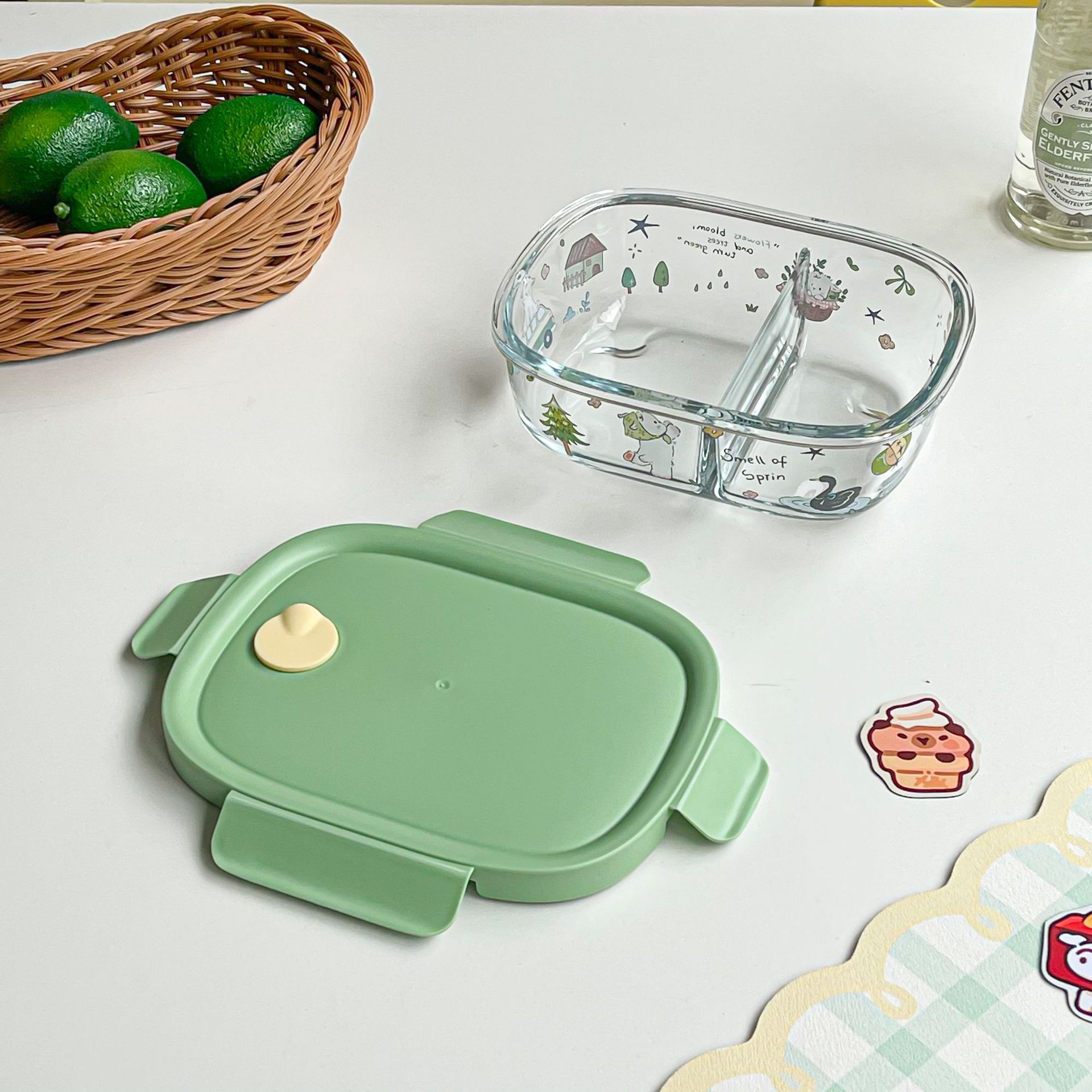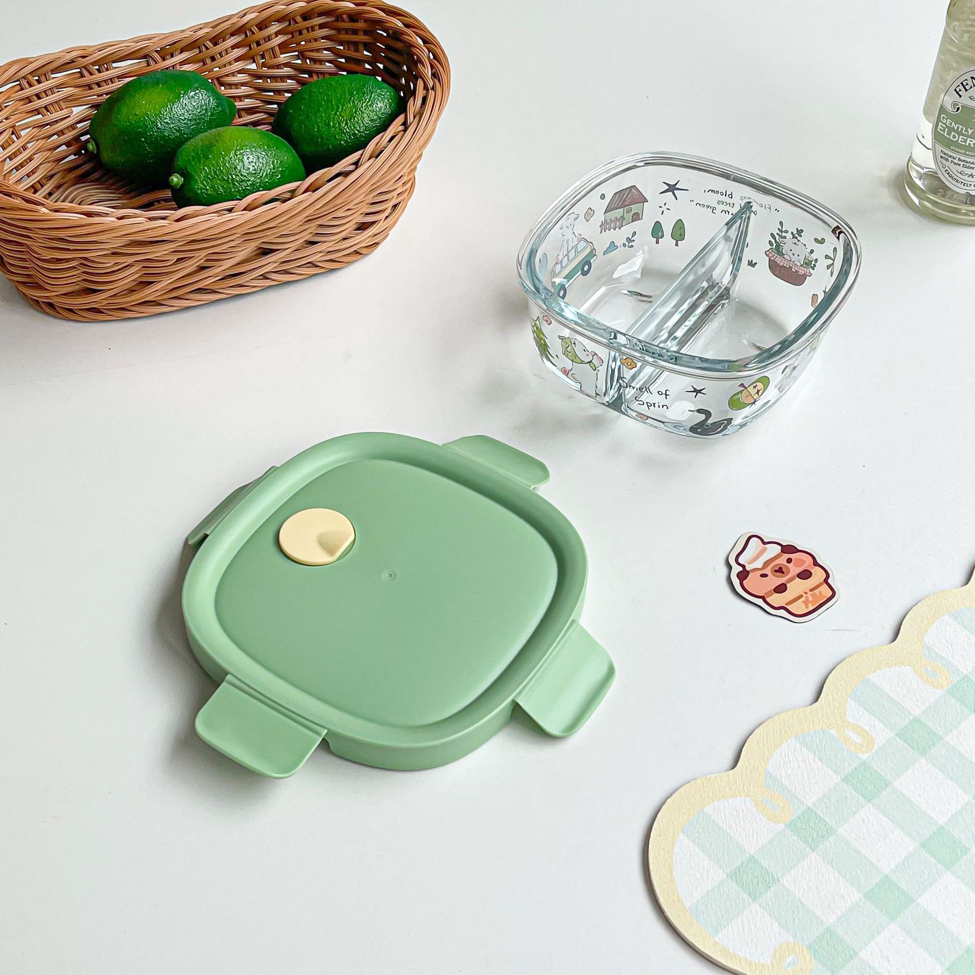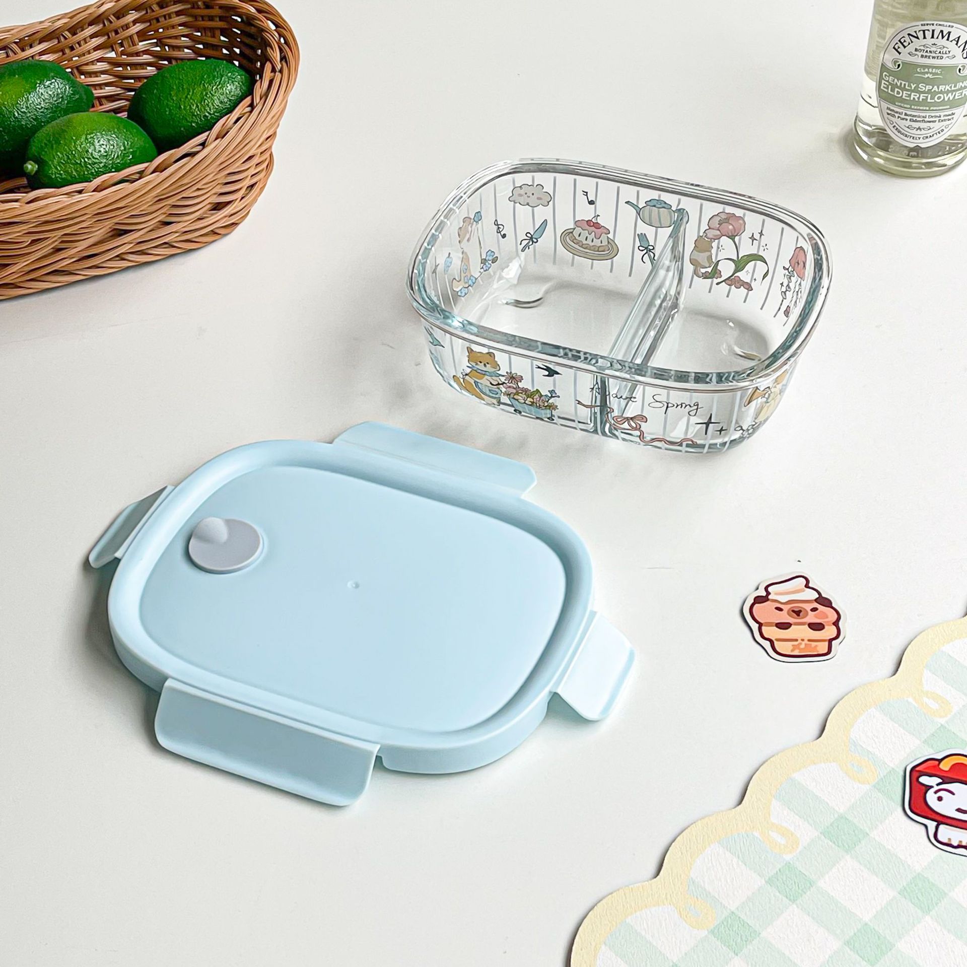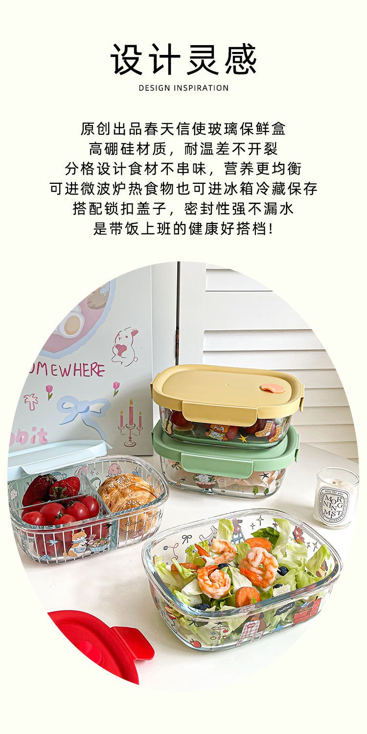 봄 메신저 도시락 시리즈 유리 도시락 학생 직장인 과일 크리스퍼 밀봉 분리 도시락