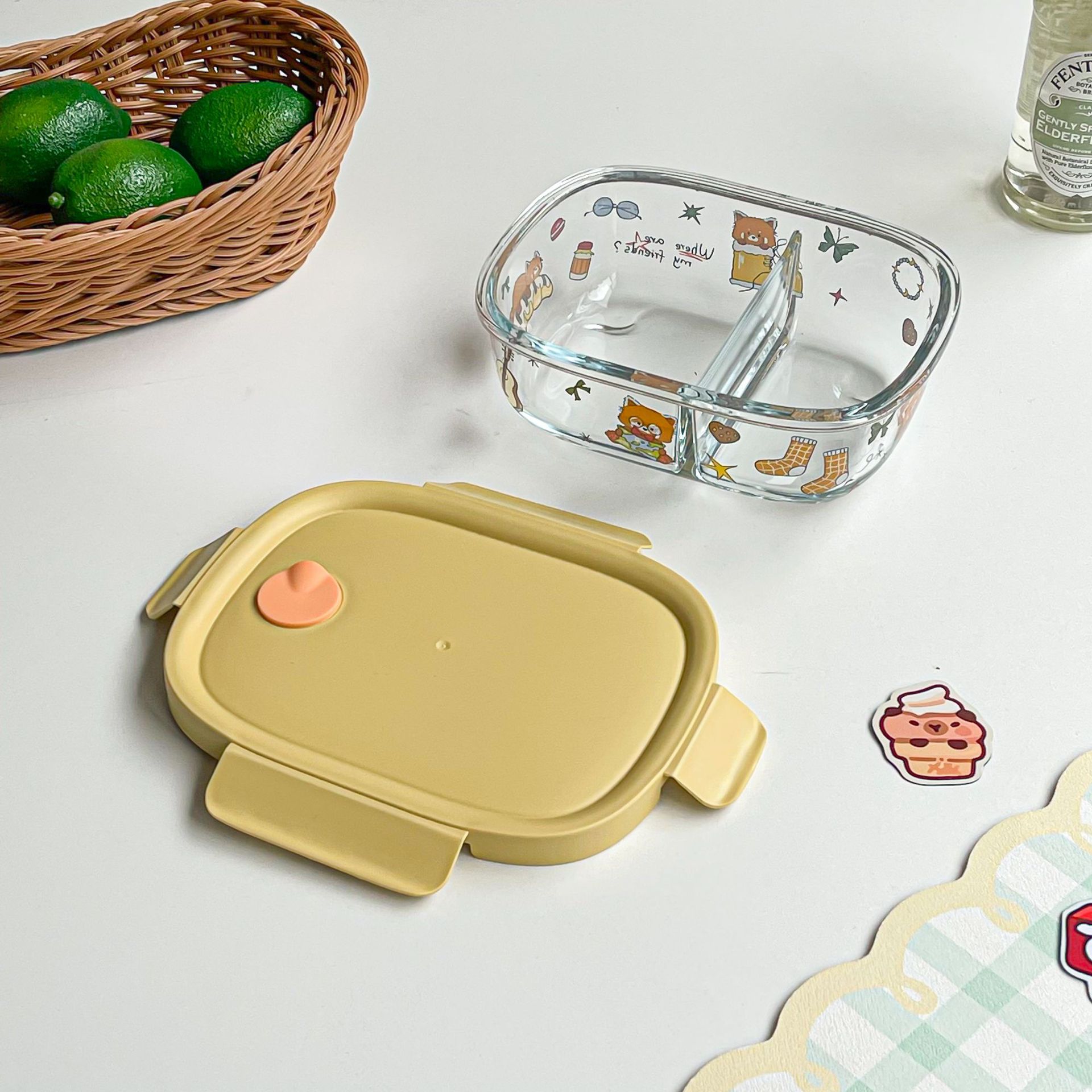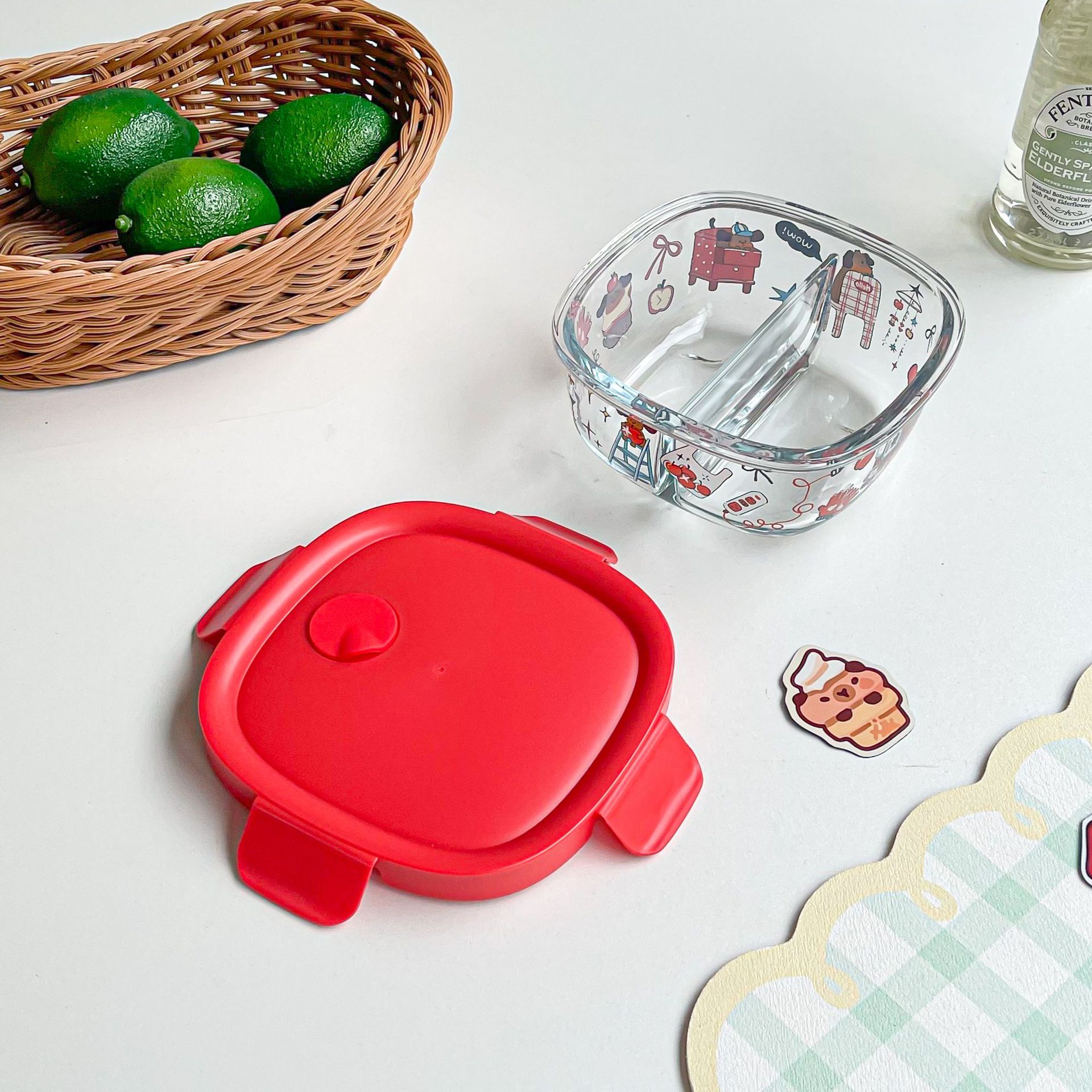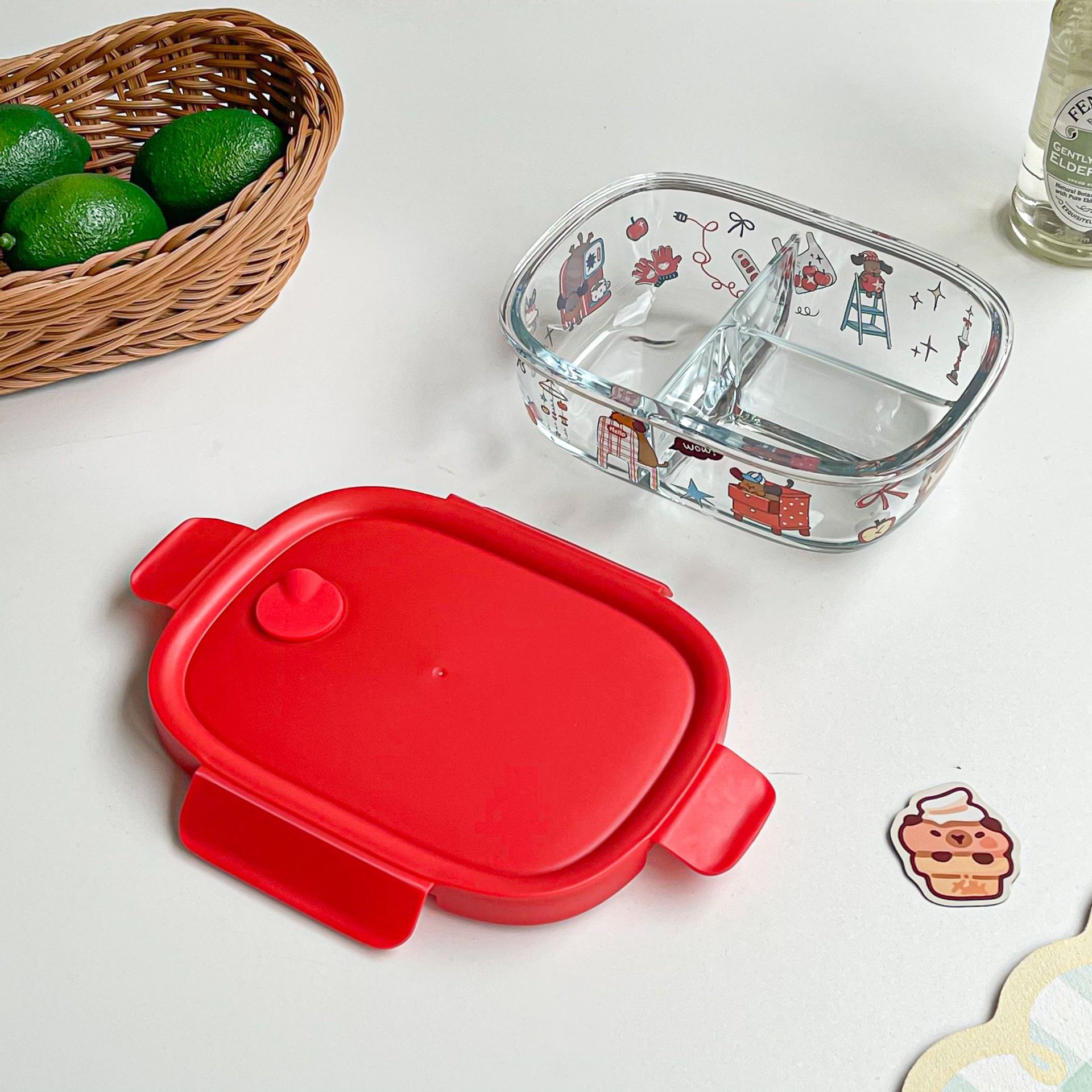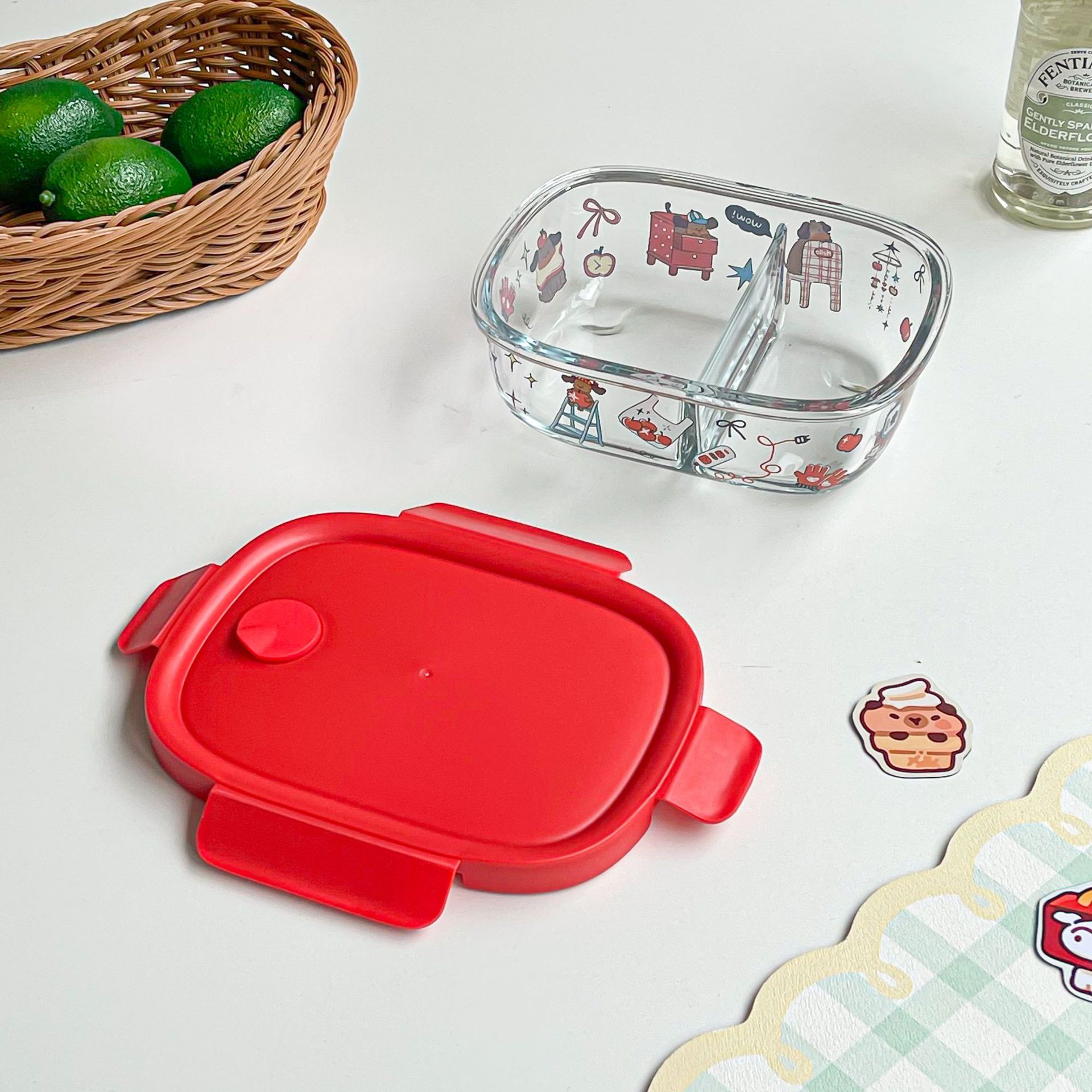 봄 메신저 도시락 시리즈 유리 도시락 학생 직장인 과일 크리스퍼 밀봉 분리 도시락