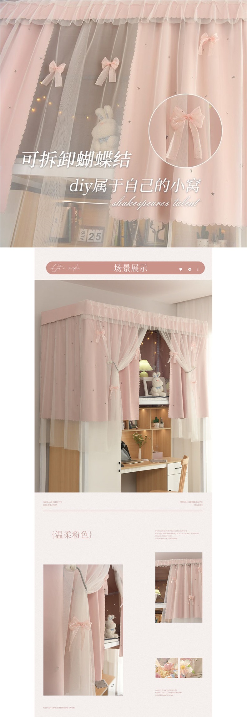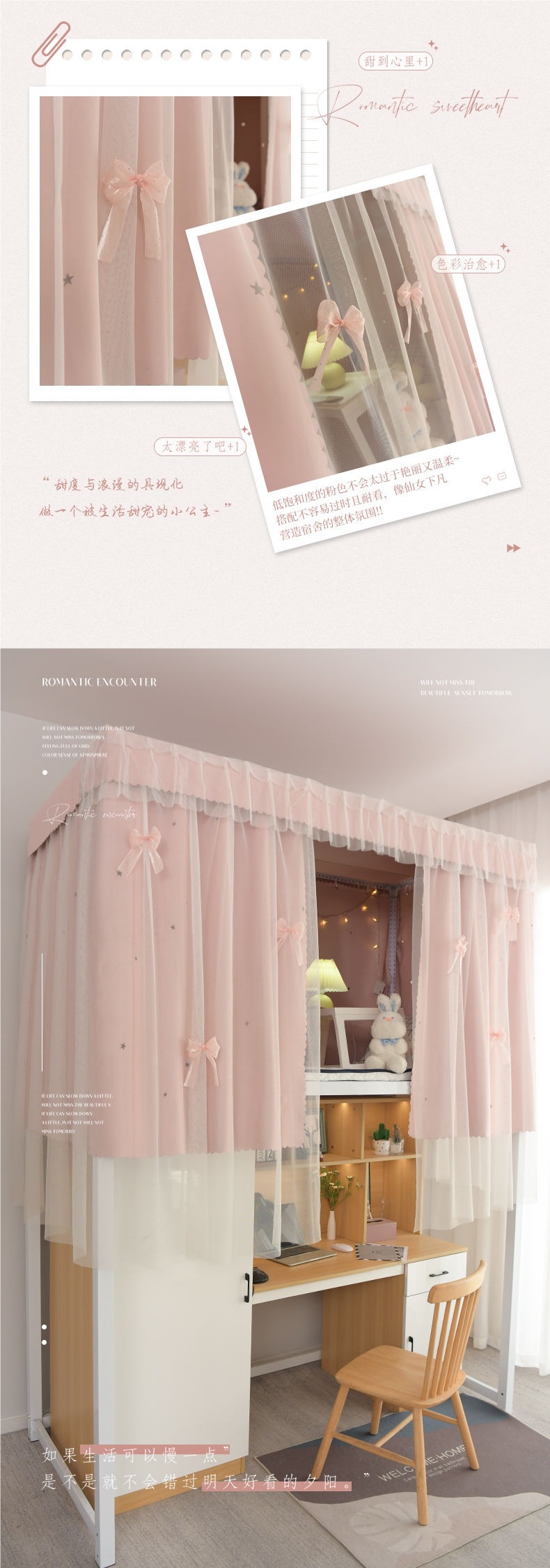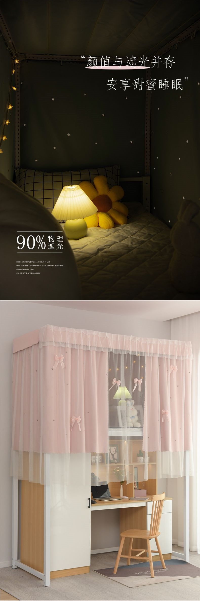 공주풍 침대커튼, 모기장, 여아침실 이층침대 일체형, 요정기숙사 블랙아웃커튼, 학생용 두꺼운 커튼스토어 가기