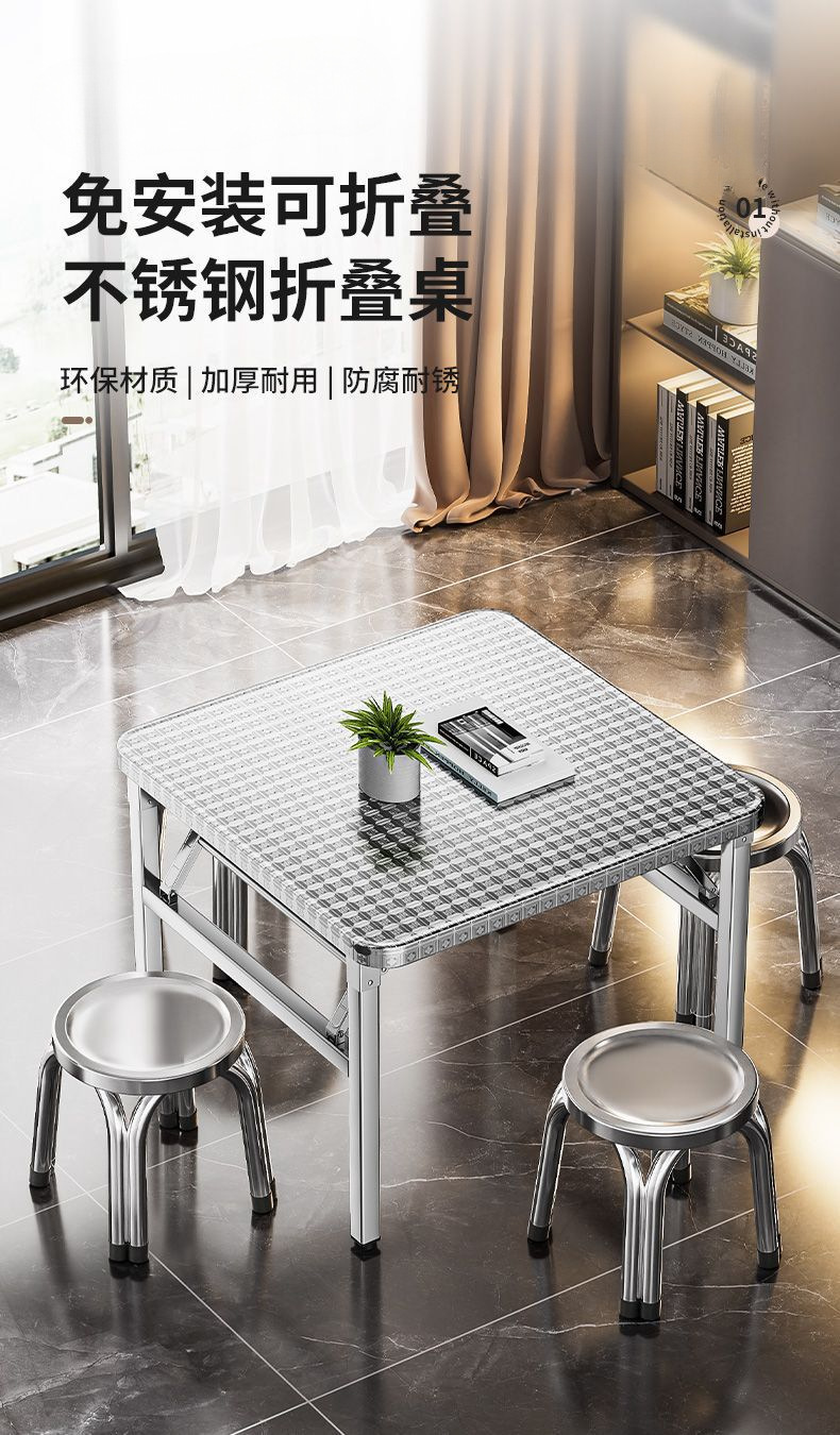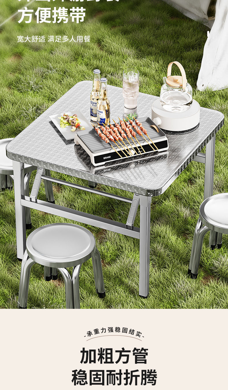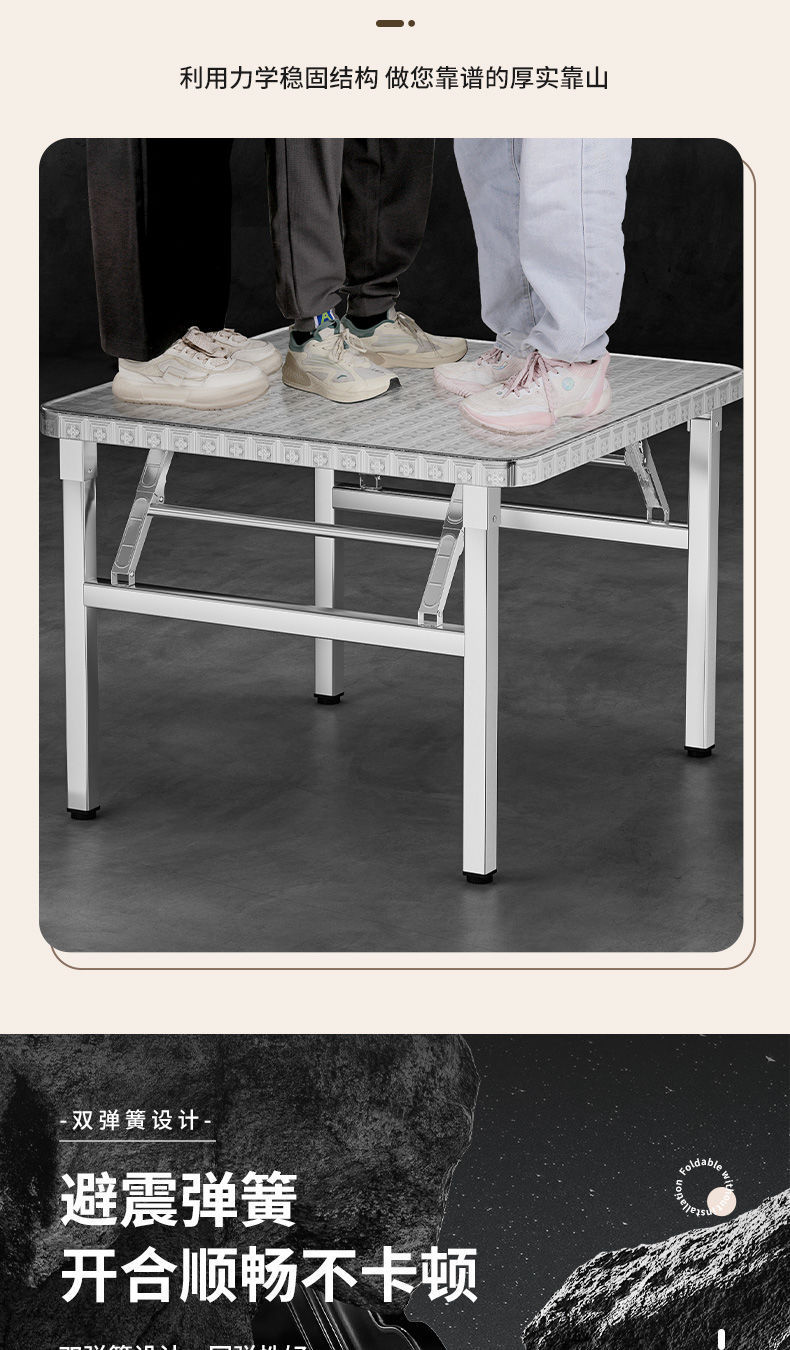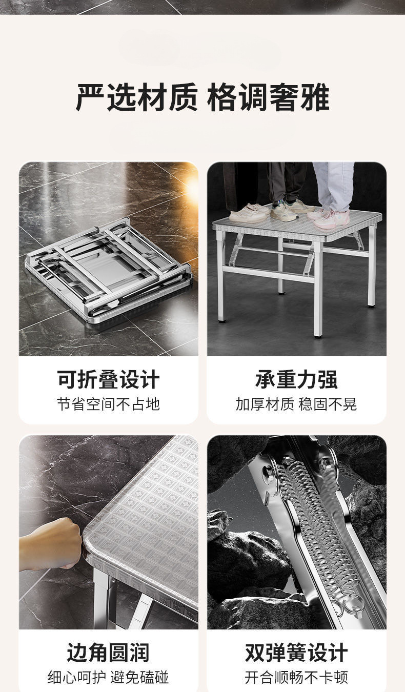 야외 임대 주택 캔틴 테이블 휴대용 두꺼운 스테인레스 스틸 접이식 테이블 사각형 학습 쓰기 스톨 테이블스토어 가기