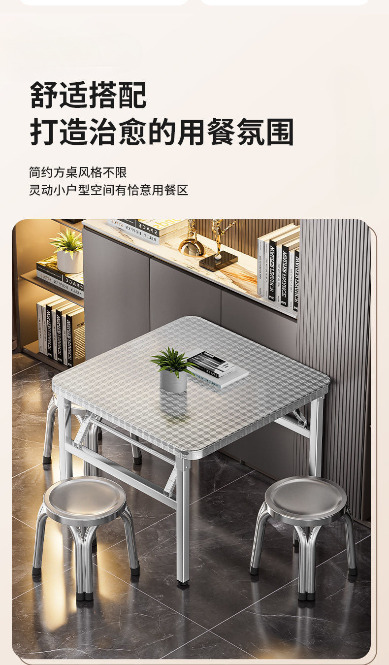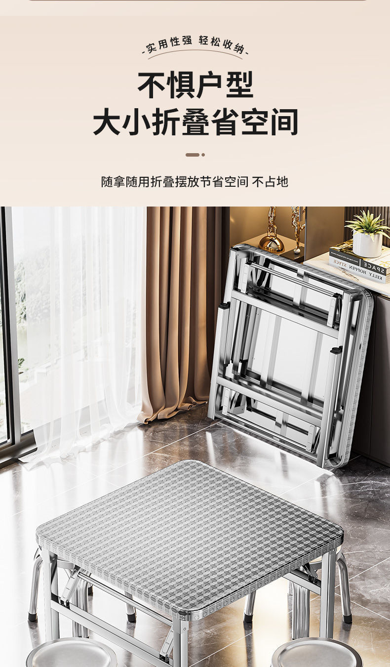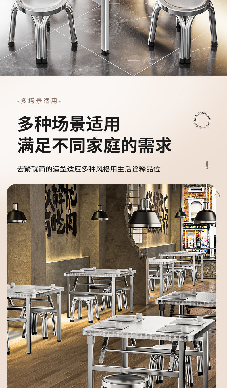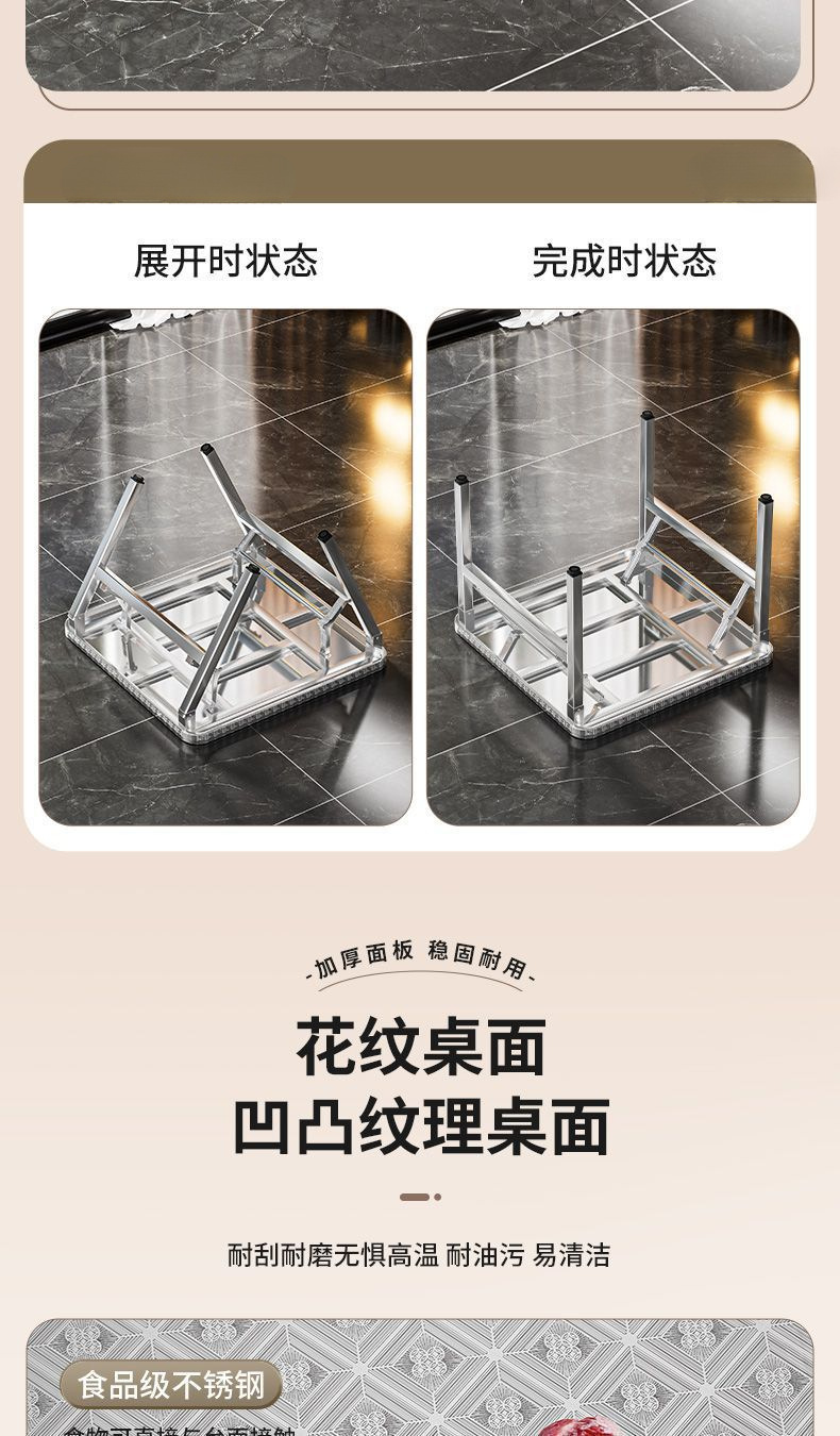 야외 임대 주택 캔틴 테이블 휴대용 두꺼운 스테인레스 스틸 접이식 테이블 사각형 학습 쓰기 스톨 테이블스토어 가기