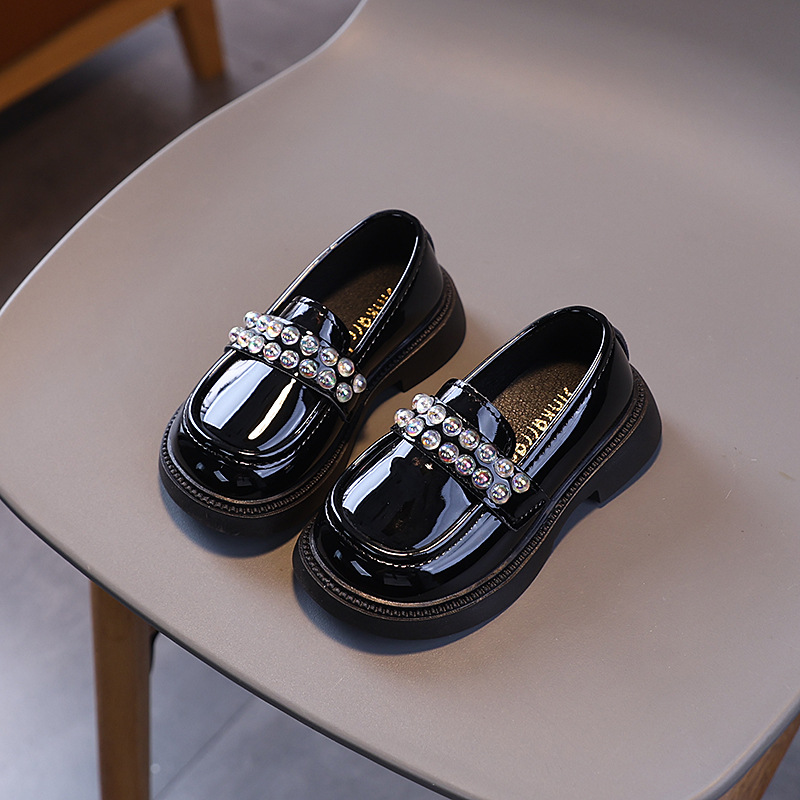 여자 검은 특허 가죽 영국 스타일 가죽 신발 2025 한국어 버전 가을 새로운 스타일 라인 석 공주 신발 복고풍 신발