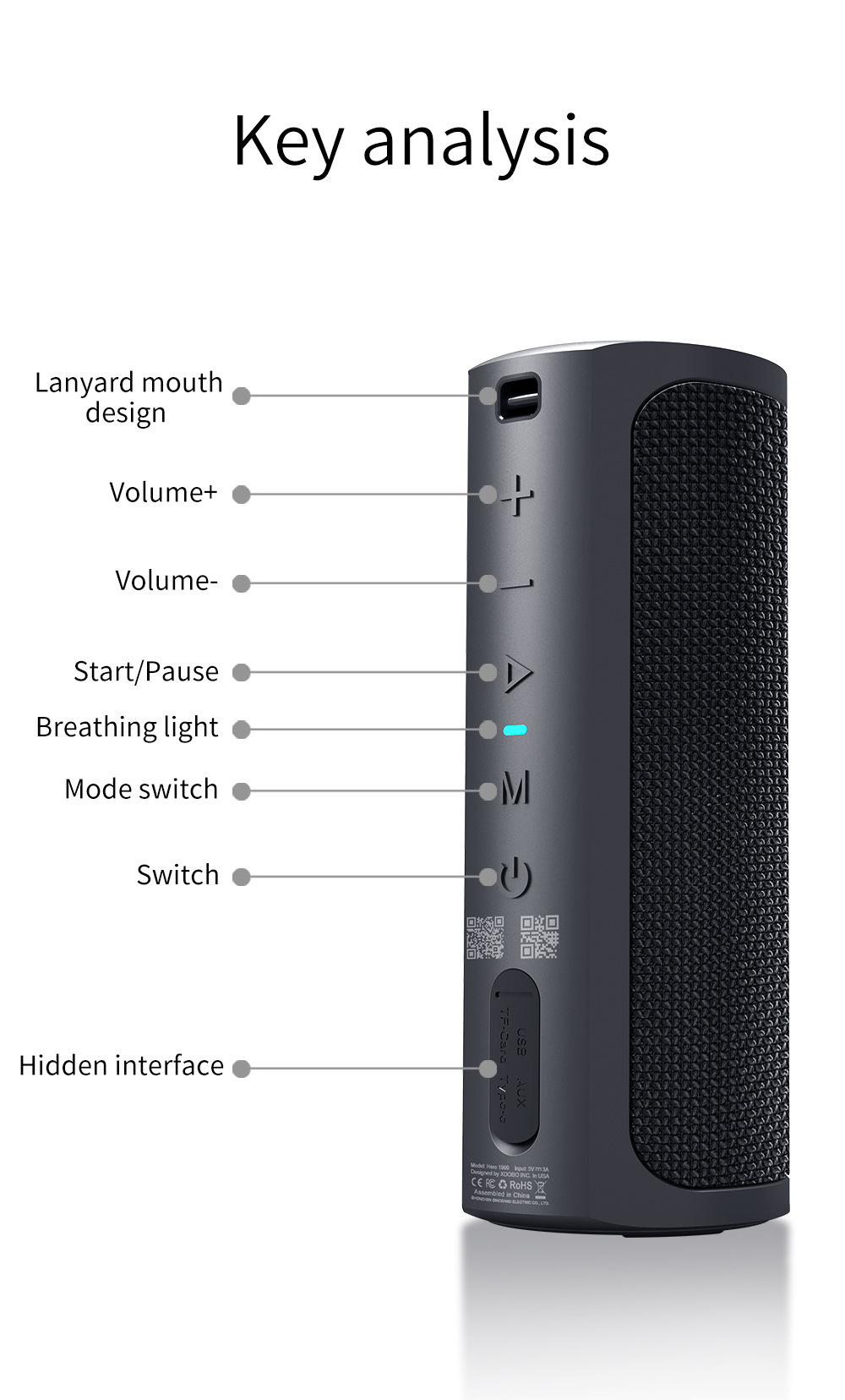 XDOBO Bluetooth 스피커 Hero 1999 휴대용 방수 50W 무선 고품질 서브우퍼 스피커