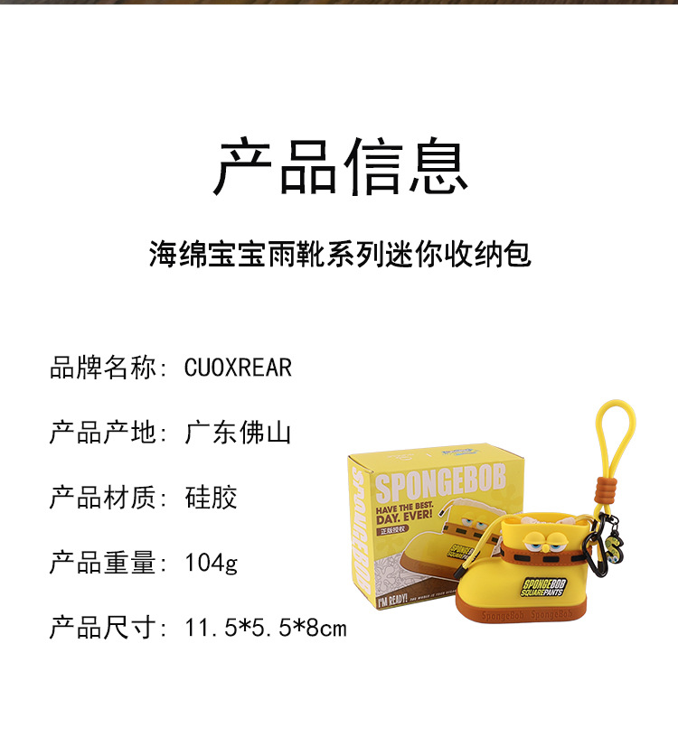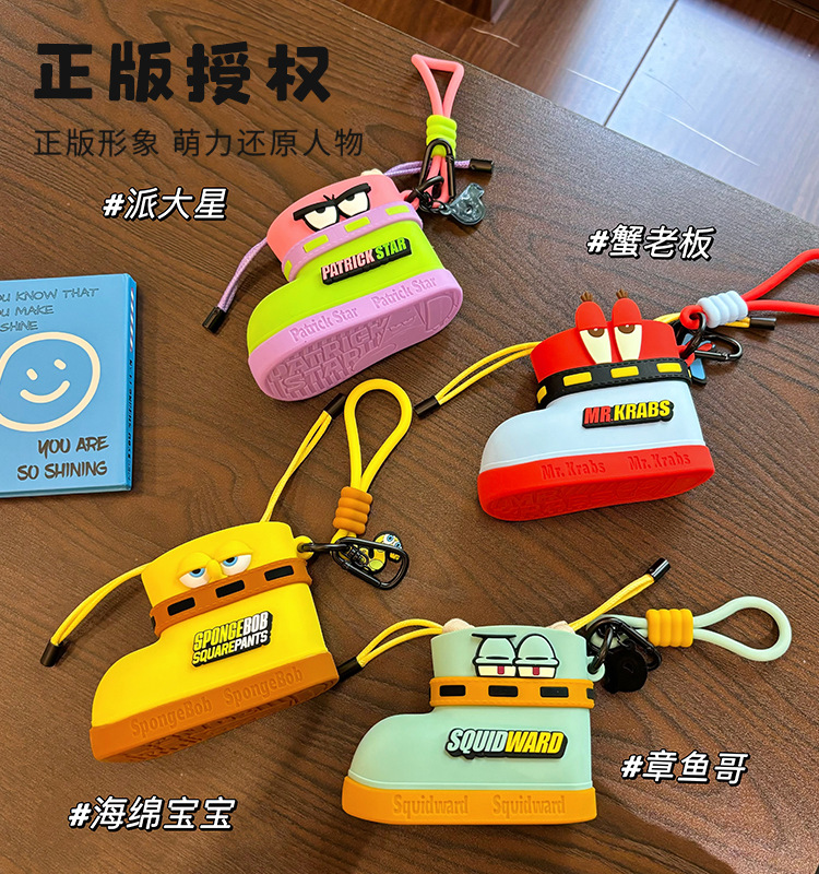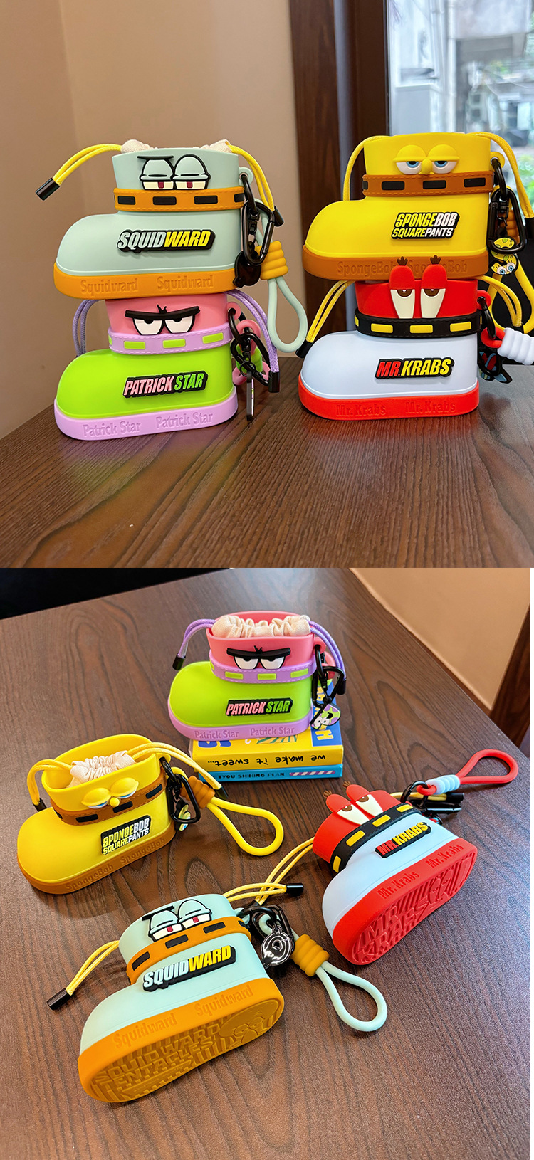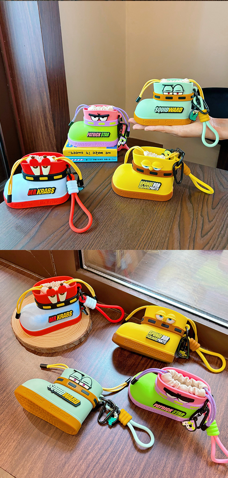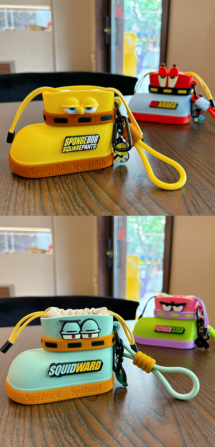 정품 스폰지 밥 레인부츠 동전 지갑 헤드폰 미니 보관 가방 어린이 만화 스타 백 펜던트스토어 가기