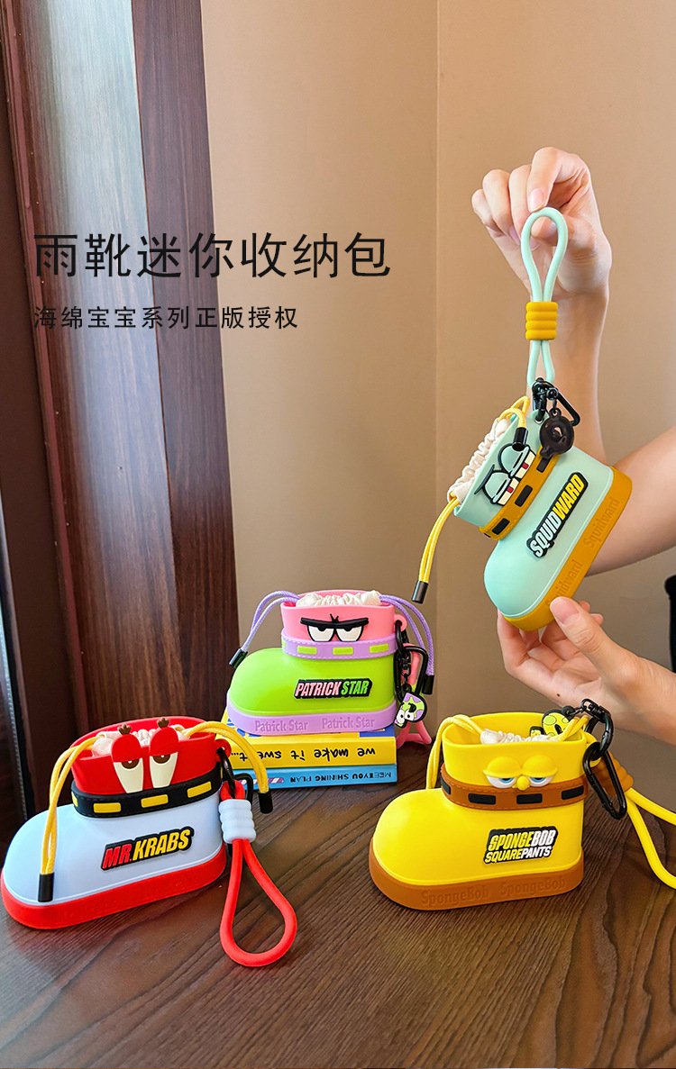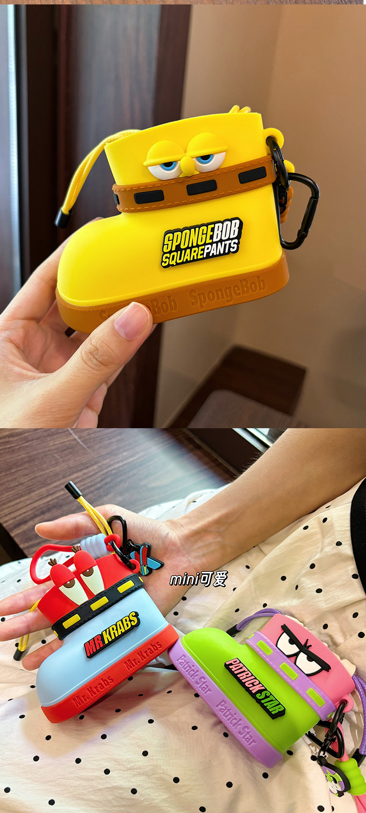 정품 스폰지 밥 레인부츠 동전 지갑 헤드폰 미니 보관 가방 어린이 만화 스타 백 펜던트
