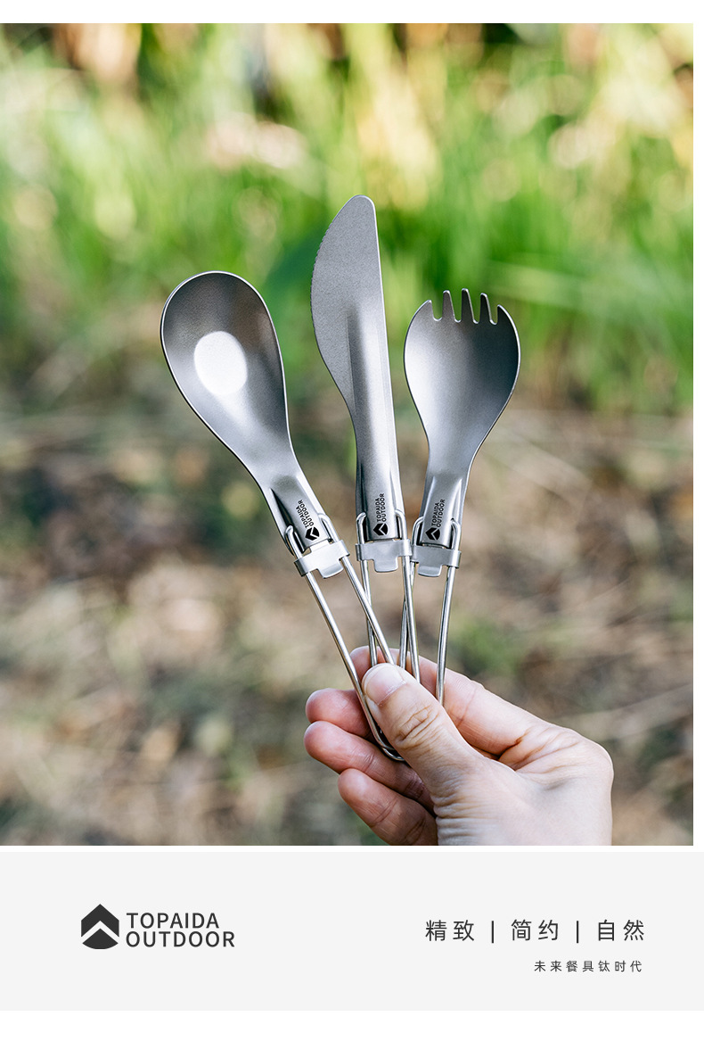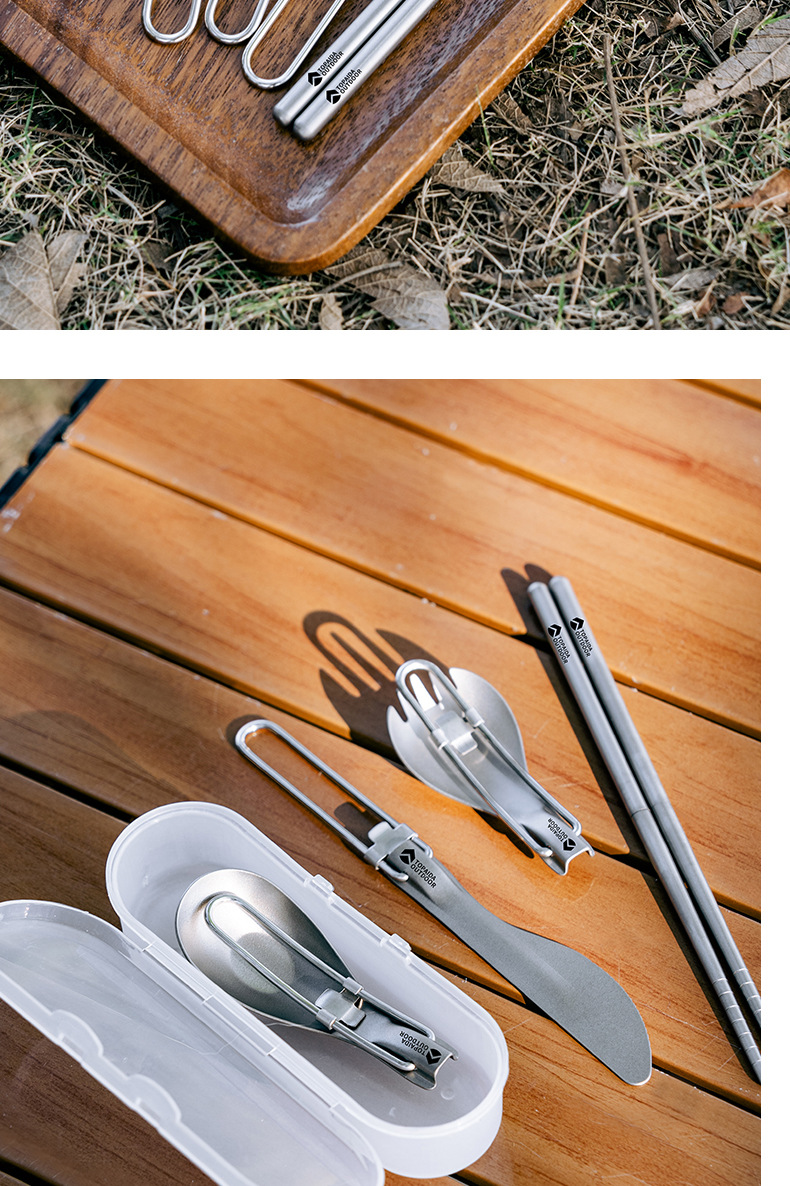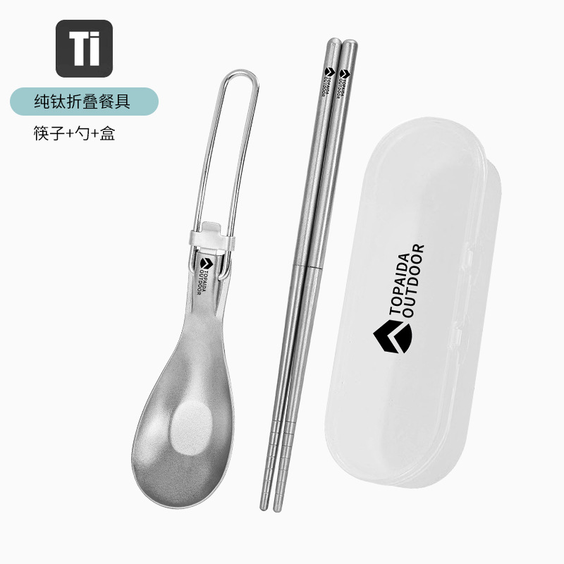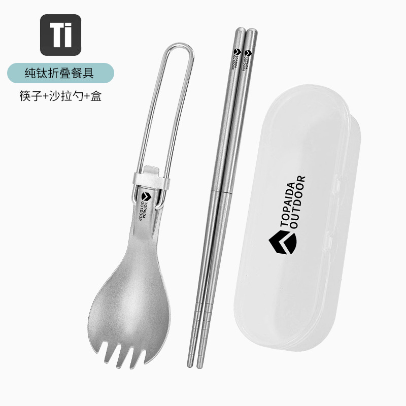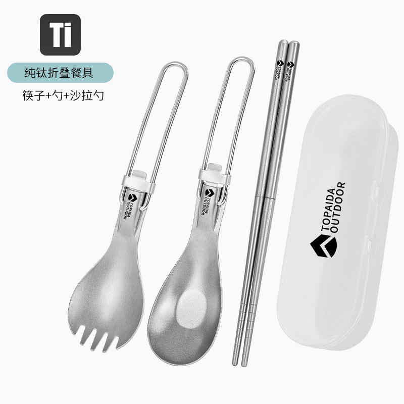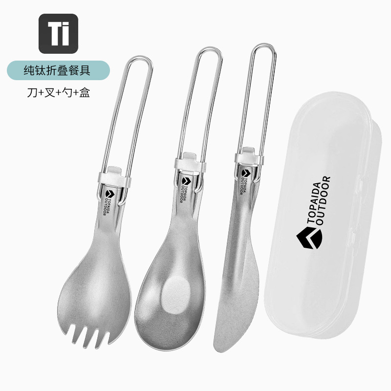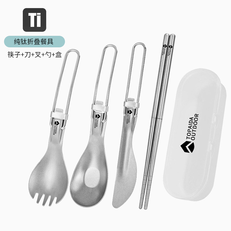 야외 순수 티타늄 접이식 칼, 포크, 스푼 및 젓가락 캠핑 스푼 휴대용 포크 티타늄 합금 스푼 피크닉 식기 세트스토어 가기