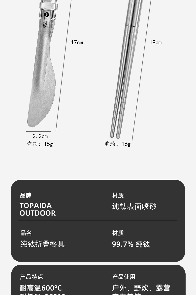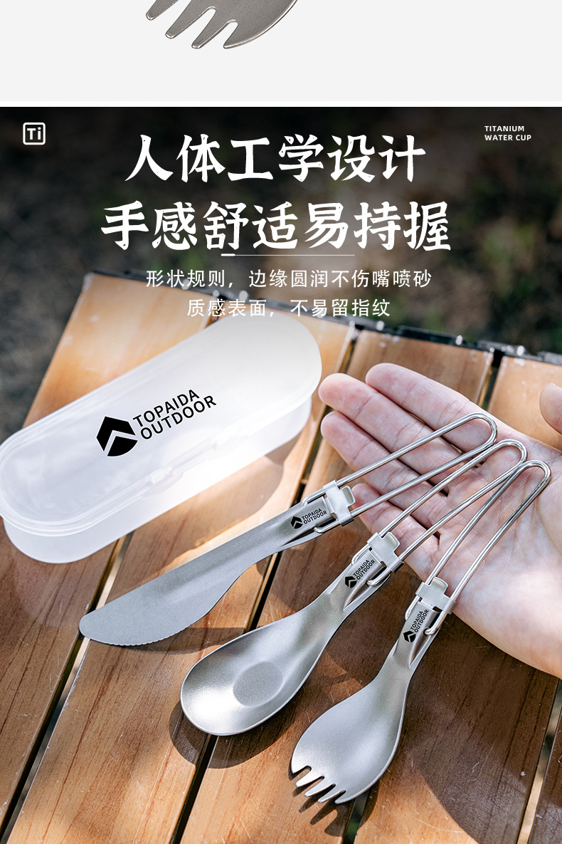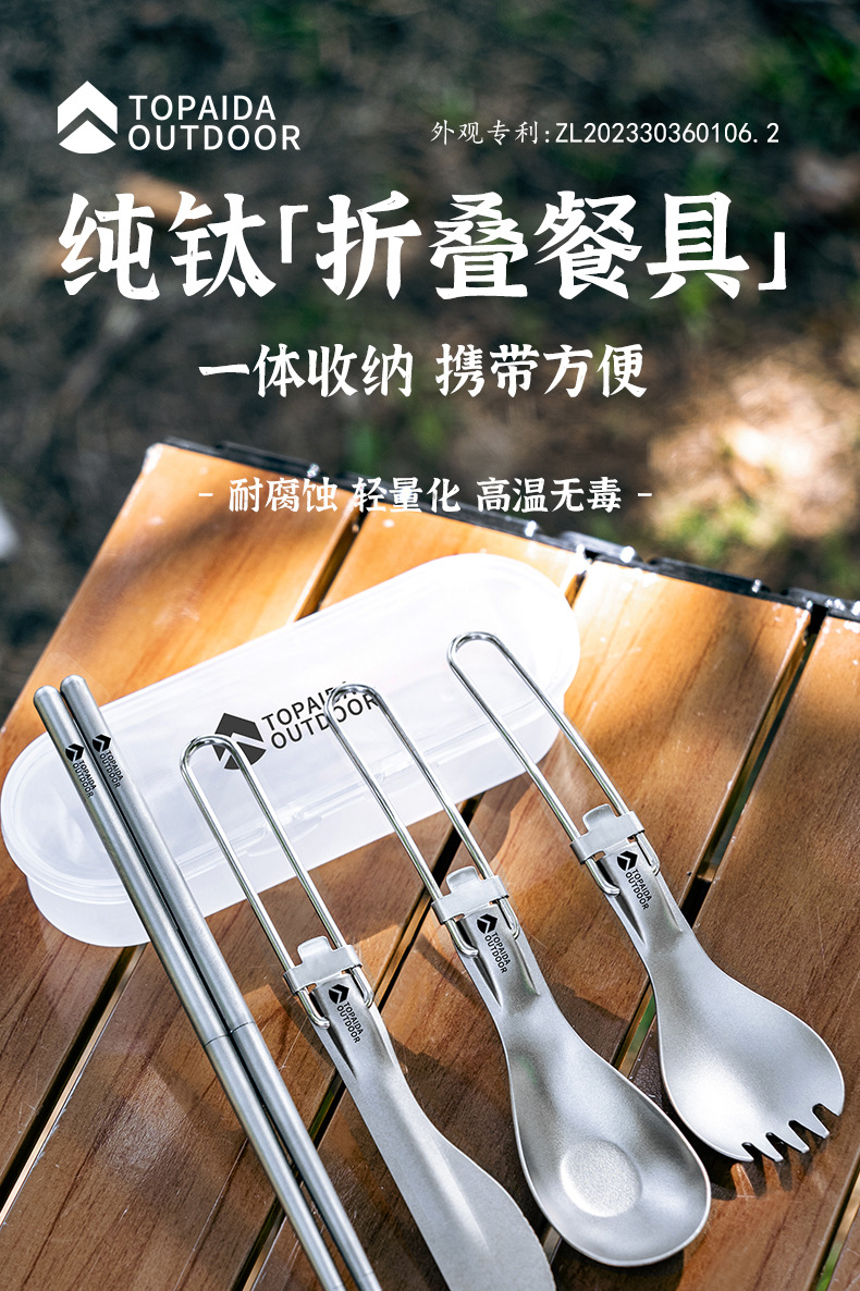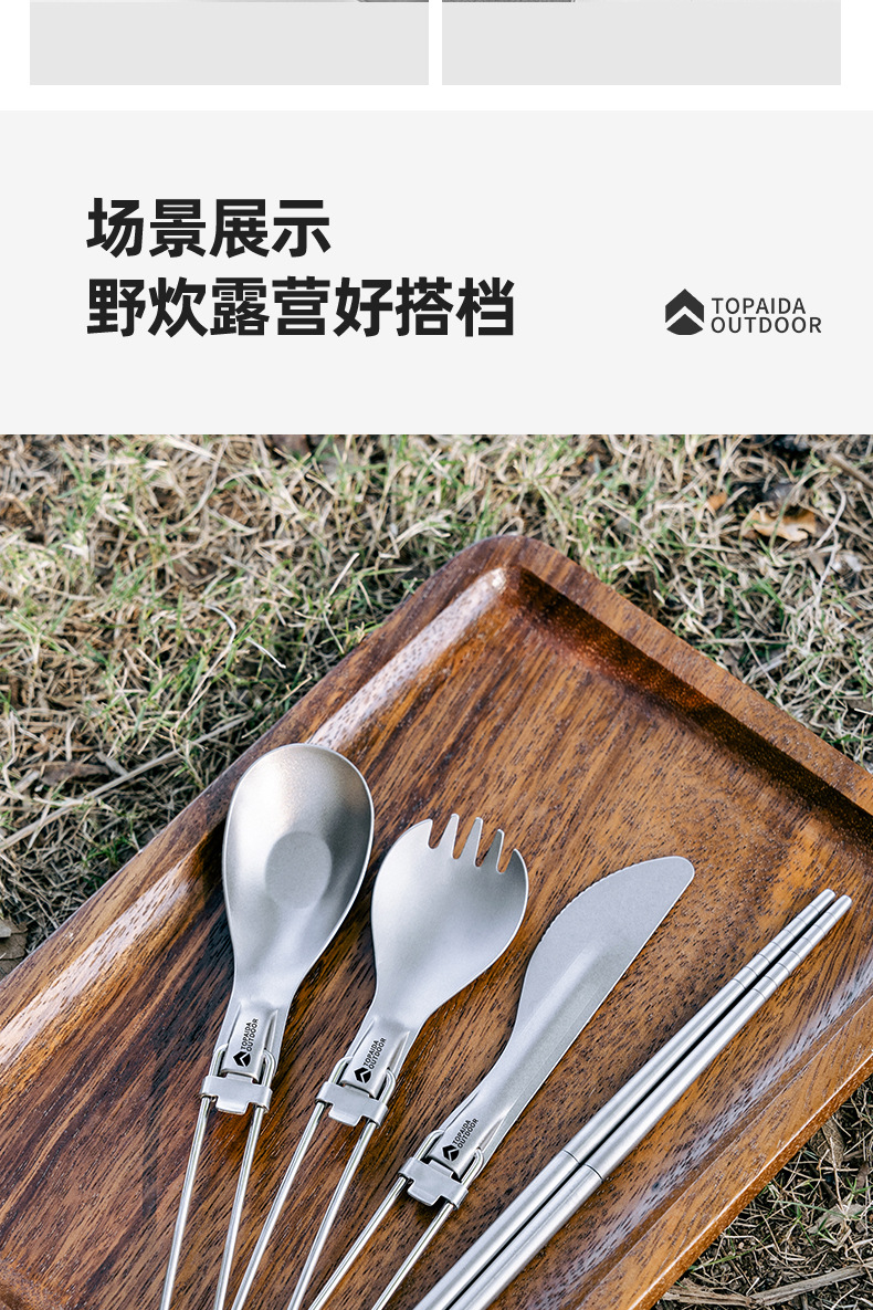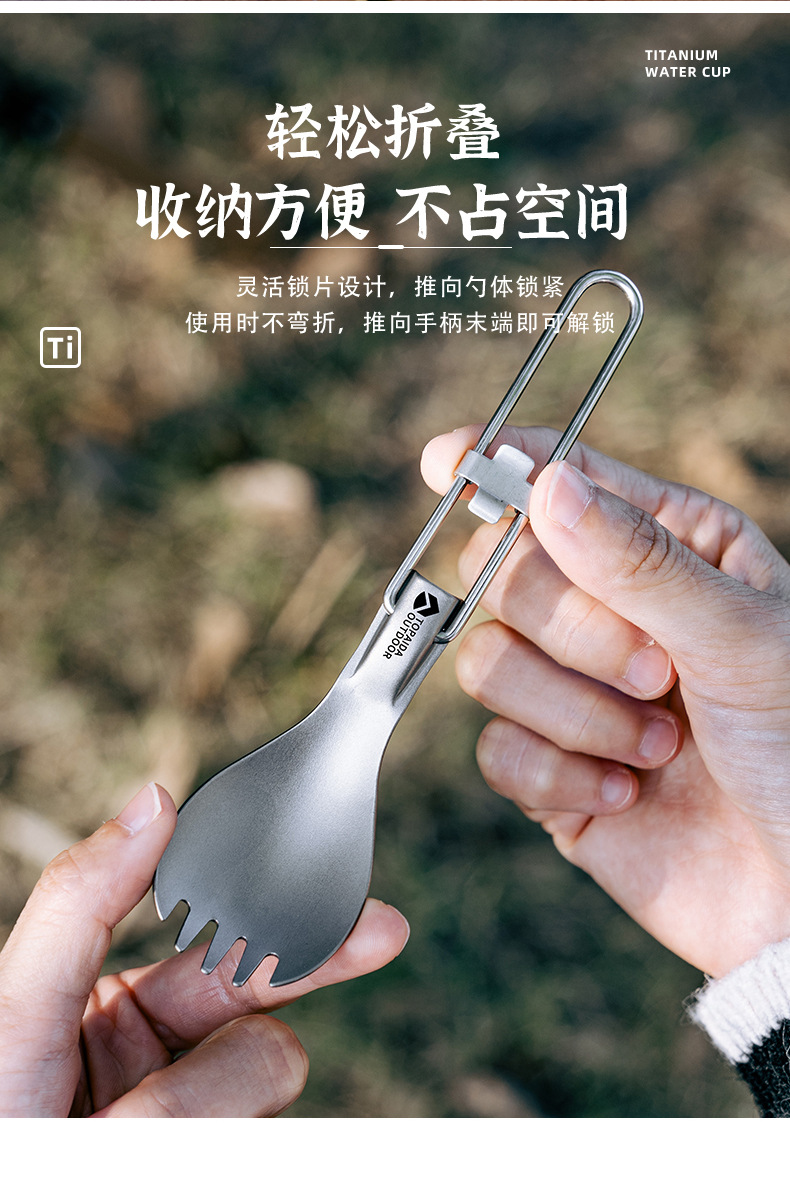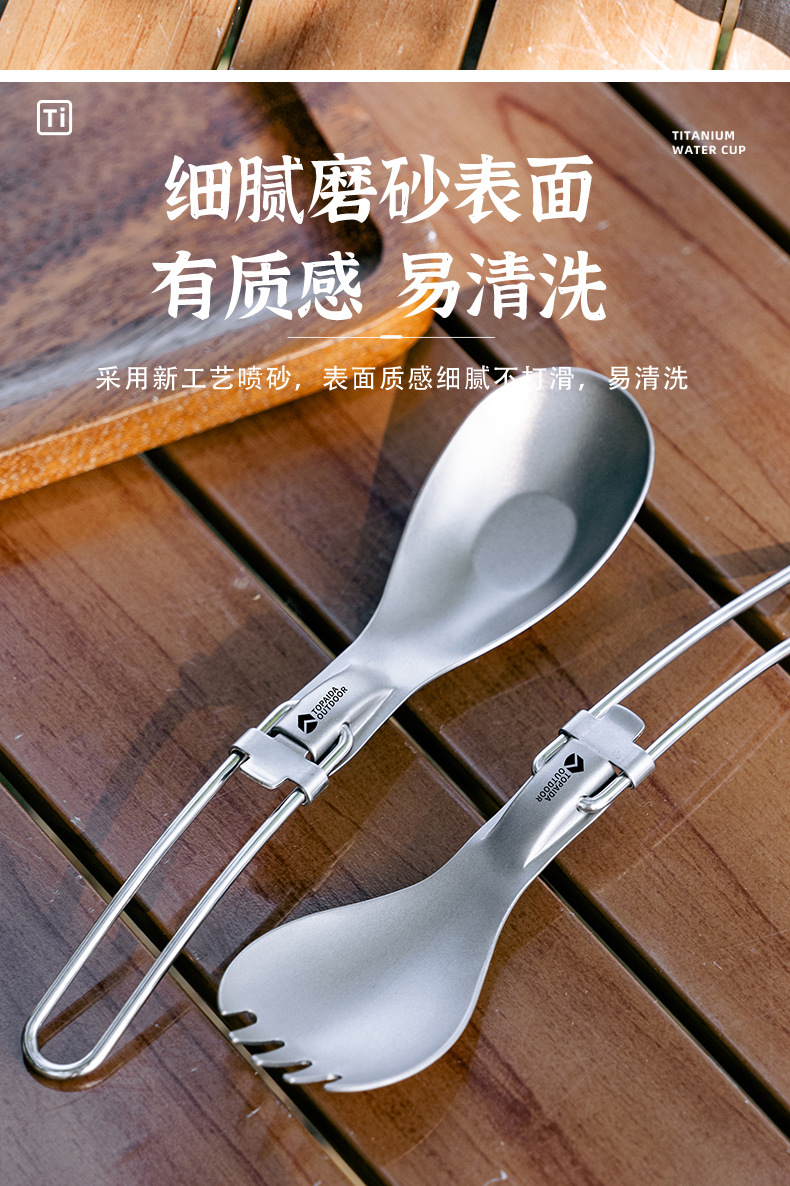 야외 순수 티타늄 접이식 칼, 포크, 스푼 및 젓가락 캠핑 스푼 휴대용 포크 티타늄 합금 스푼 피크닉 식기 세트스토어 가기