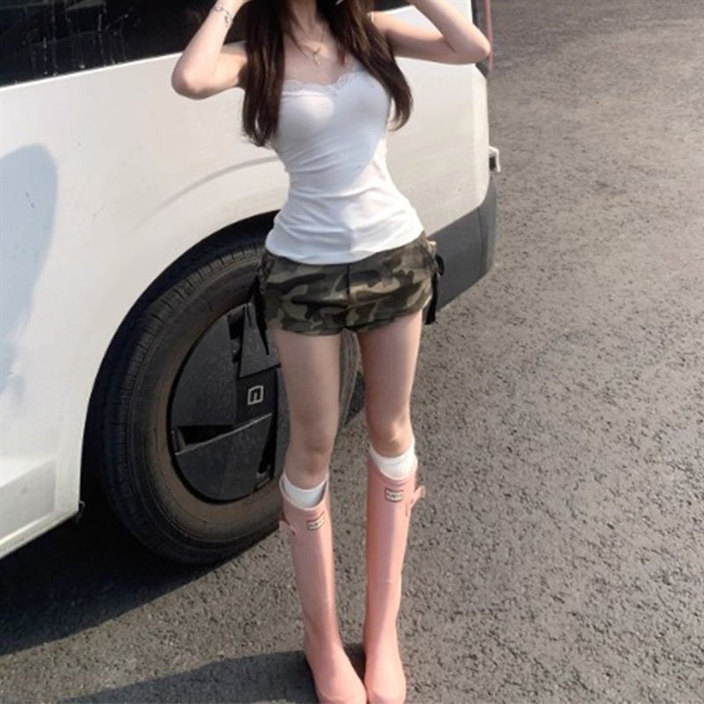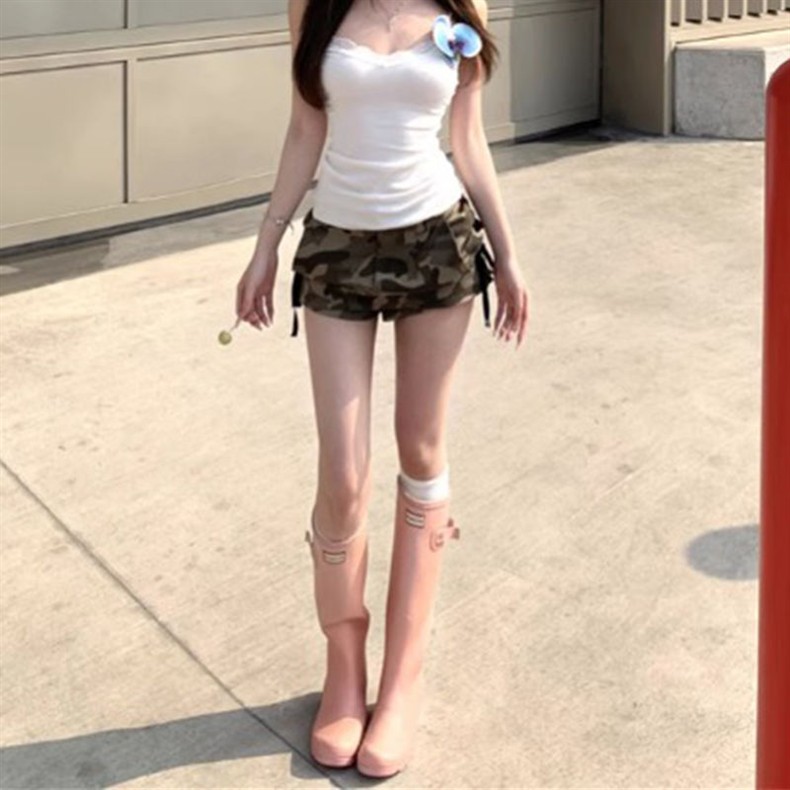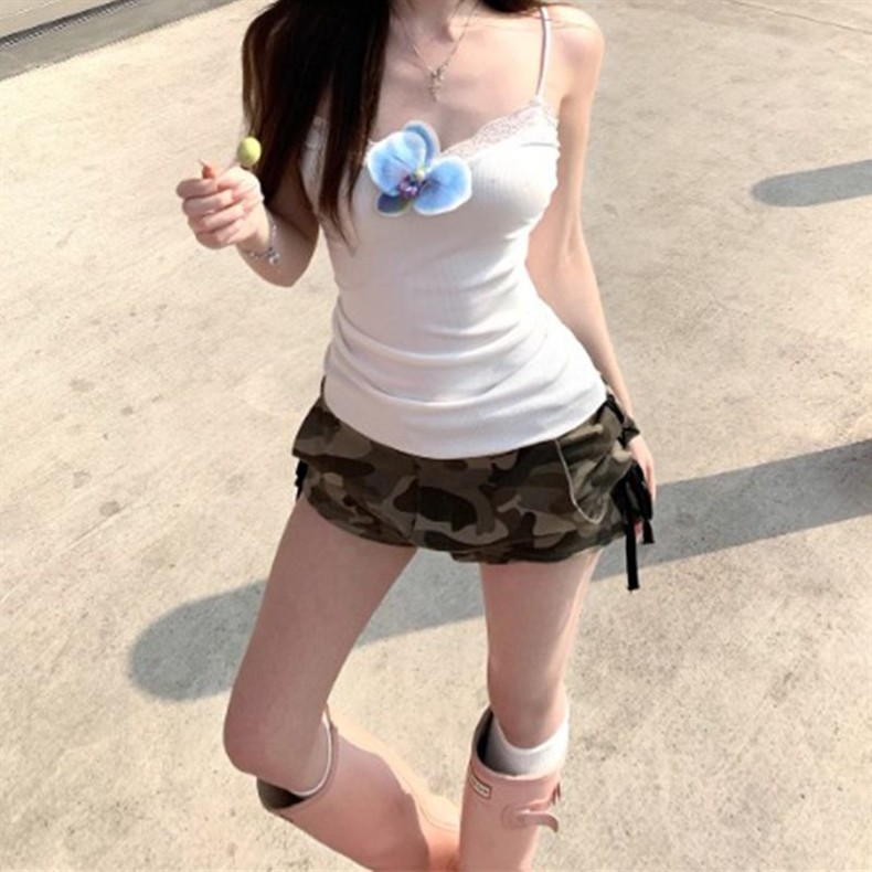 여성용 레트로 스타일 카무플라주 스트랩 스커트, 로우 웨이스트 A라인, 다용도, 슬리밍, 노출 방지, 핫걸 힙 커버 스커트, 트렌디한 짧은 스커트