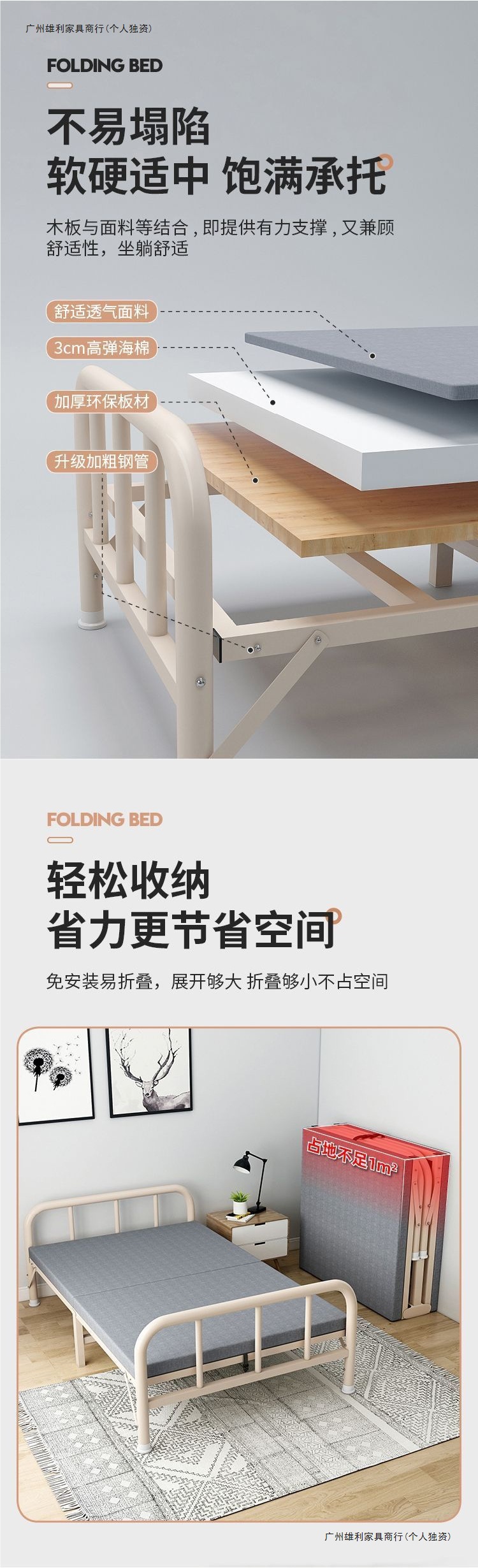 가정용 접이식 침대 싱글 침대 임대 집 철제 침대 사무실 점심 시간 낮잠 기숙사 간이 침대 작은 침대 나무 침대스토어 가기