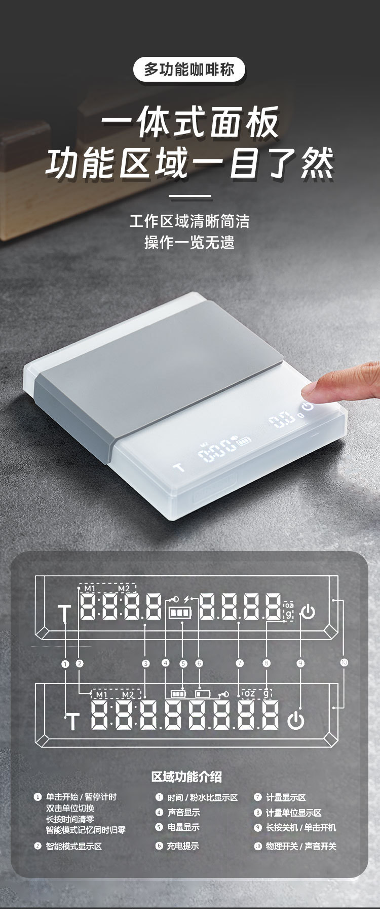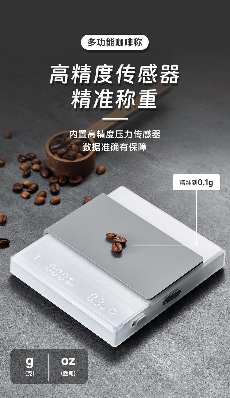 인스퍼레이션 전자저울, 핸드드립 이탈리안 커피 전용, 스마트 터치스크린 타이머 저울, 휴대용 충전식 로스팅 커피 저울