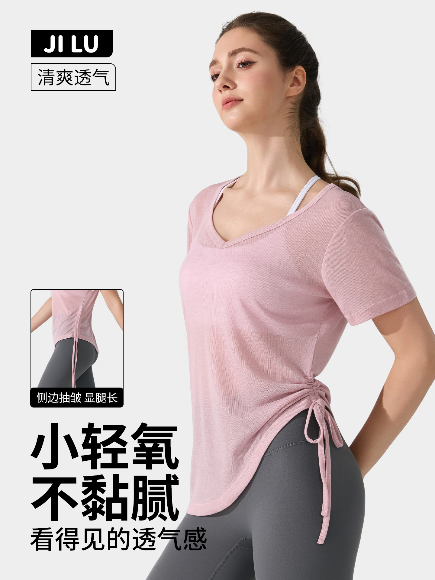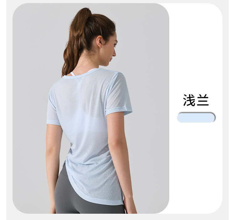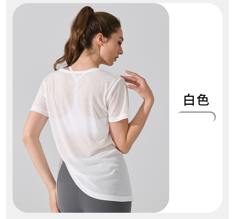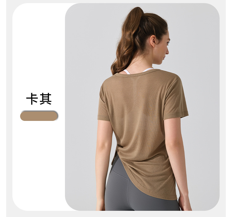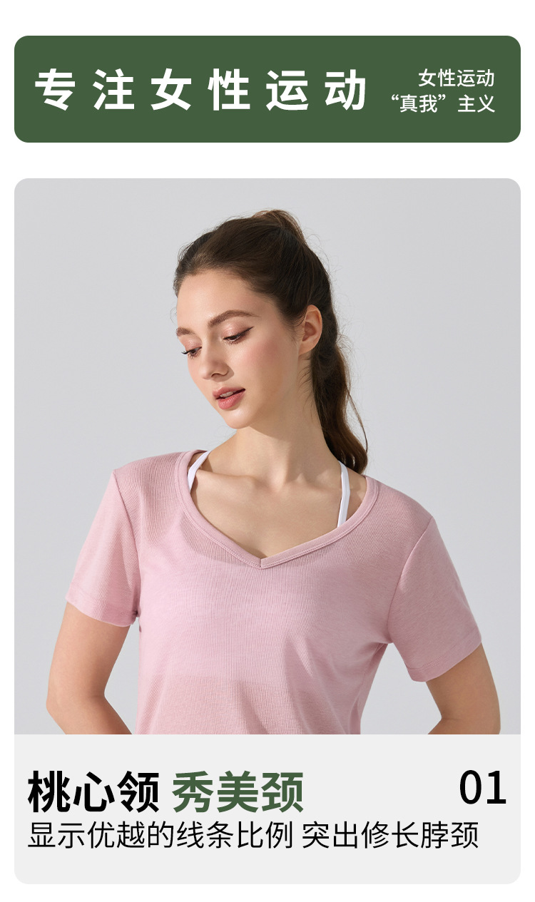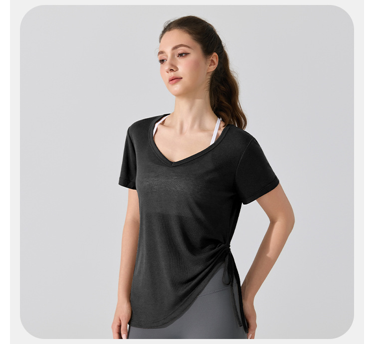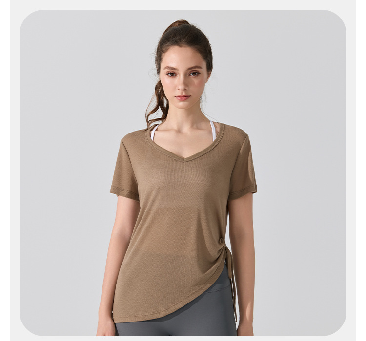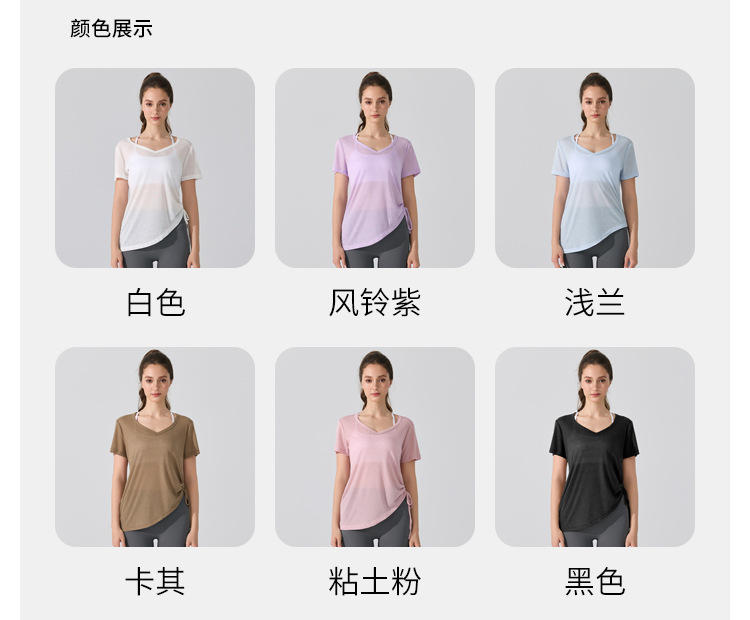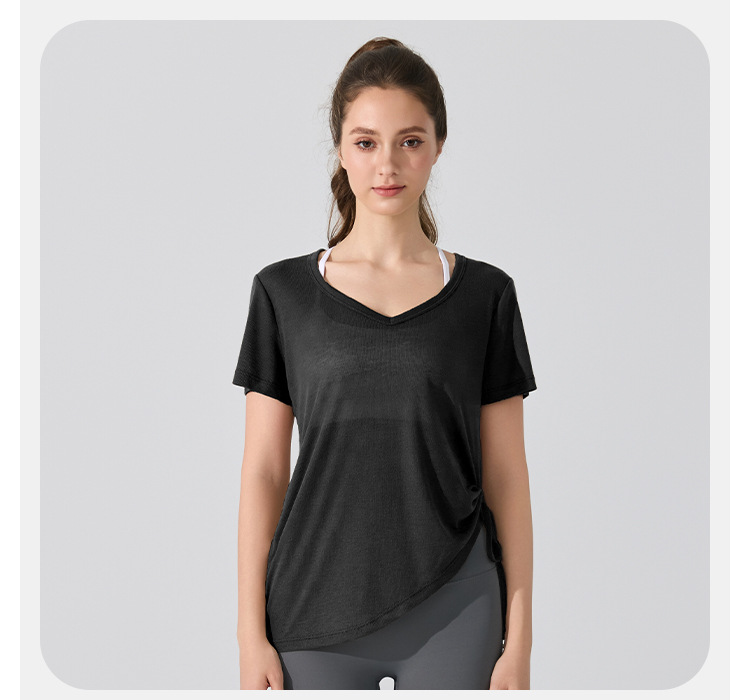 여름 브이넥 요가 커버업 반팔 엉덩이 커버 사이드 드로스트링 티셔츠 피트니스 런닝 루즈하고 통기성이 뛰어나며 속건성 요가복스토어 가기