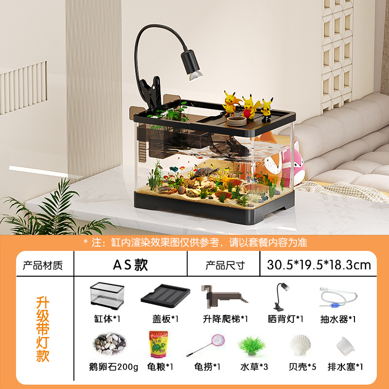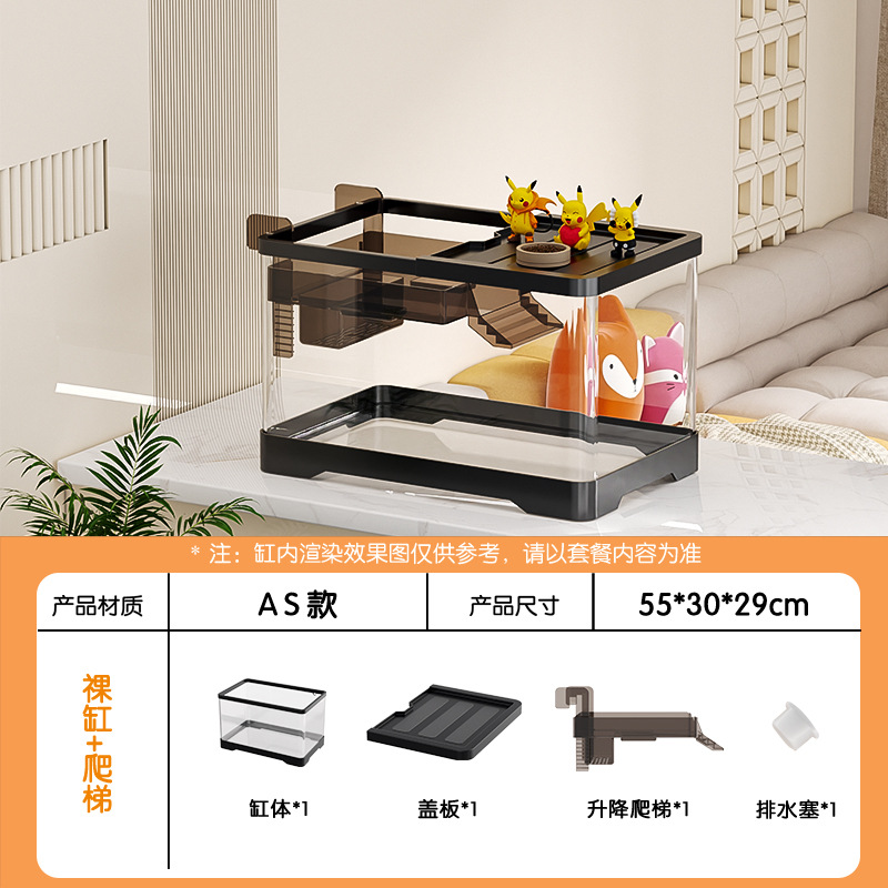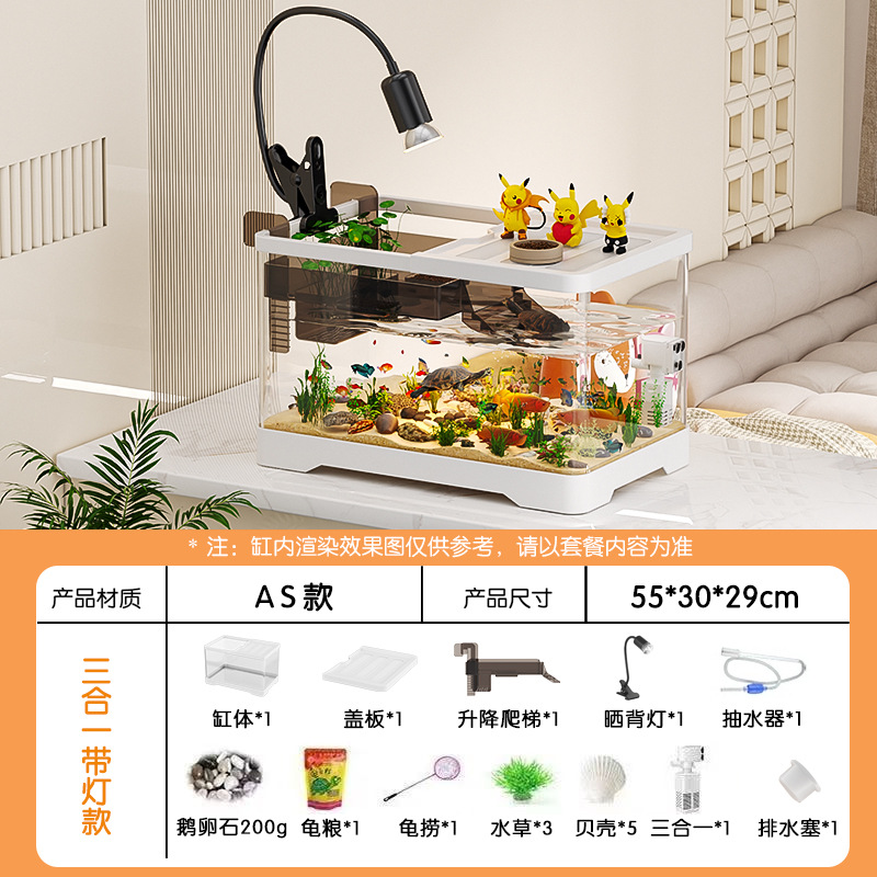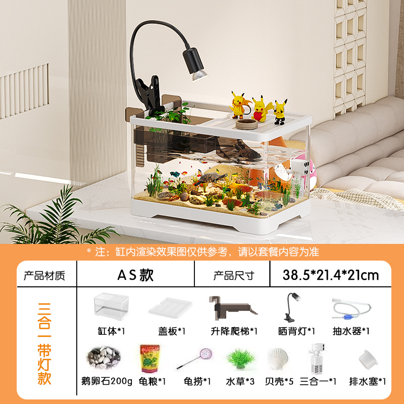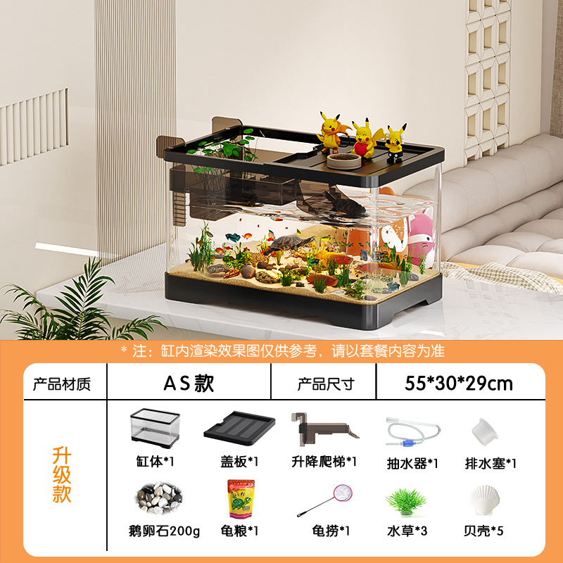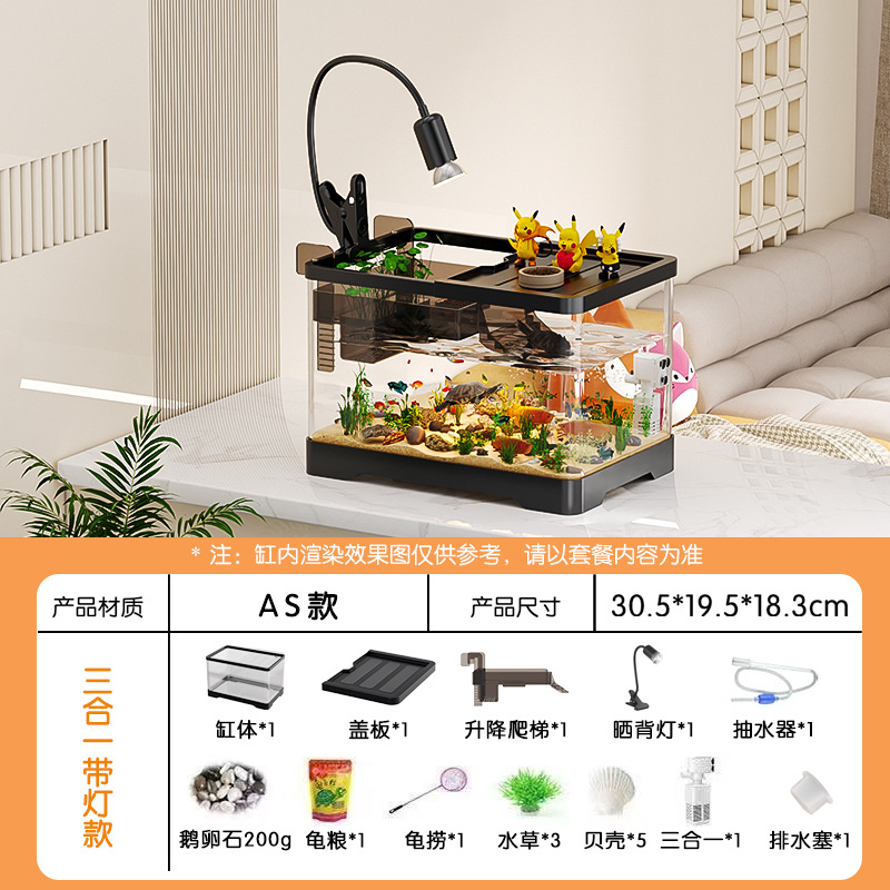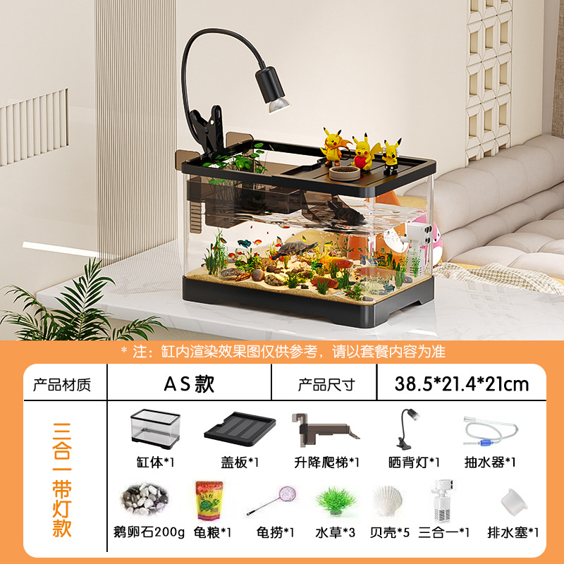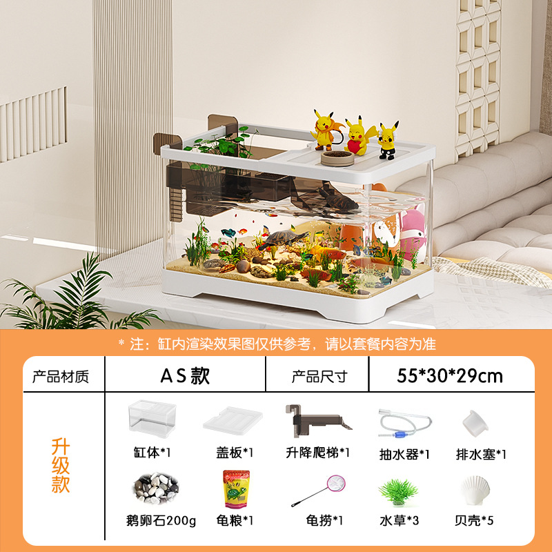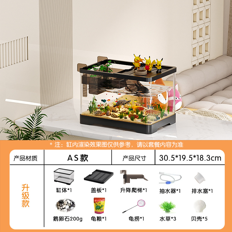 거실용 거북이 수조 수족관 탁상형 생태 조경 아크릴 어항 일체형 필터 포함 계류형 수조