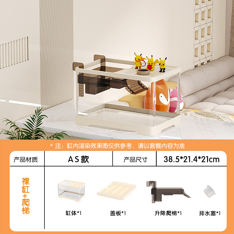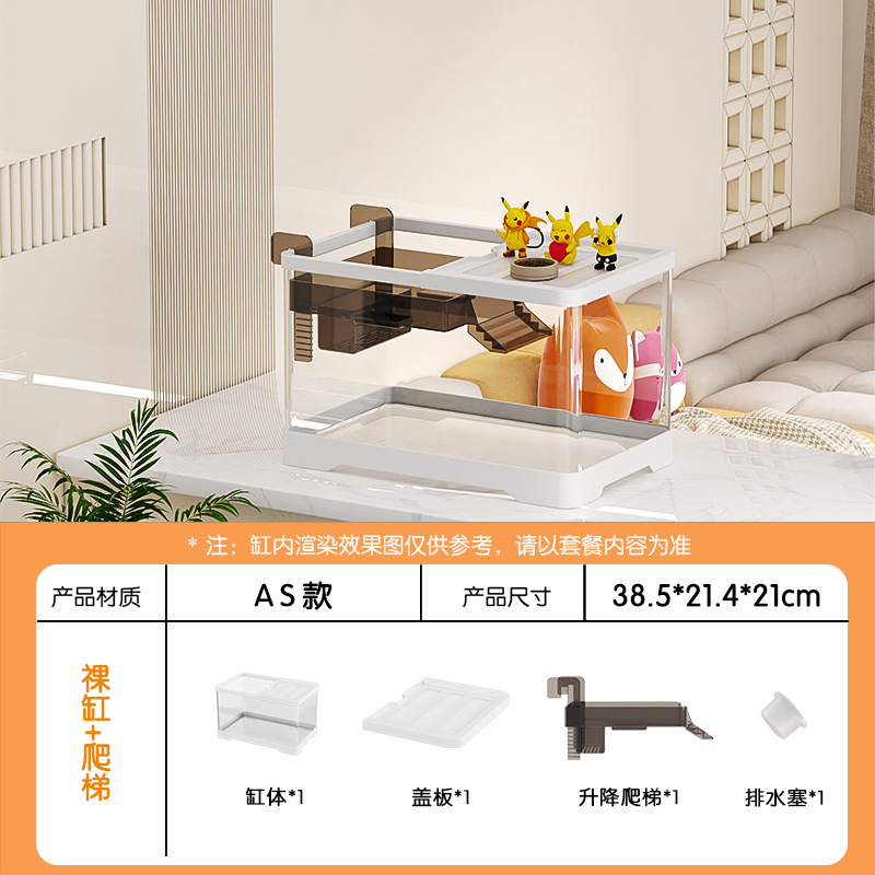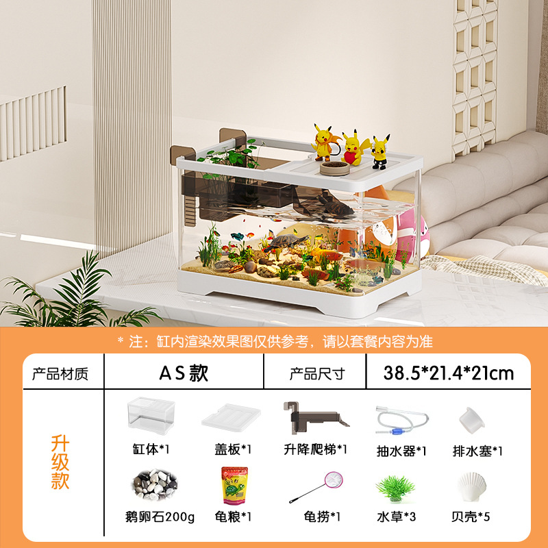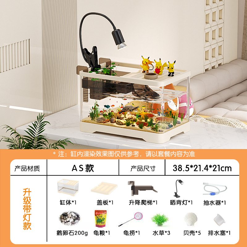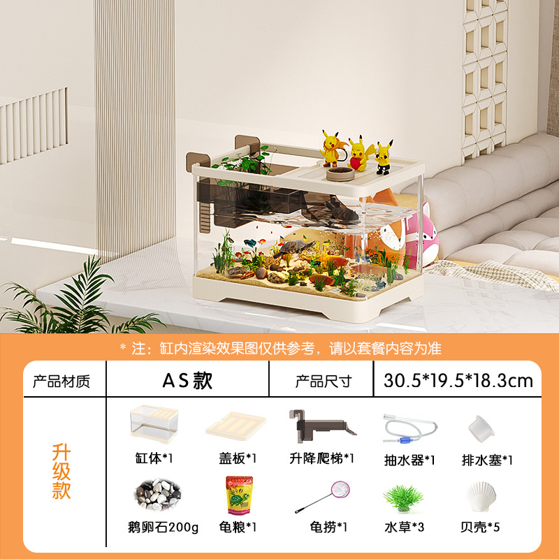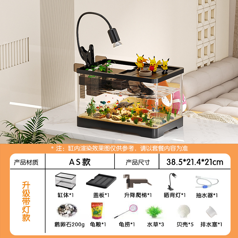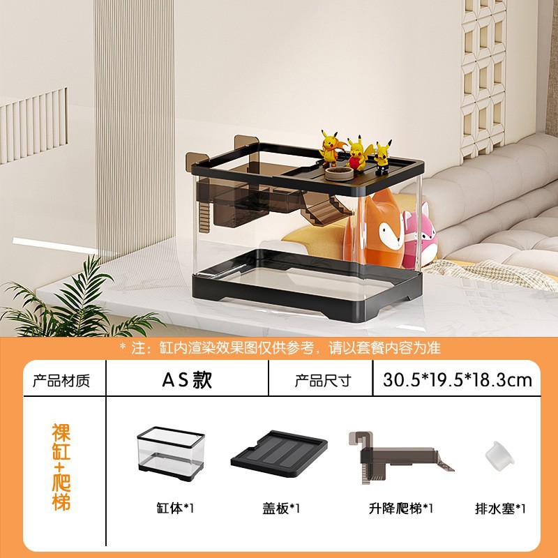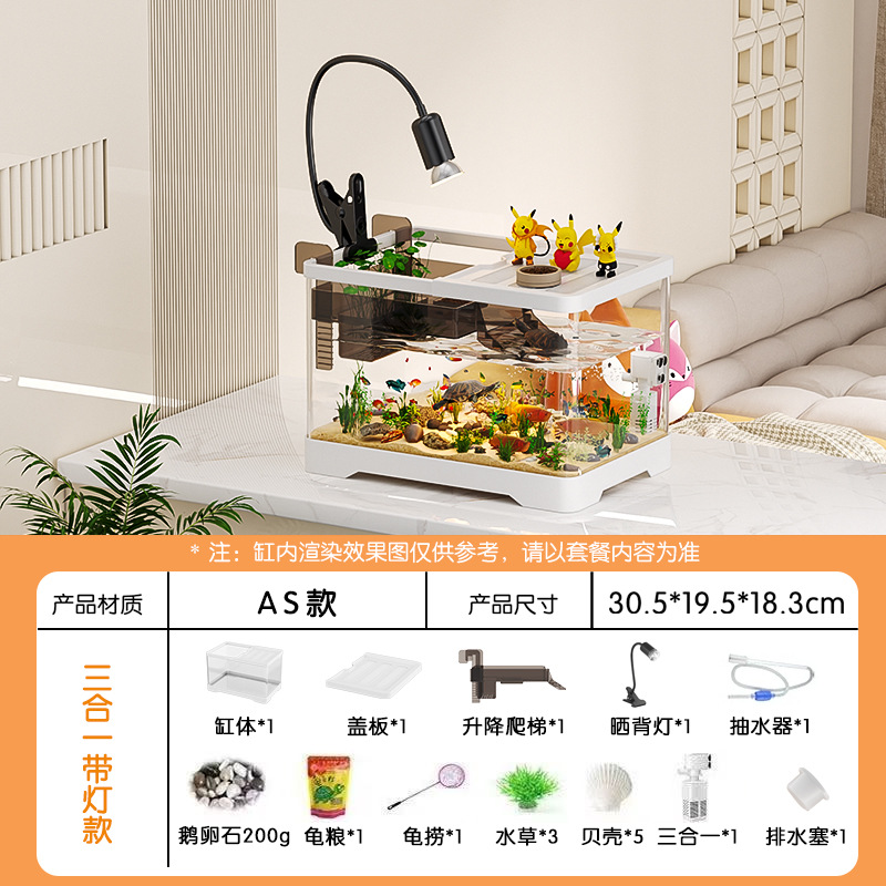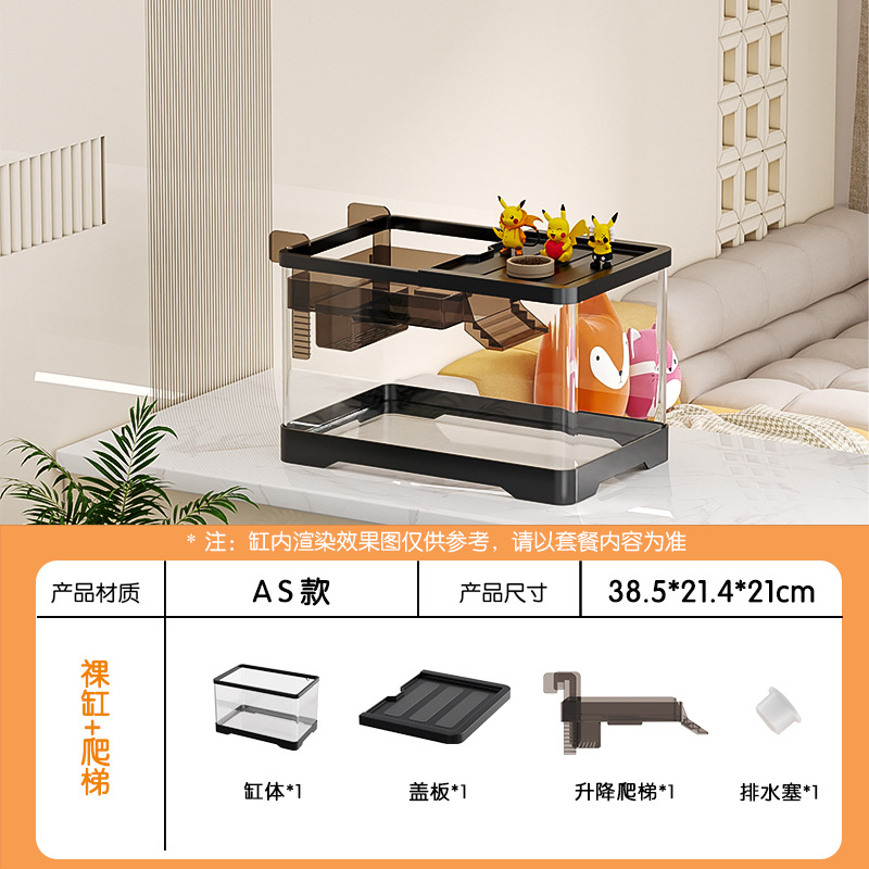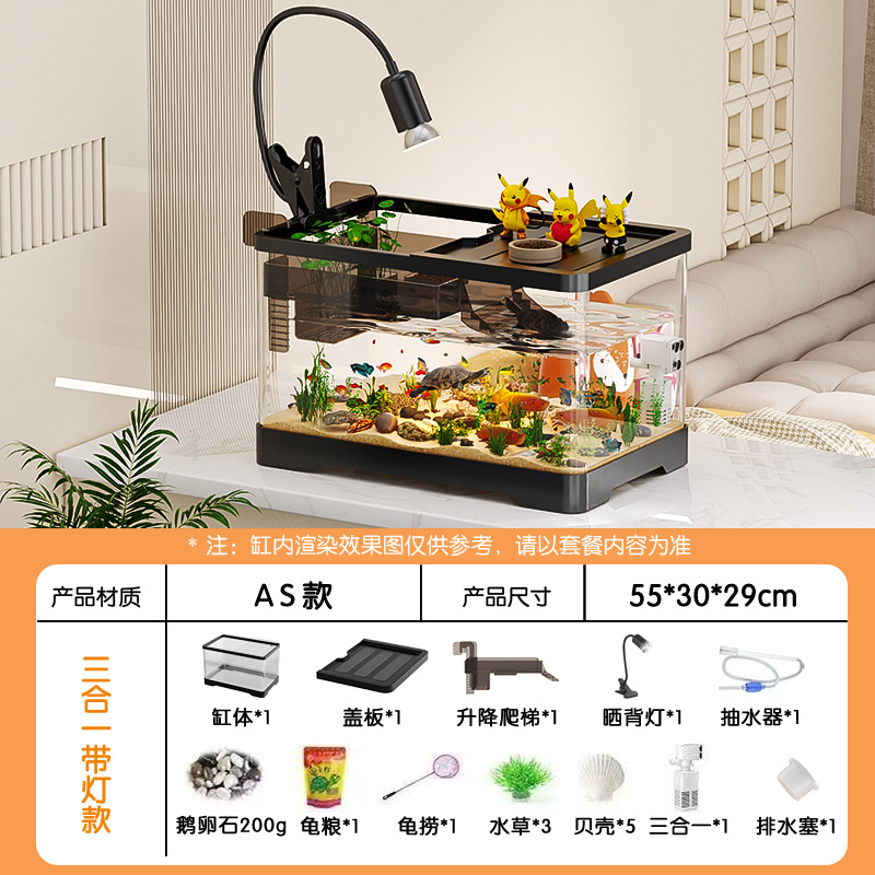 거실용 거북이 수조 수족관 탁상형 생태 조경 아크릴 어항 일체형 필터 포함 계류형 수조