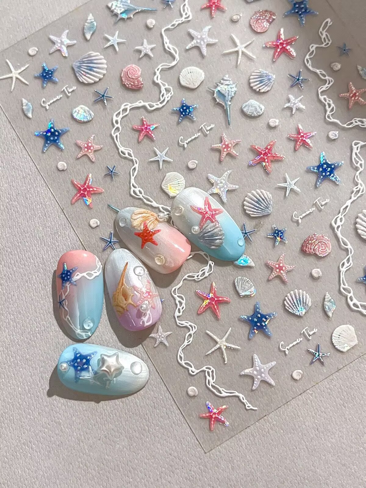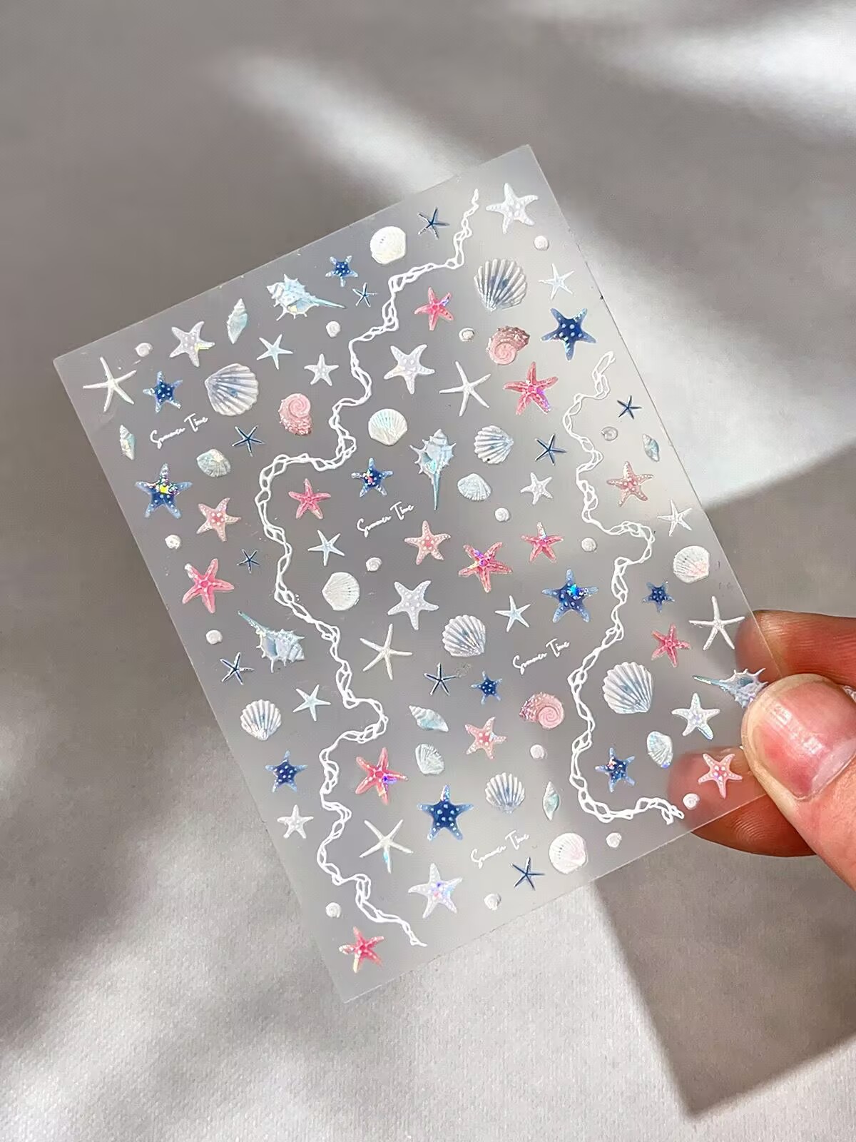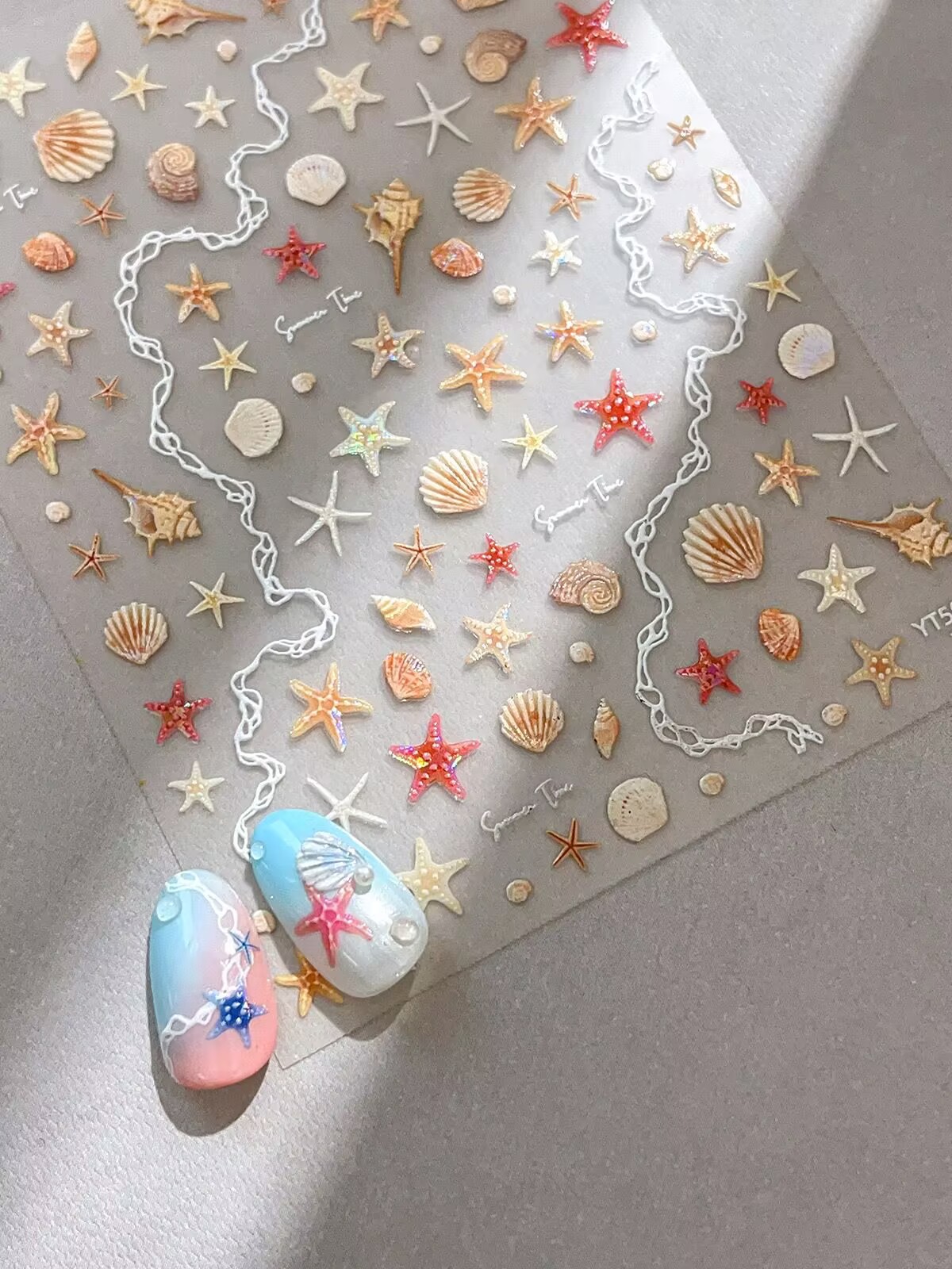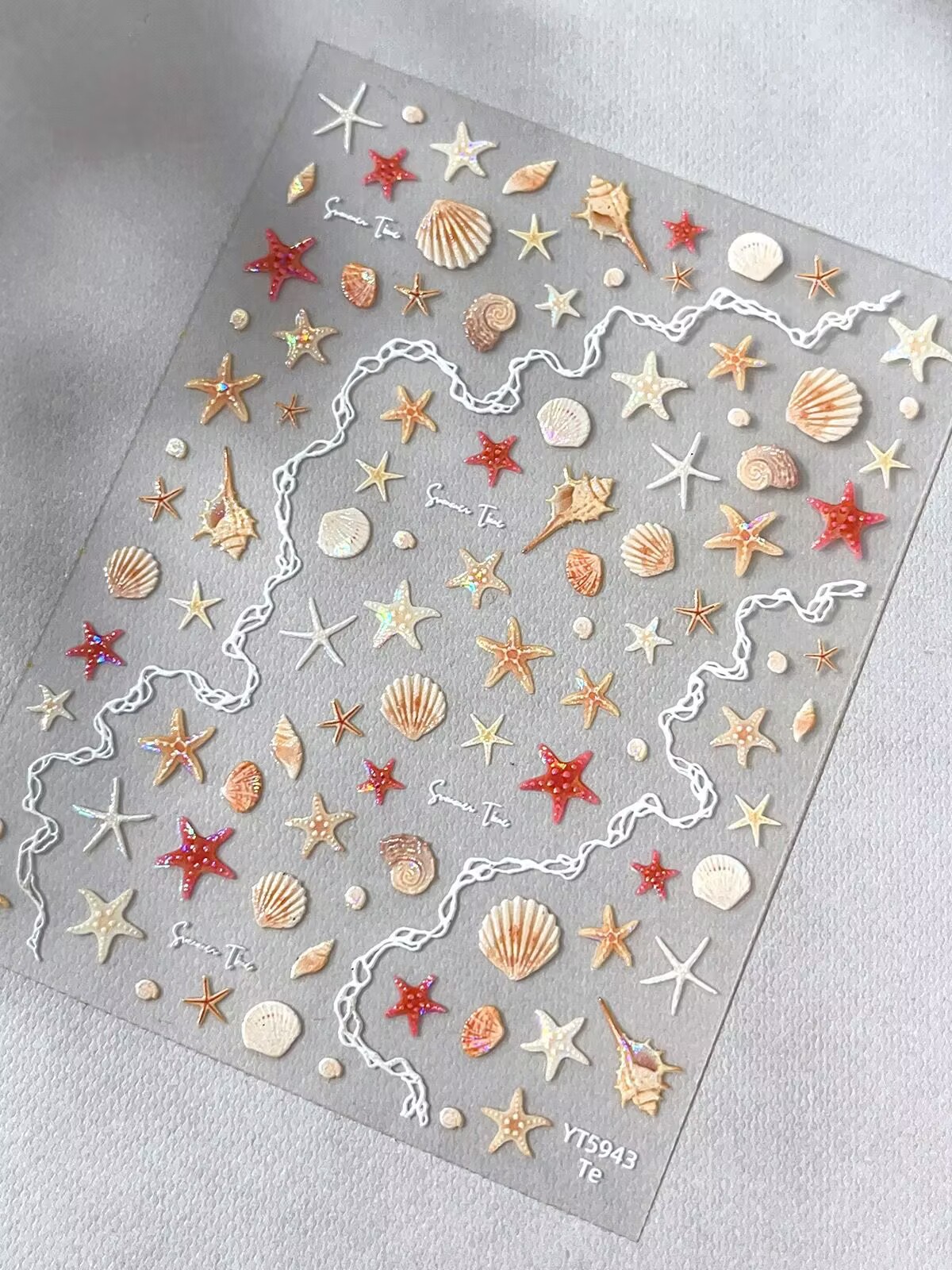 크로스보더 네일 아트 쉘 라이트 레트로 신선하고 다재다능한 ins 오션 쉘 스토리 불가사리 조가비 네일 스티커