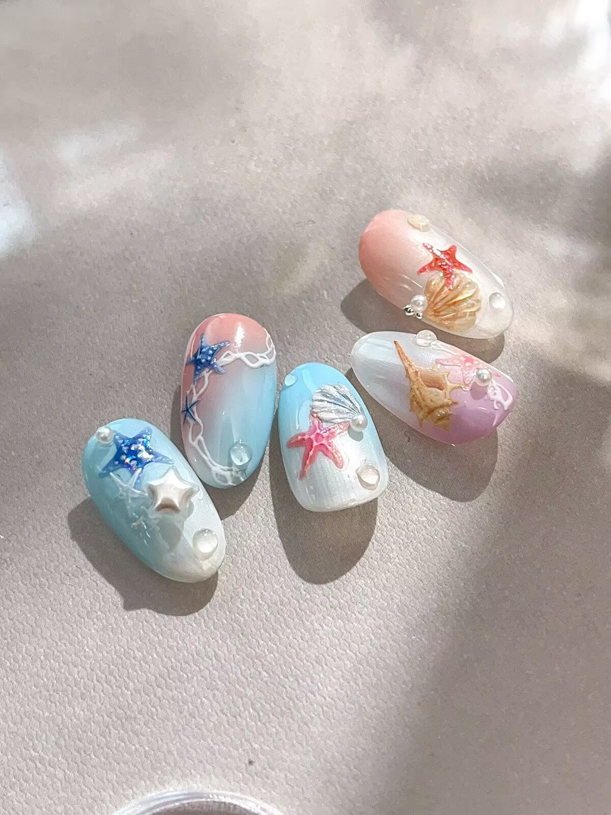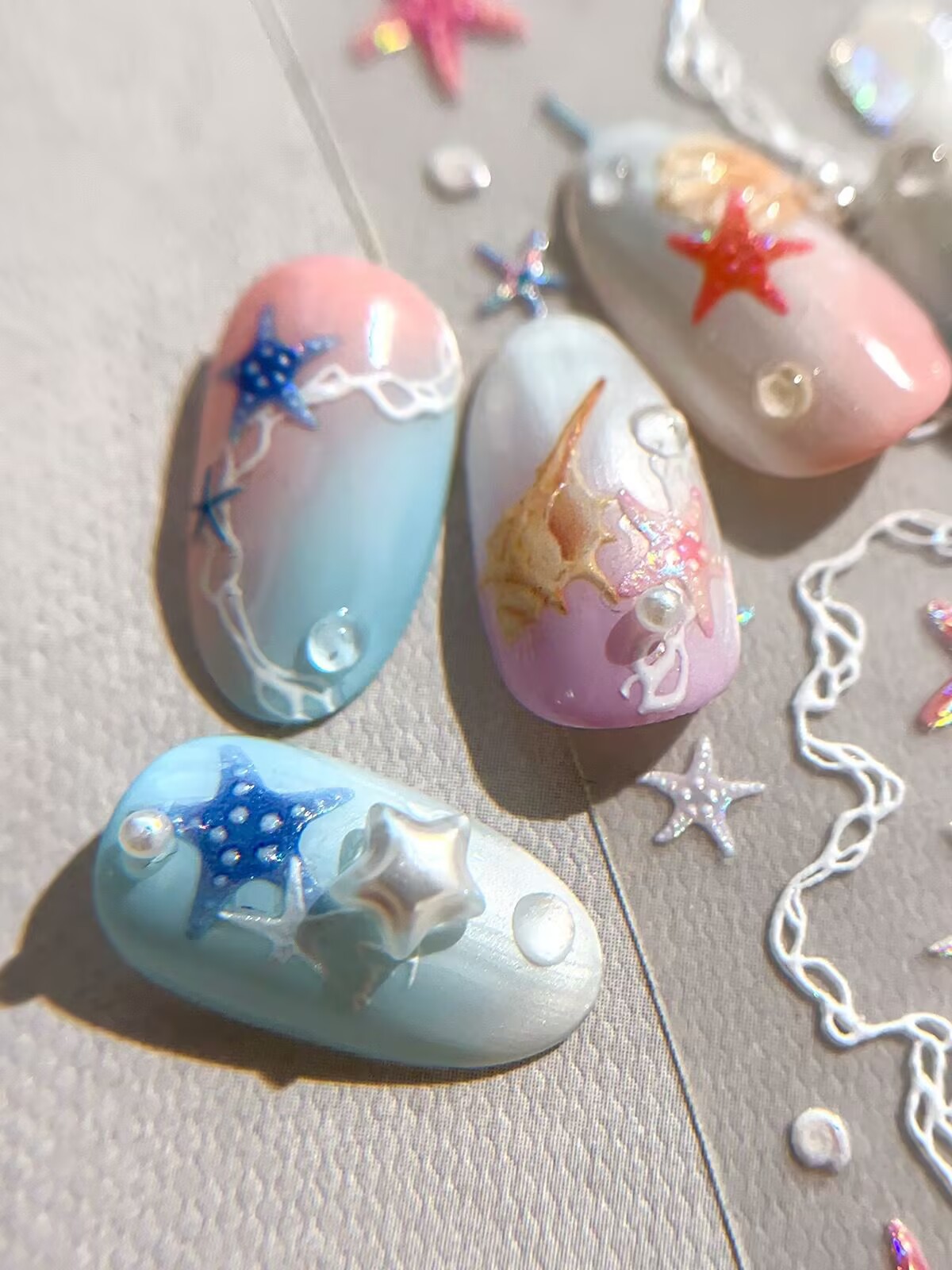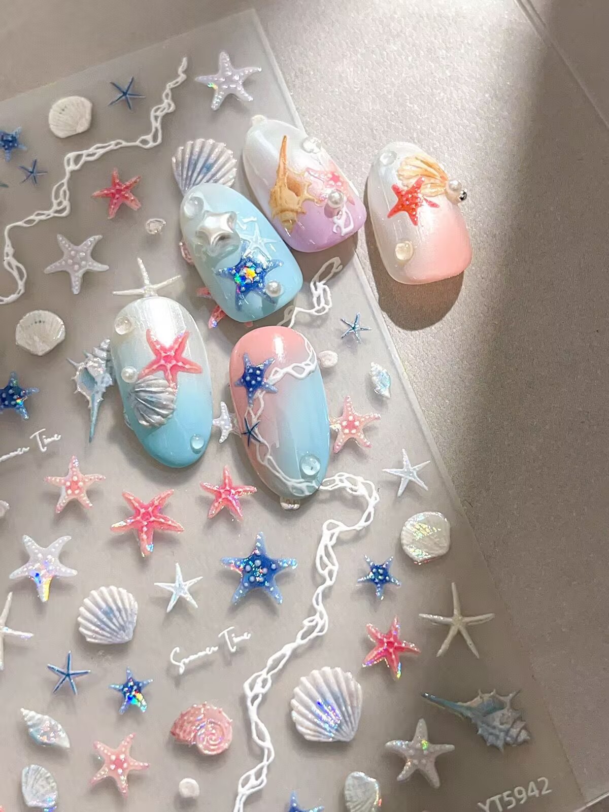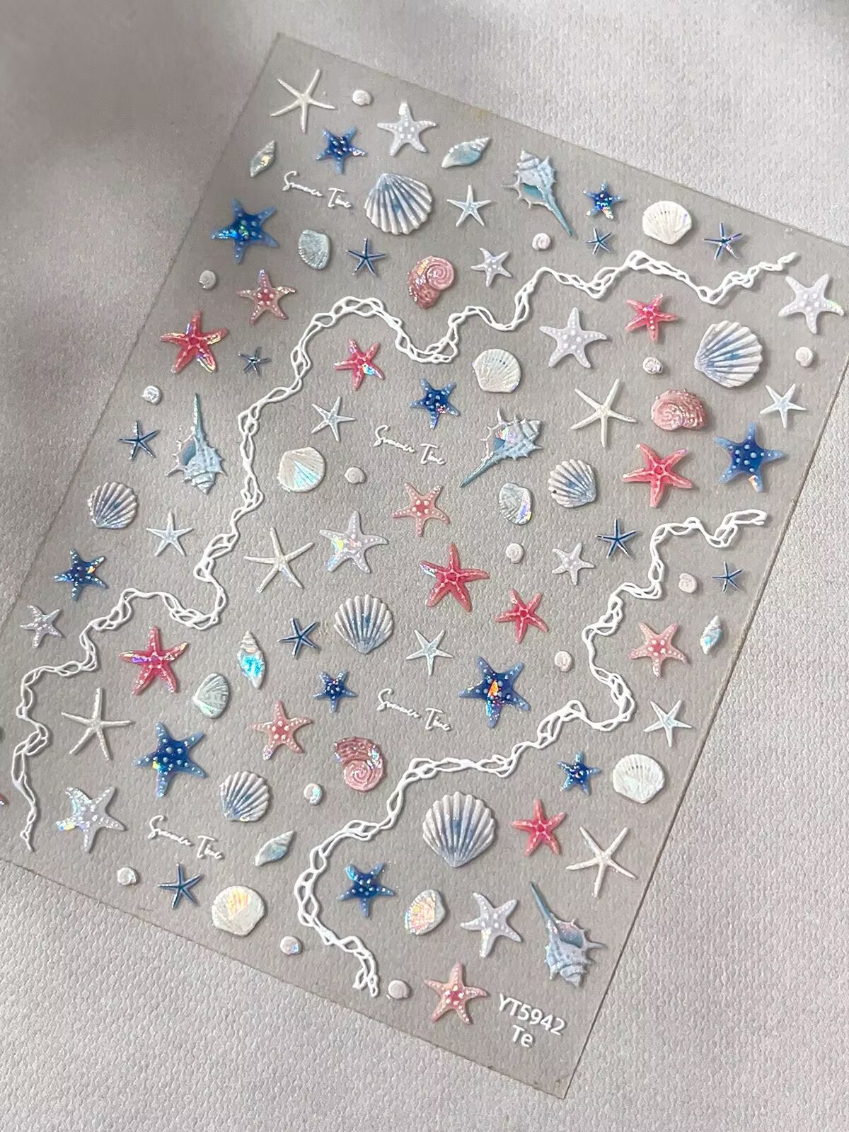 크로스보더 네일 아트 쉘 라이트 레트로 신선하고 다재다능한 ins 오션 쉘 스토리 불가사리 조가비 네일 스티커