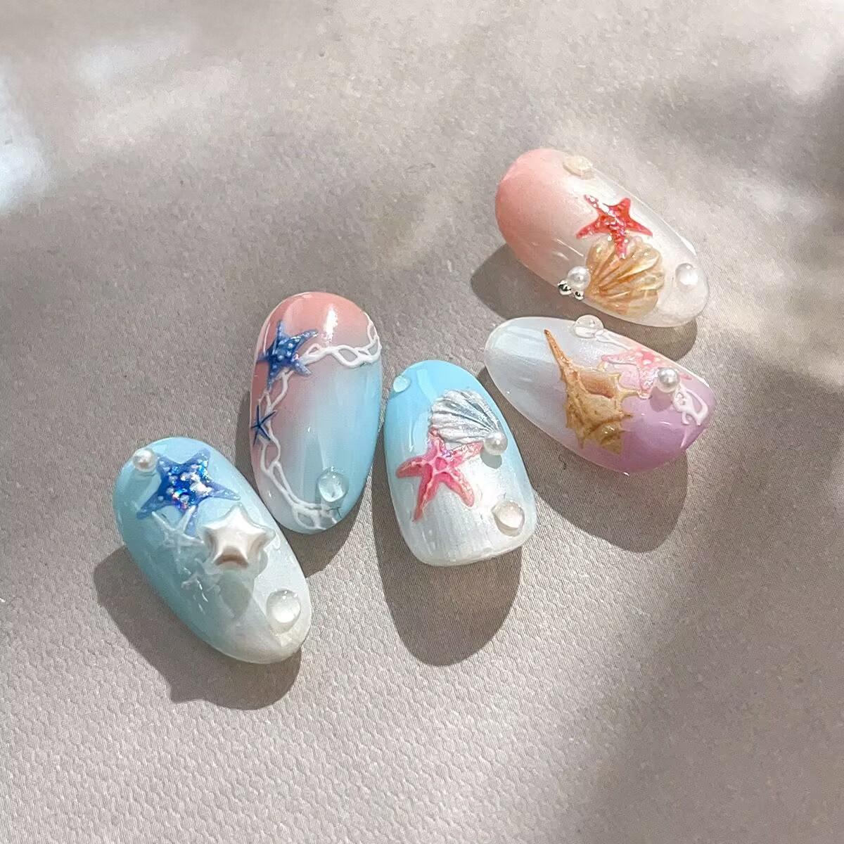 크로스보더 네일 아트 쉘 라이트 레트로 신선하고 다재다능한 ins 오션 쉘 스토리 불가사리 조가비 네일 스티커스토어 가기