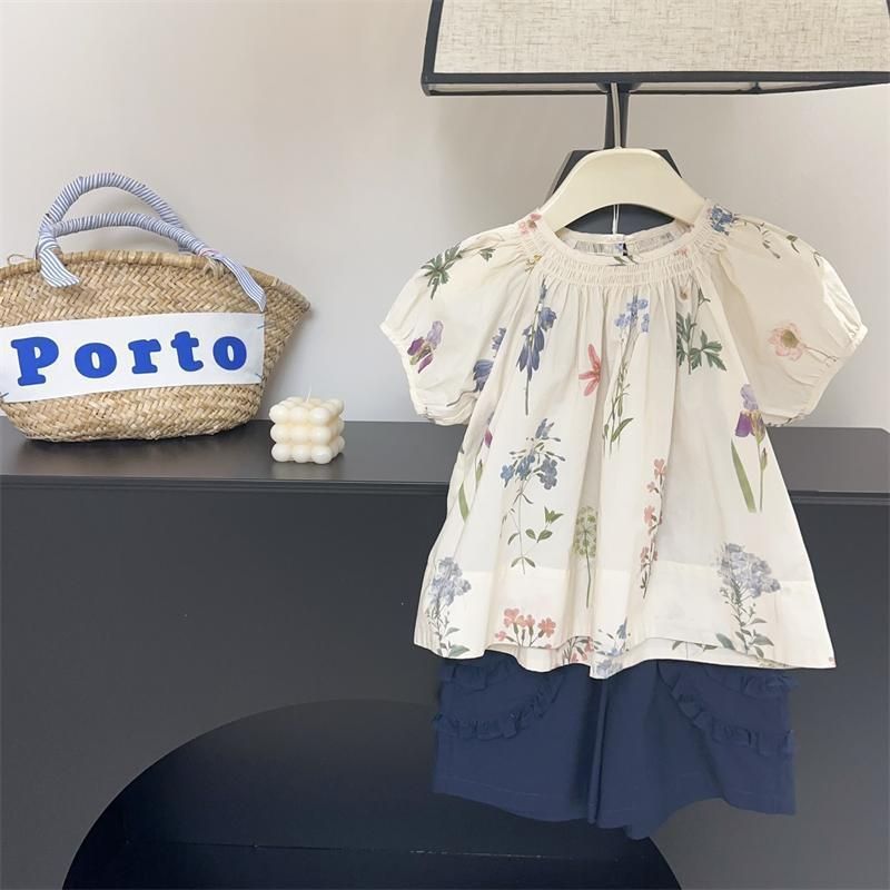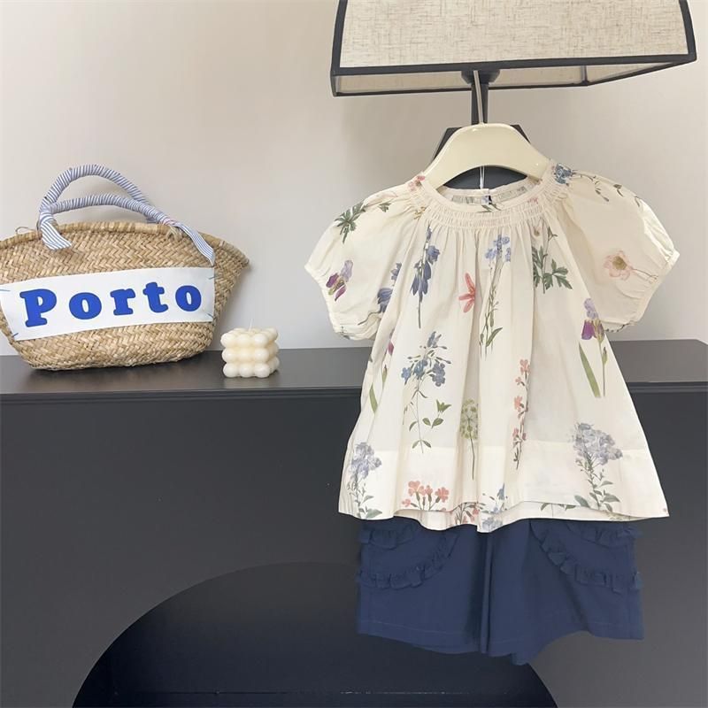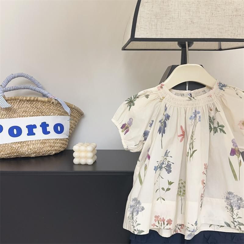 여자 여름 꽃무늬 쉬폰 셔츠 2025 새로운 큰 어린이 반팔 한국 스타일 원 숄더 풀오버 티셔츠 한국 스타일 탑스토어 가기