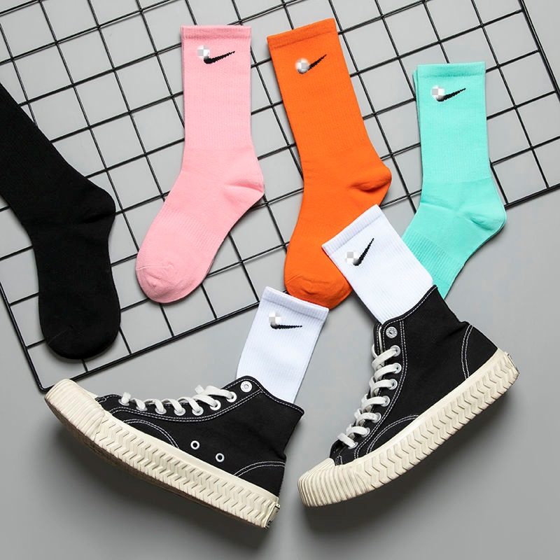 남녀공용 크로스보더 대외 무역 양말, 인 트렌드 한국식 통기성 스포츠 양말, 캔디 컬러 하이탑 체크 양말스토어 가기