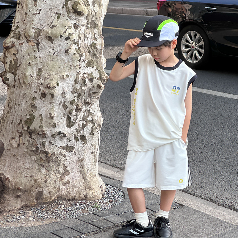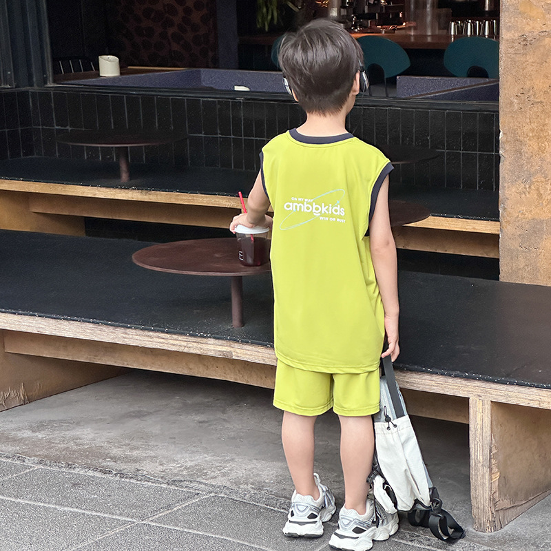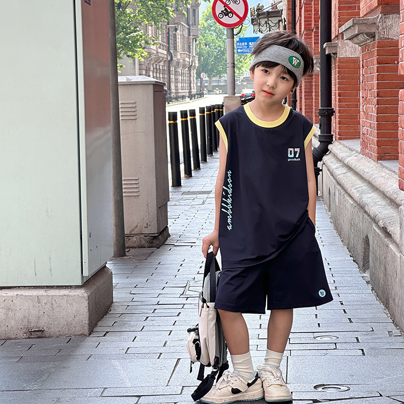 Aimo Beibei 소년 2025 여름 대비 색상 멋진 속건성 농구 유니폼 중형 및 대형 어린이 통기성 스포츠 조끼 정장 유행