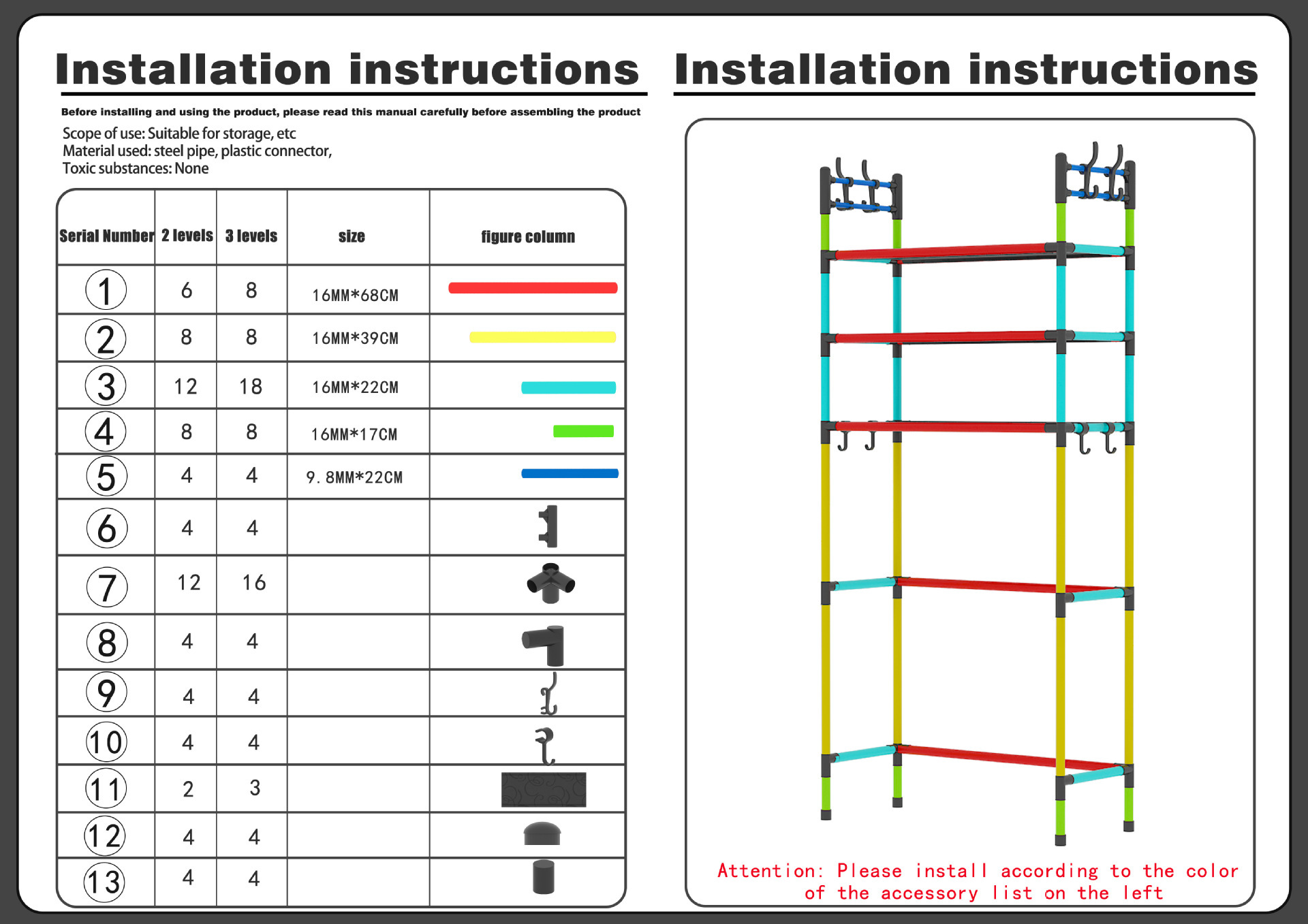 商品材质:PP塑料+16MM烤漆管+PP防水层板