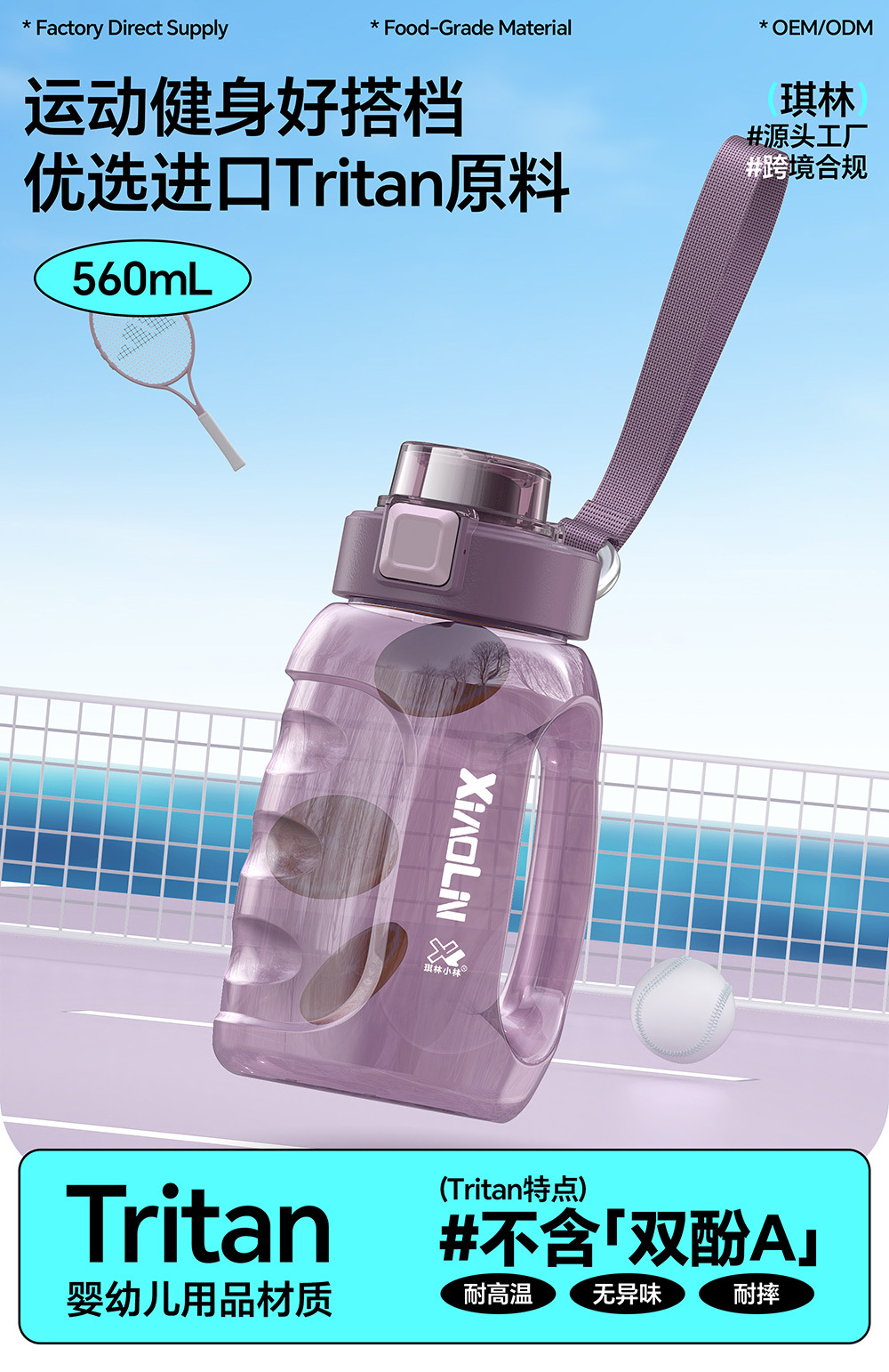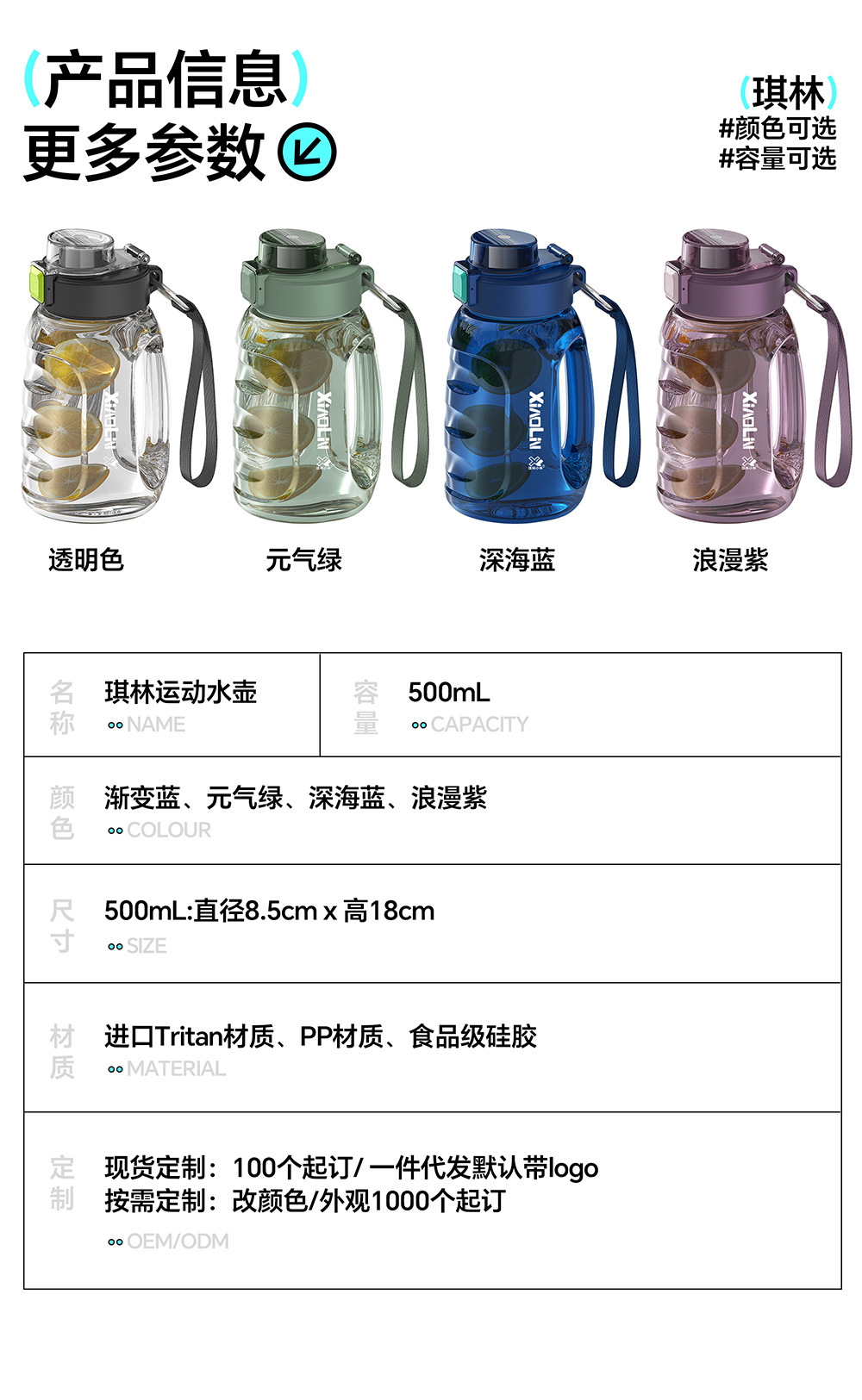 500ml 대용량 휴대용 피트니스 남여 야외 고온 방지 플라스틱 물병 피트니스 필수 주전자