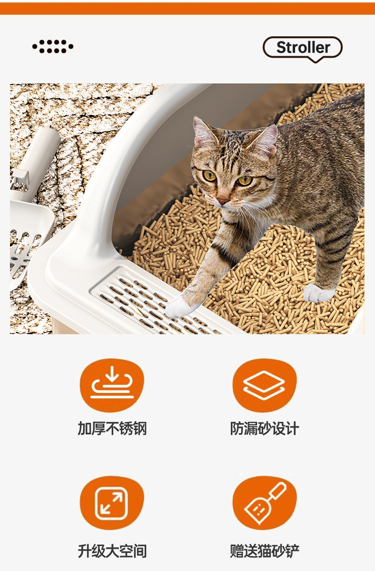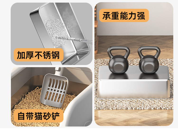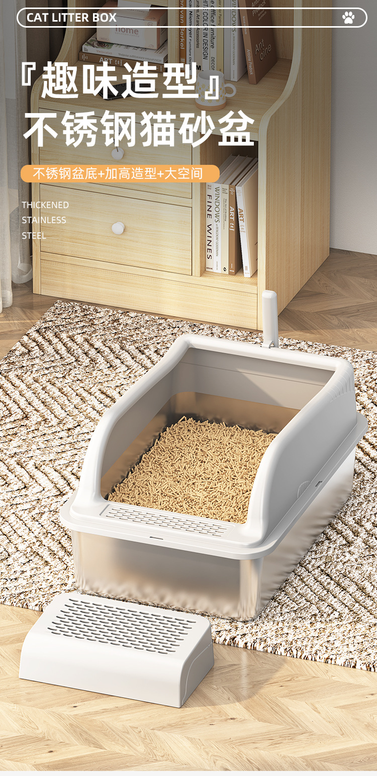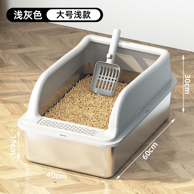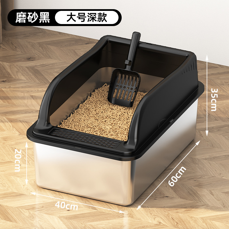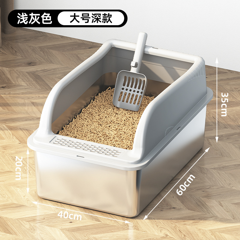 국경 간 스테인레스 스틸 고양이 쓰레기 상자 안티 스플래시 커버 초대형 상단 입구 고양이 화장실 반 밀폐형 모래 방지 고양이 쓰레기 상자스토어 가기