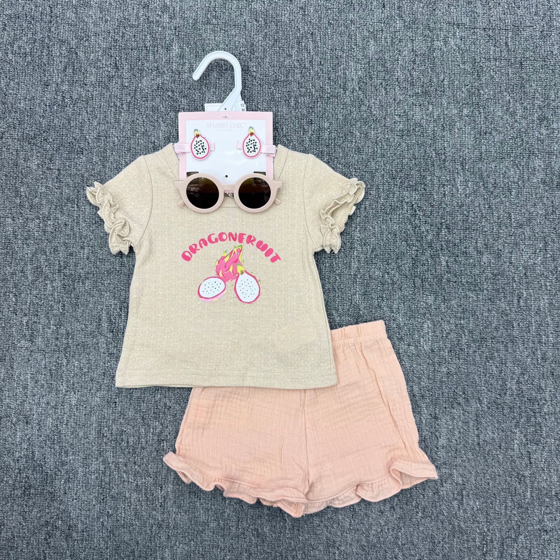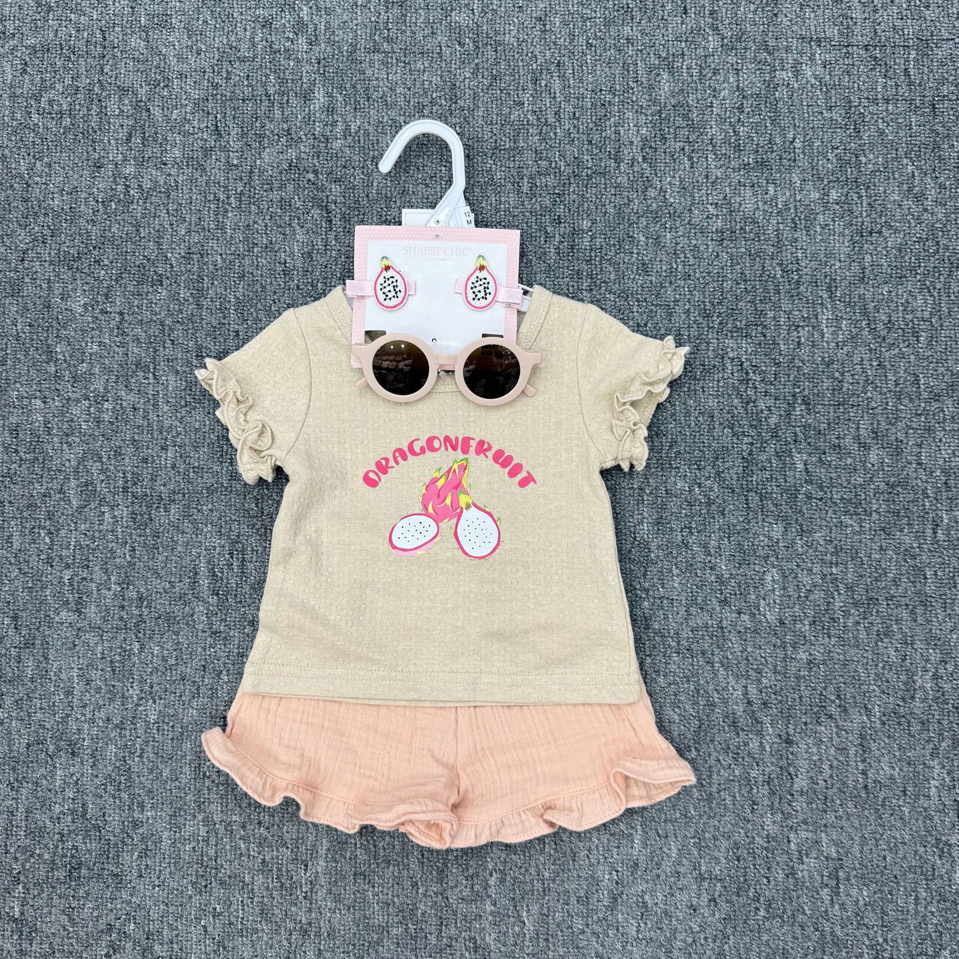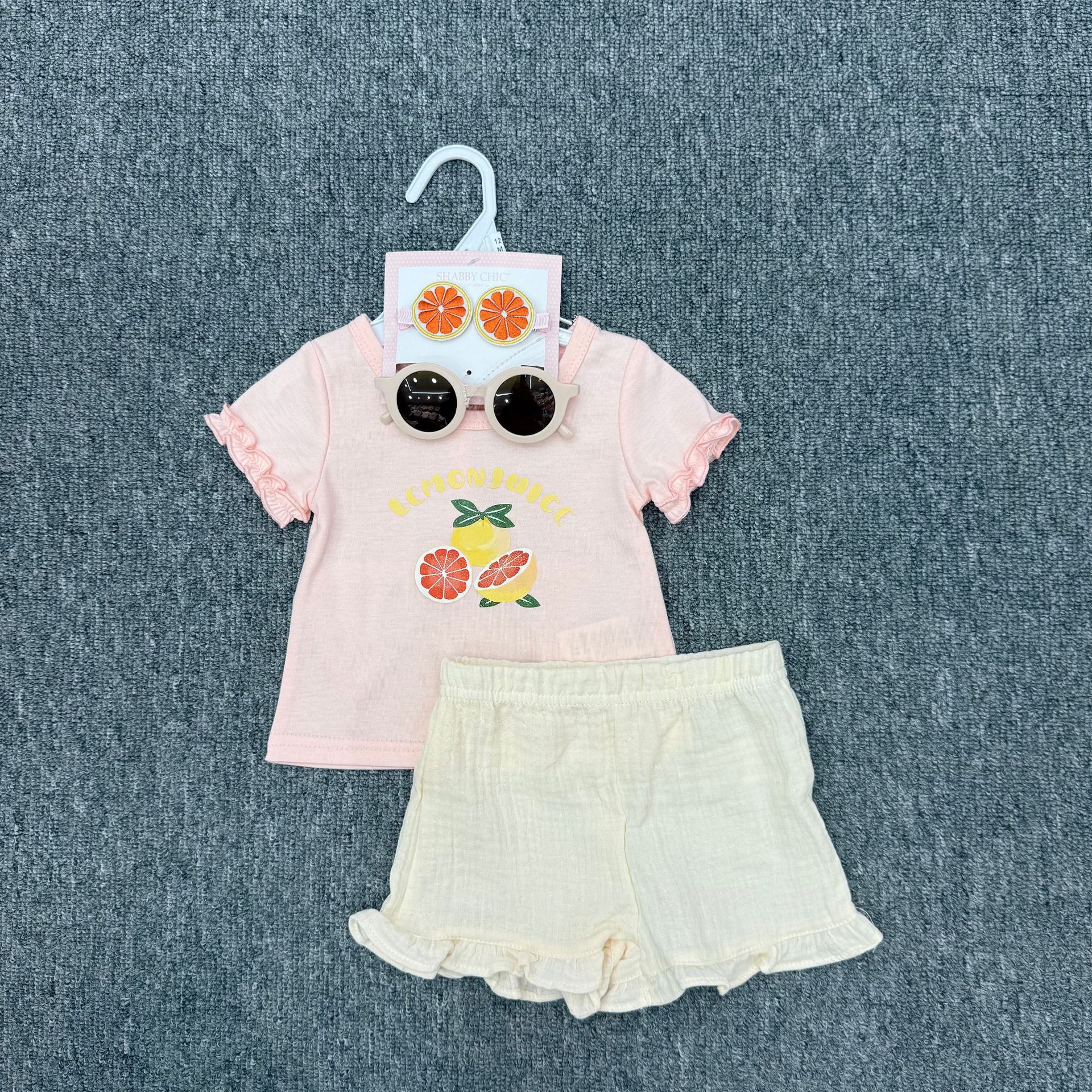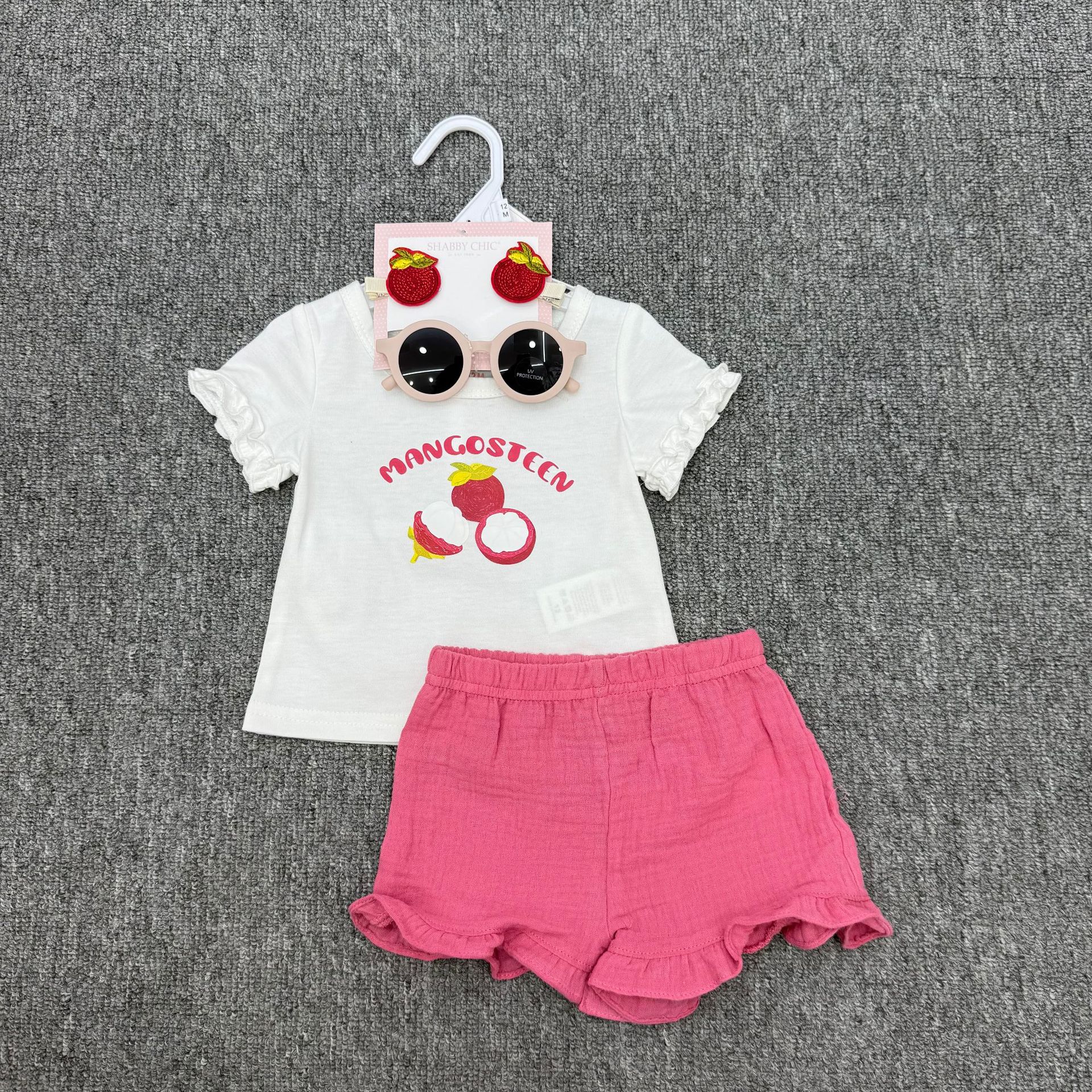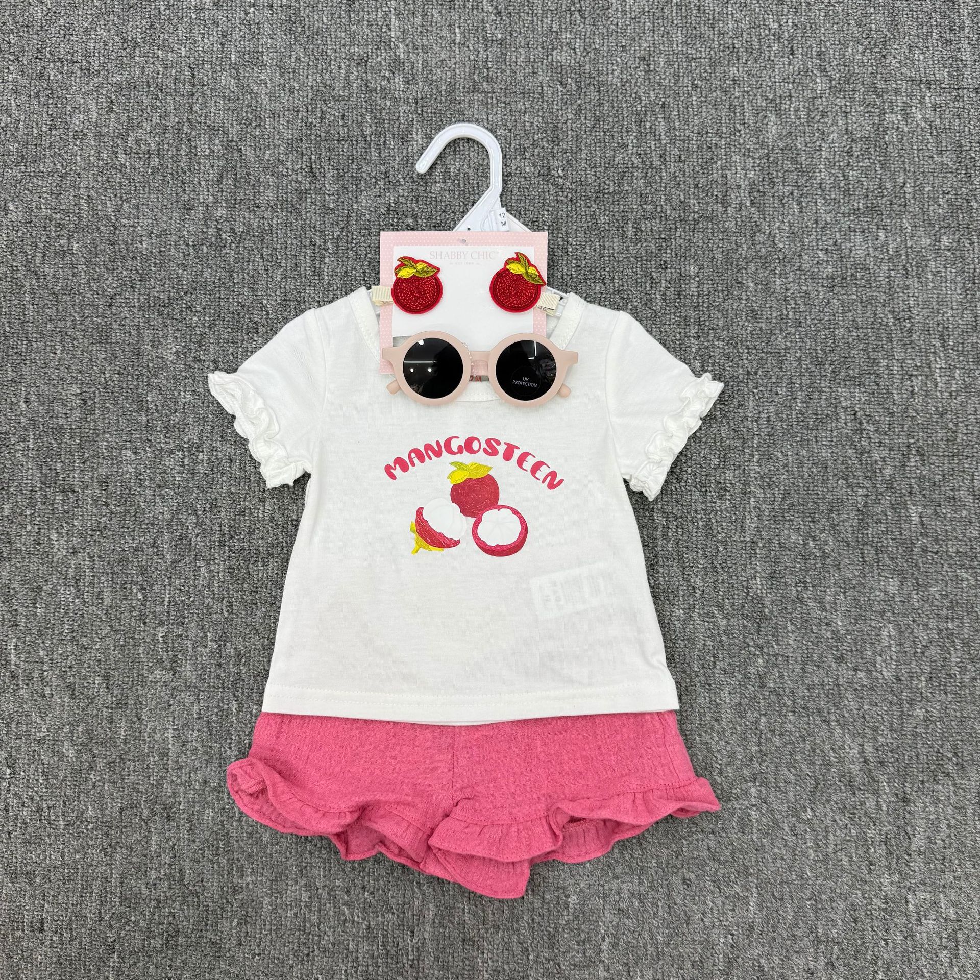 4pcs sets for girls, T-shirts, shorts, sunglasses and hair bands.