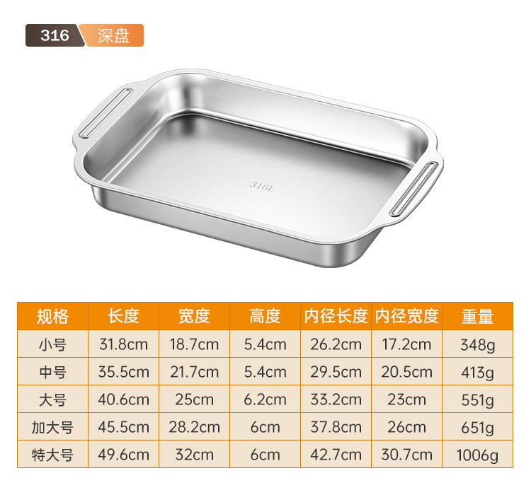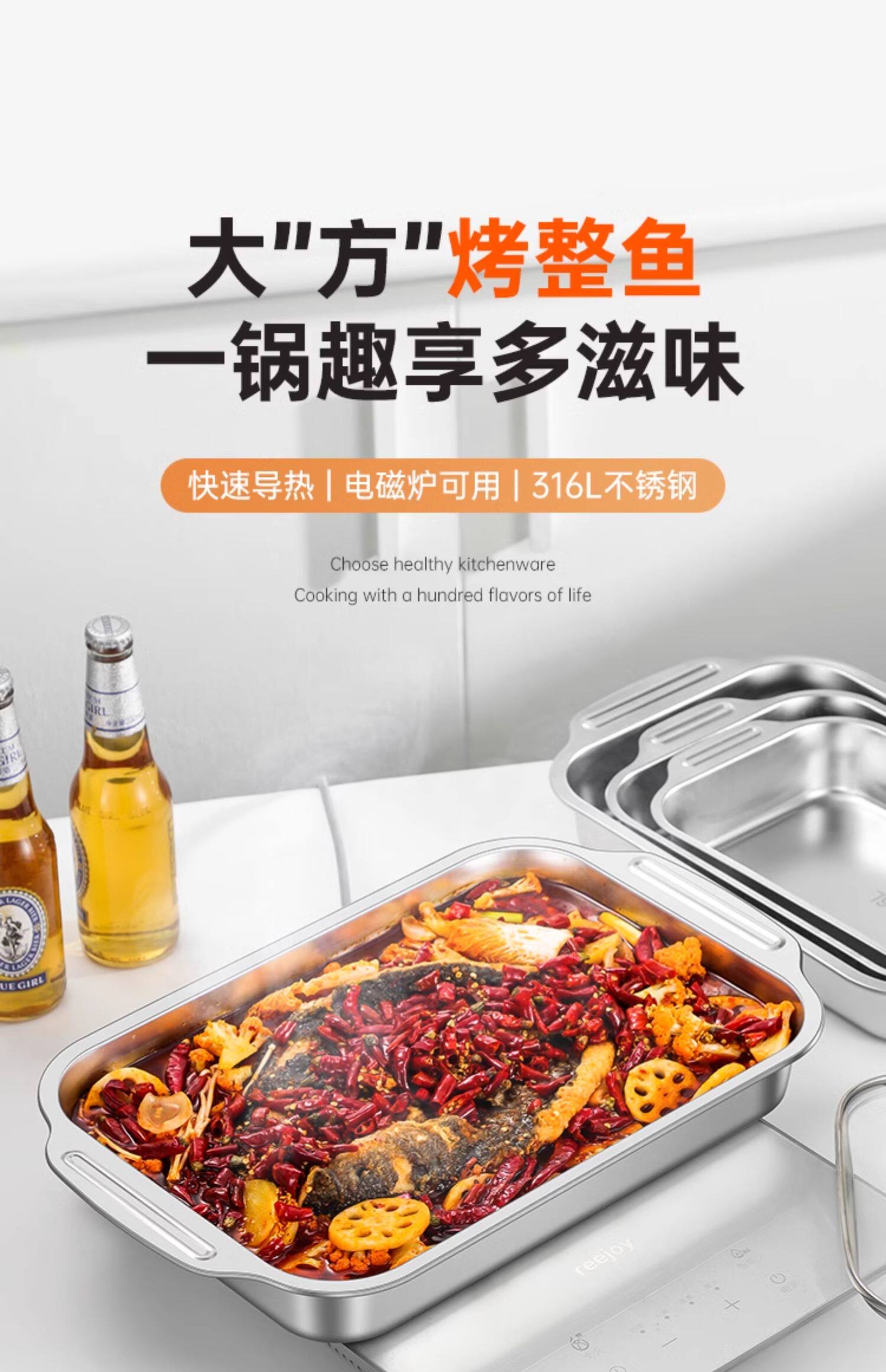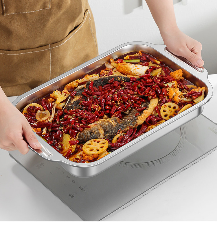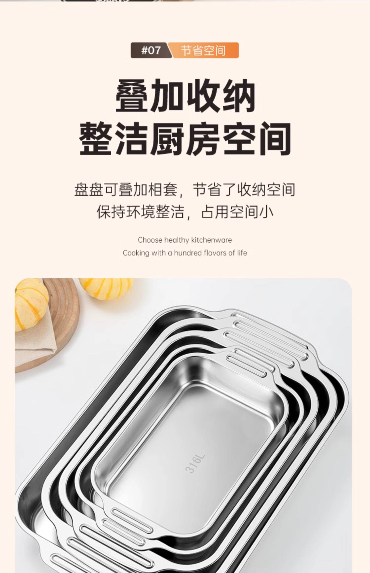 스테인레스 스틸 생선 구이 접시 316 식품 등급 두꺼운 직사각형 가정용 전자레인지 생선 구이 특수 사각형 접시 트레이